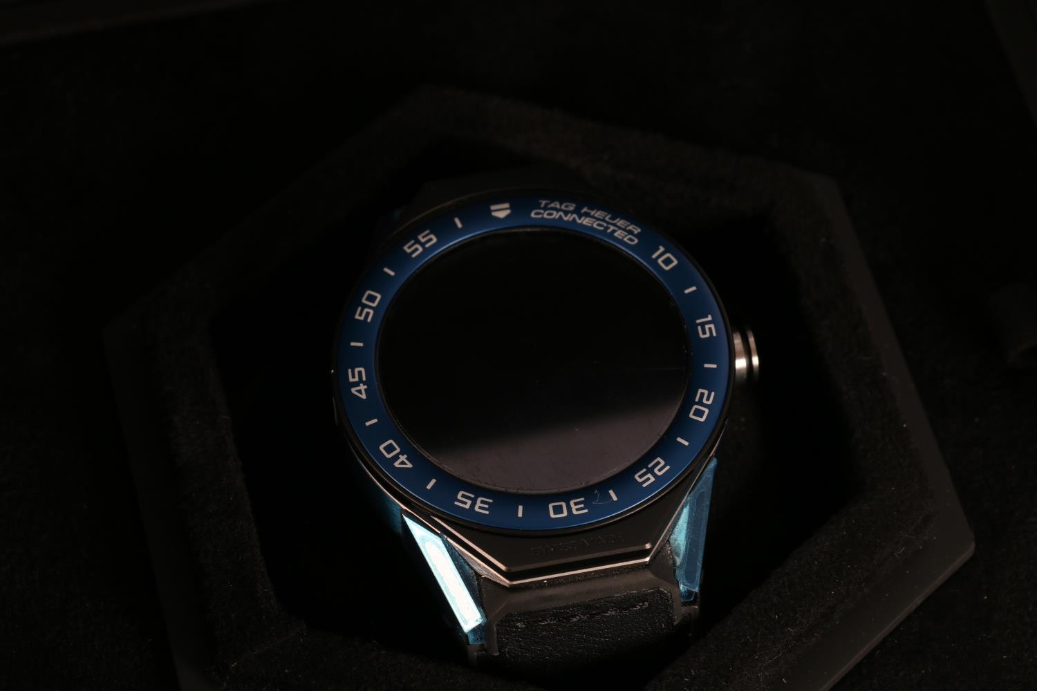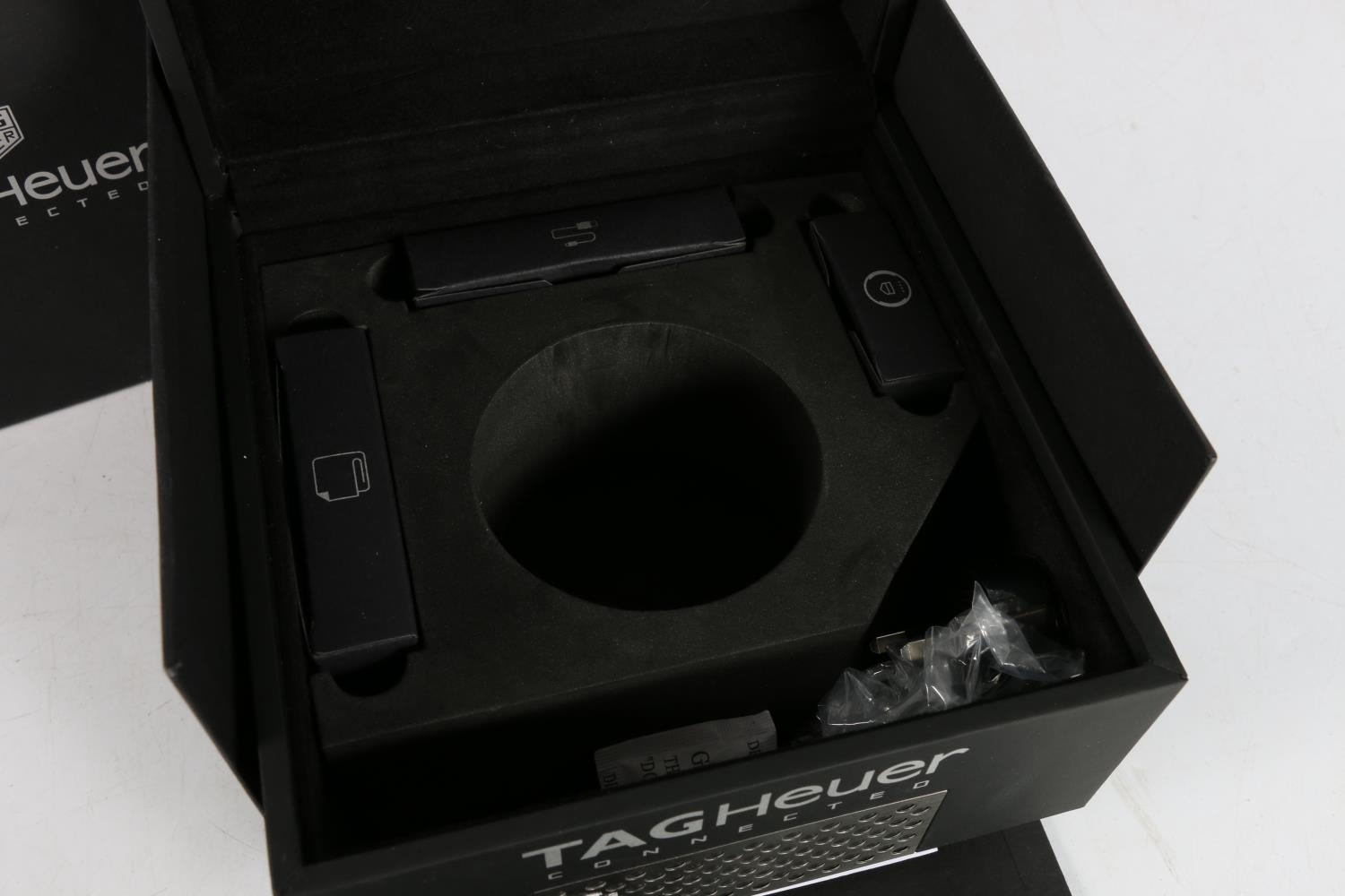 Tag Heuer Connected gentlemans smartwatch wristwatch SBF8A8019 in original box. Contents include charging puck, micro usb and cleaning cloth. Protective film still present on watch face, sides and reverse.