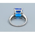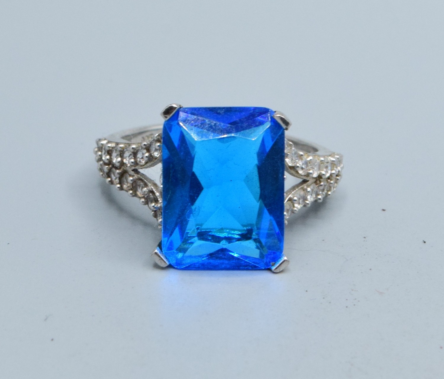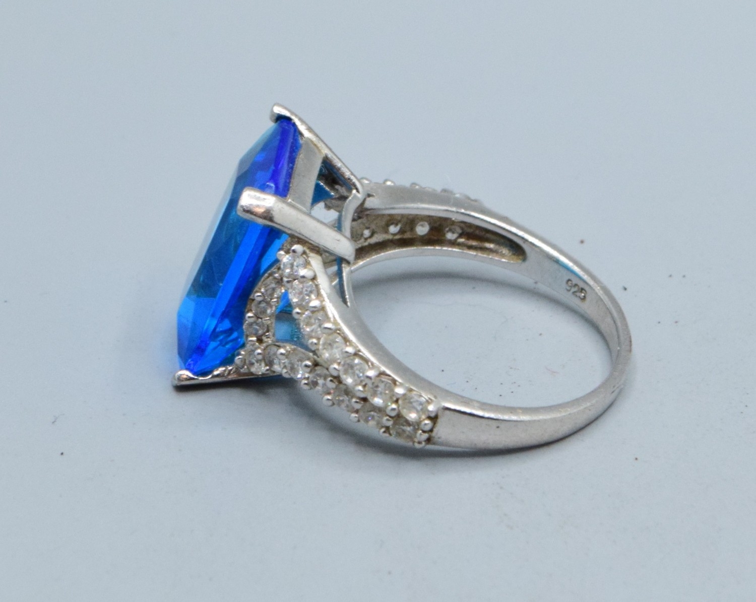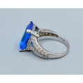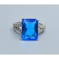 925 silver ladies oblong shape Blue Topaz central stone with clear gem stone side decoration statement ring size T