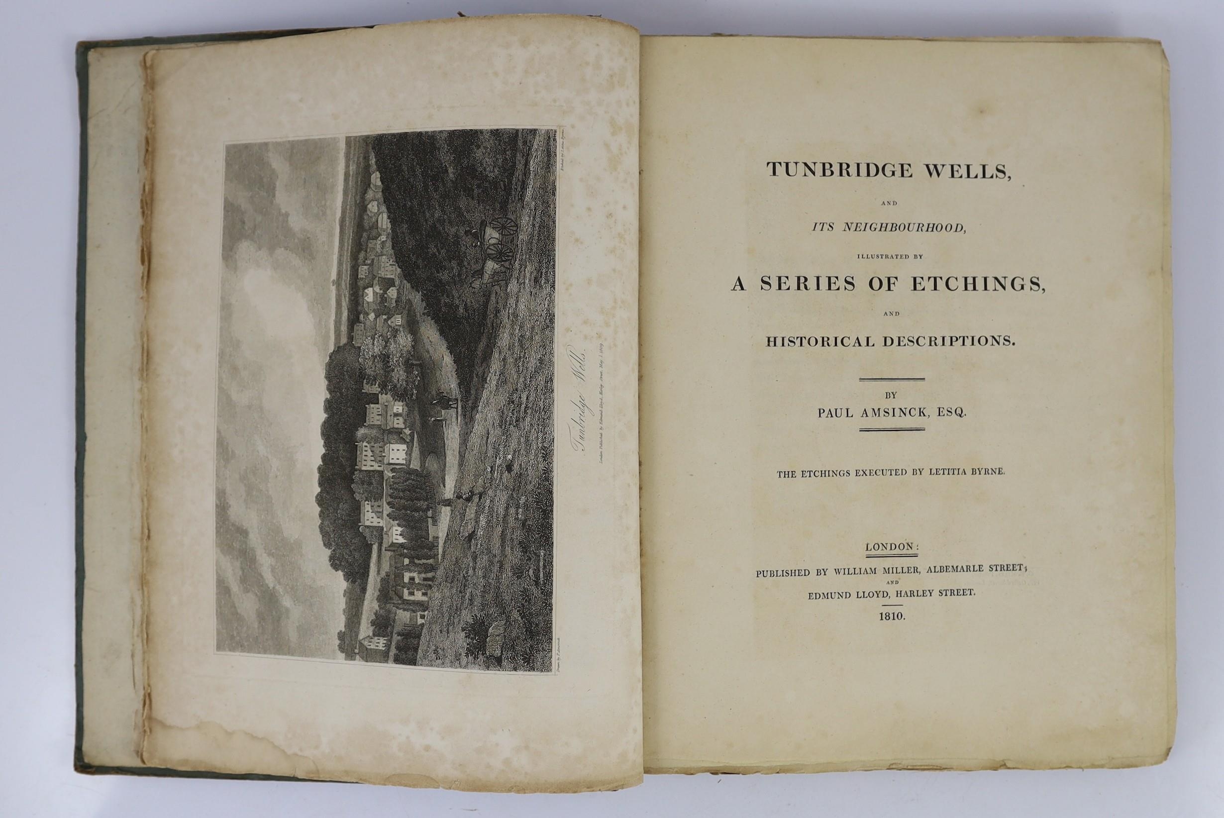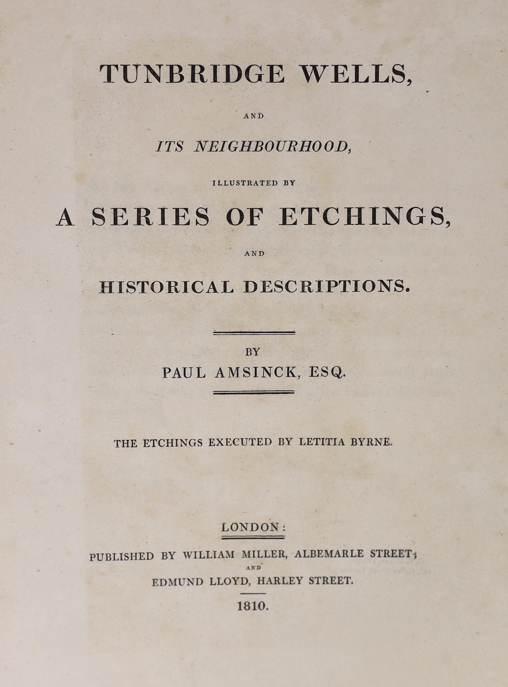 ° ° KENT, TUNBRIDGE WELLS: Amsinck, Paul - Tunbridge Wells, and Neighbourhood, illustrated by a series of etchings, and historical descriptions..... 31 plates and 12 text engravings, subscribers list, half title, original paper boards and printed label, later cloth spine, uncut, folio. 1810