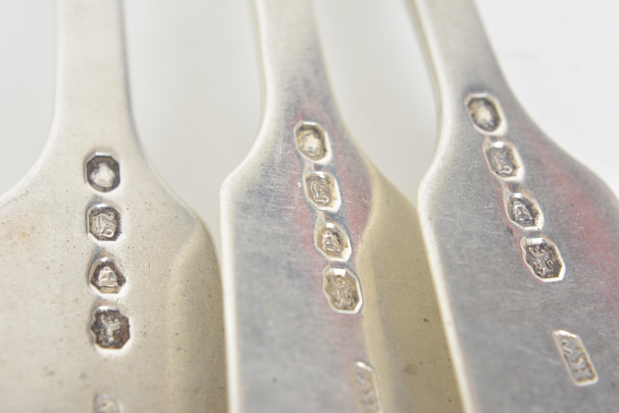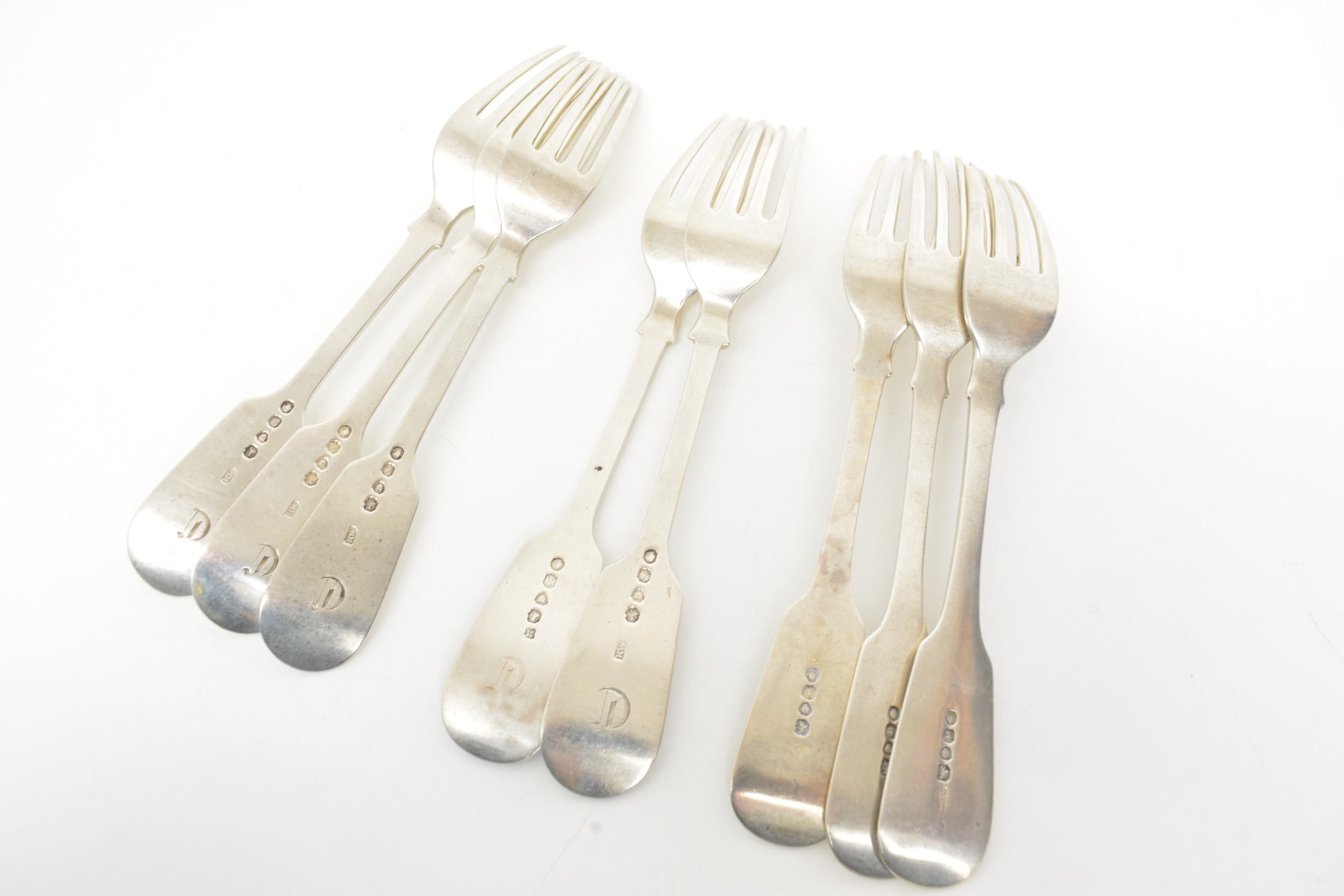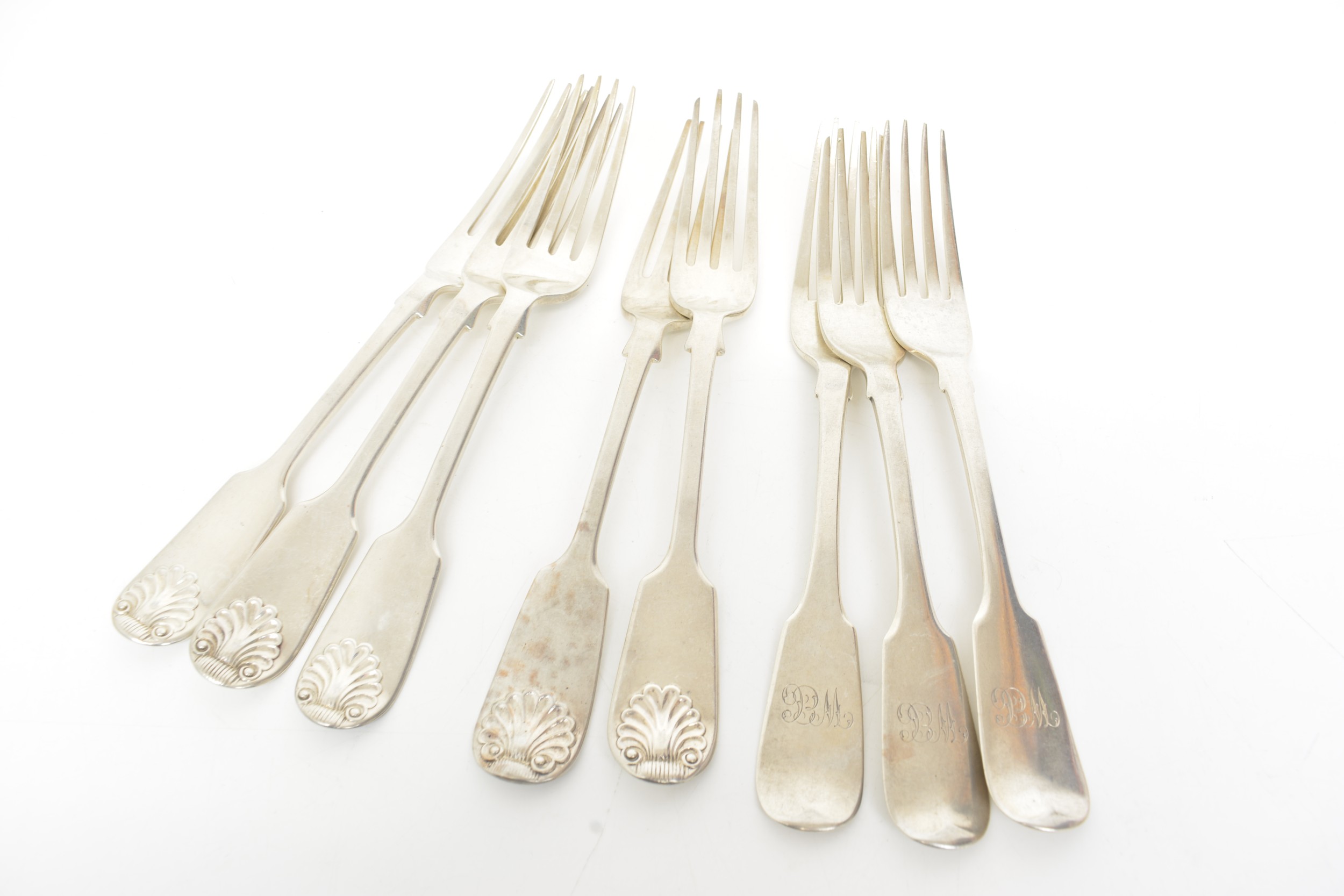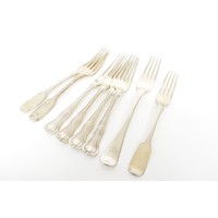 Georgian and Victorian silver forks, (x8) approx weight 553g.