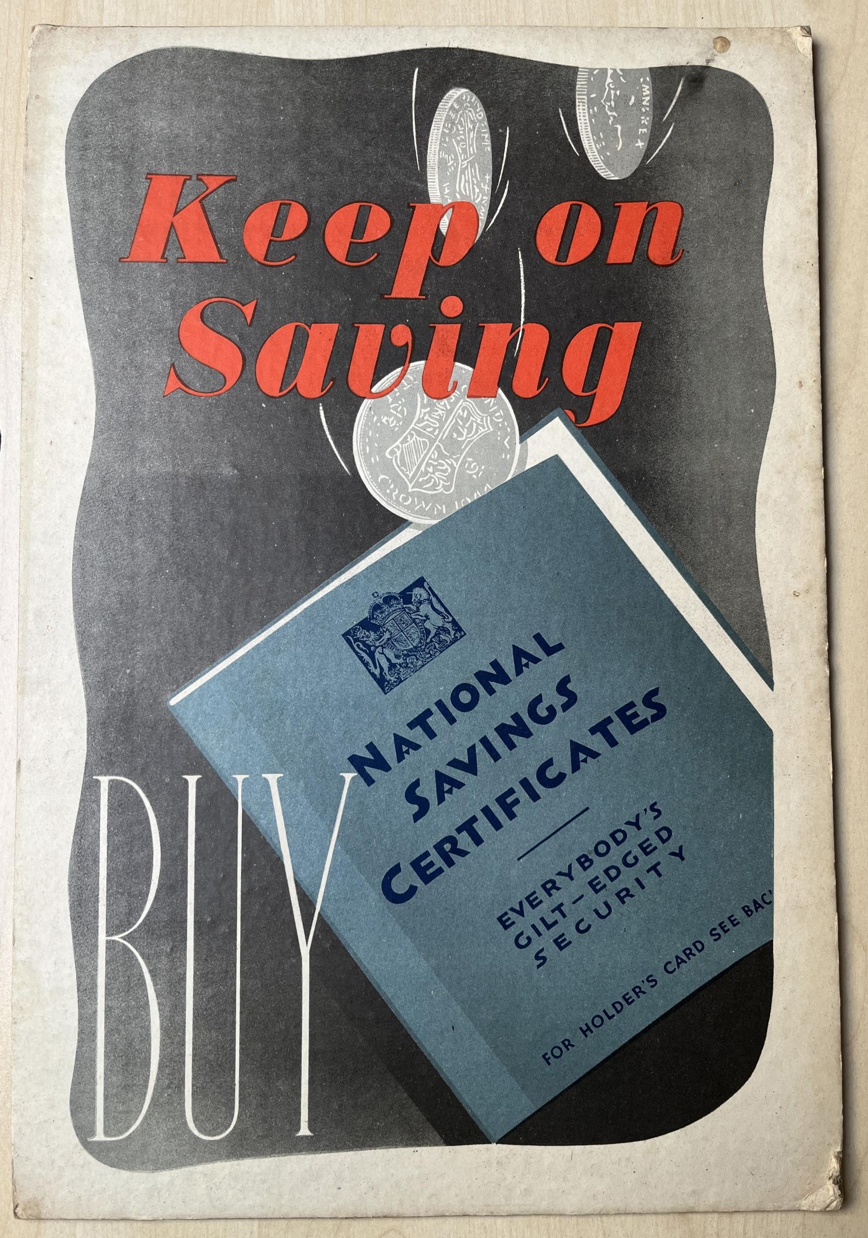 Post Office advertising posters printed in colour on thick board, probably from the 1950s, 6 examples with 2 different ‘Post Office Savings Bank’, ‘National Saving Certificates’,3 ‘Buy Defence Bonds’ (1 with 2 examples)