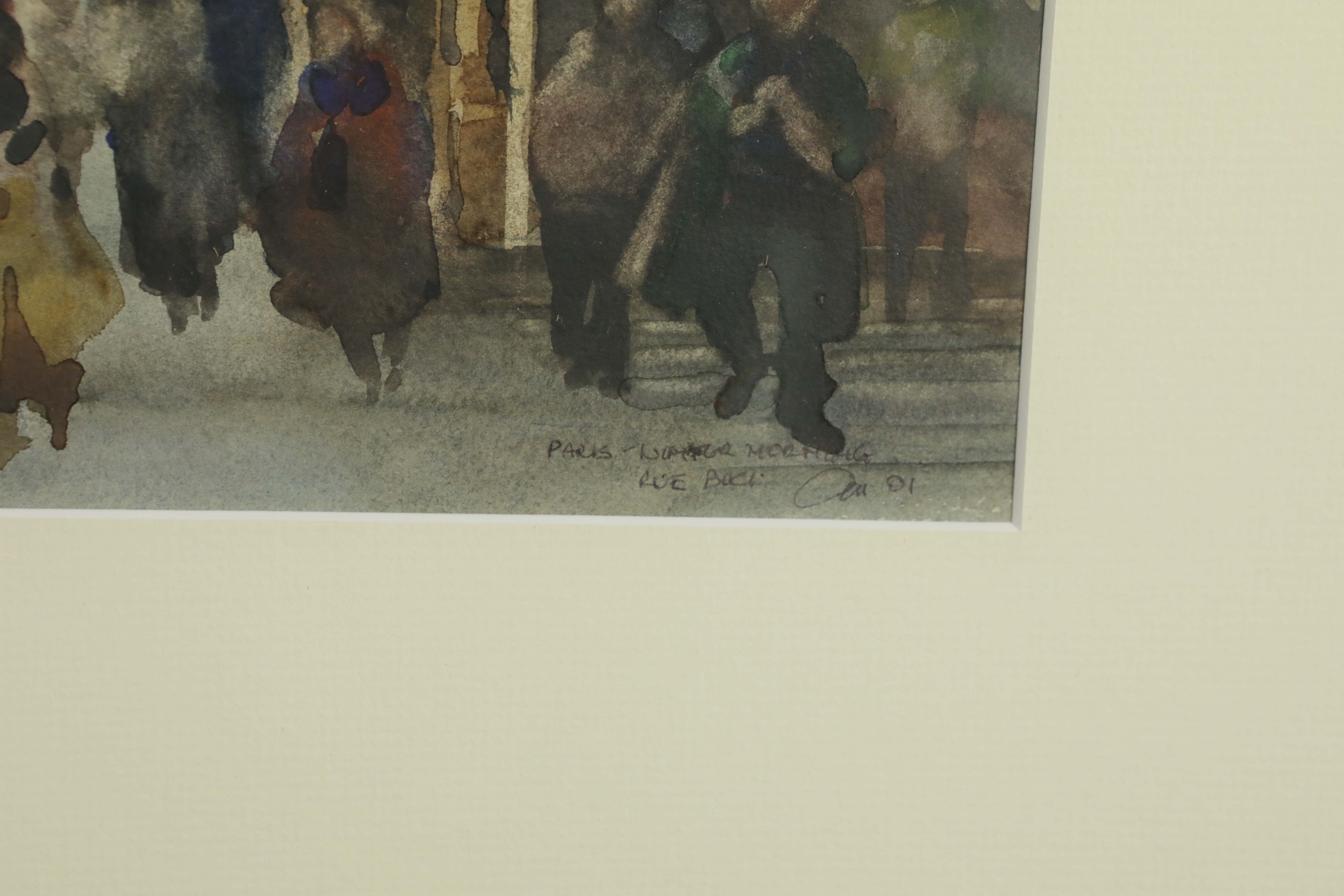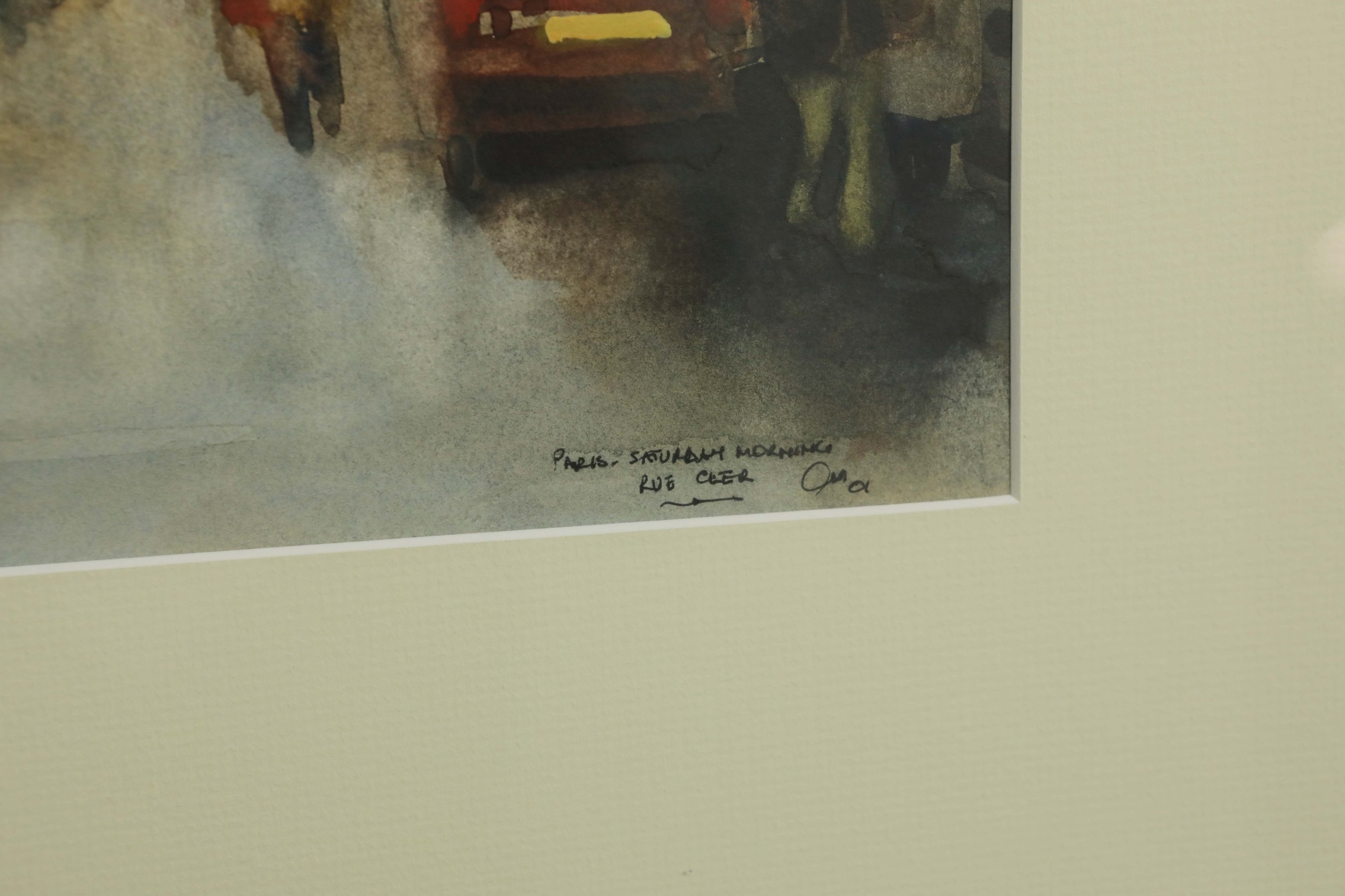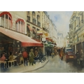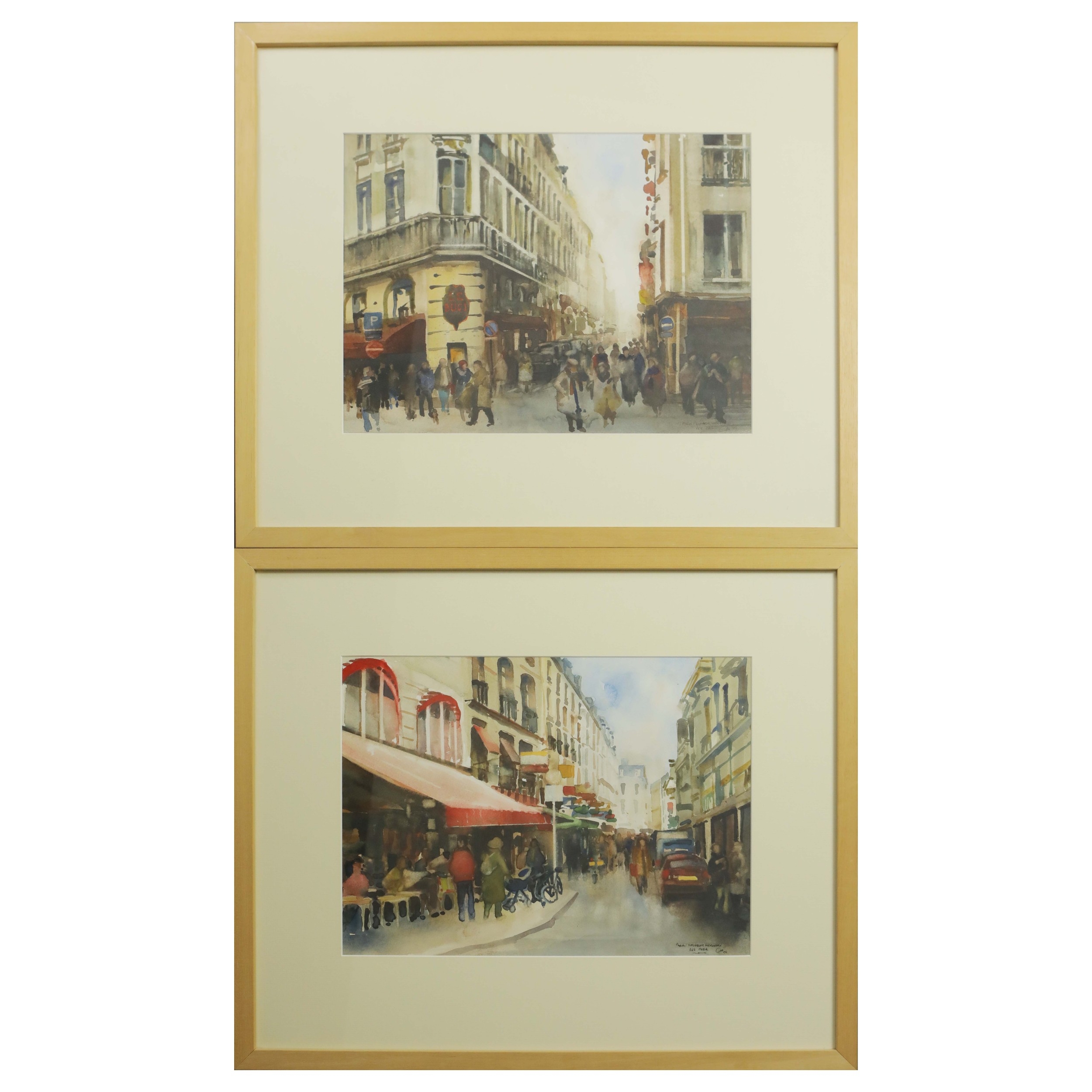 ALAN HEPBURN WATERCOLOURS, A PAIR. Parisian street scenes, bears Mall Galleries label to verso , each image 33cm t x 45 cm w, framed (2).