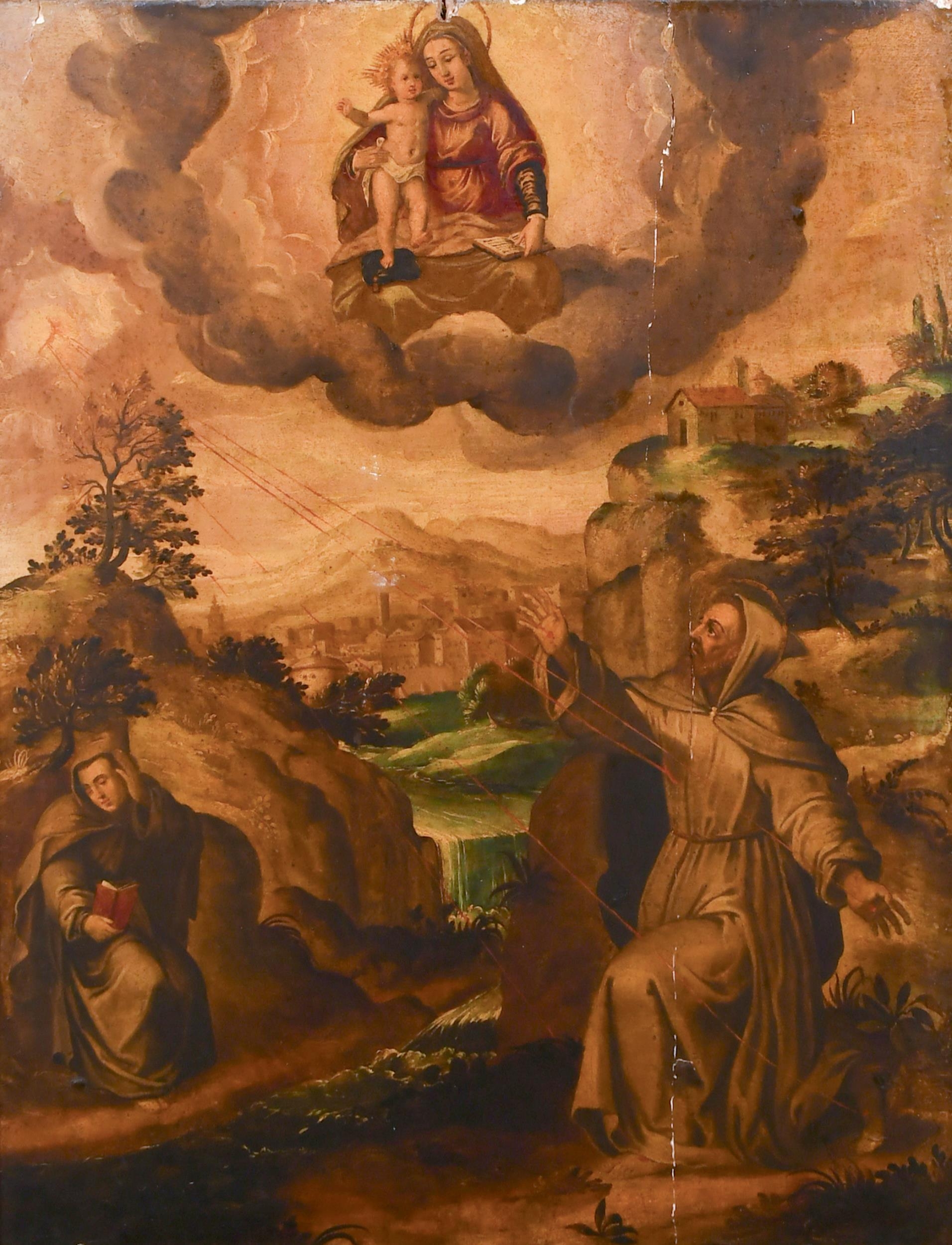 16th Century Cretan School. St Francis Receiving The Stigmata, Oil on panel, 31.25" x 25" (79.3 x 63.5cm)