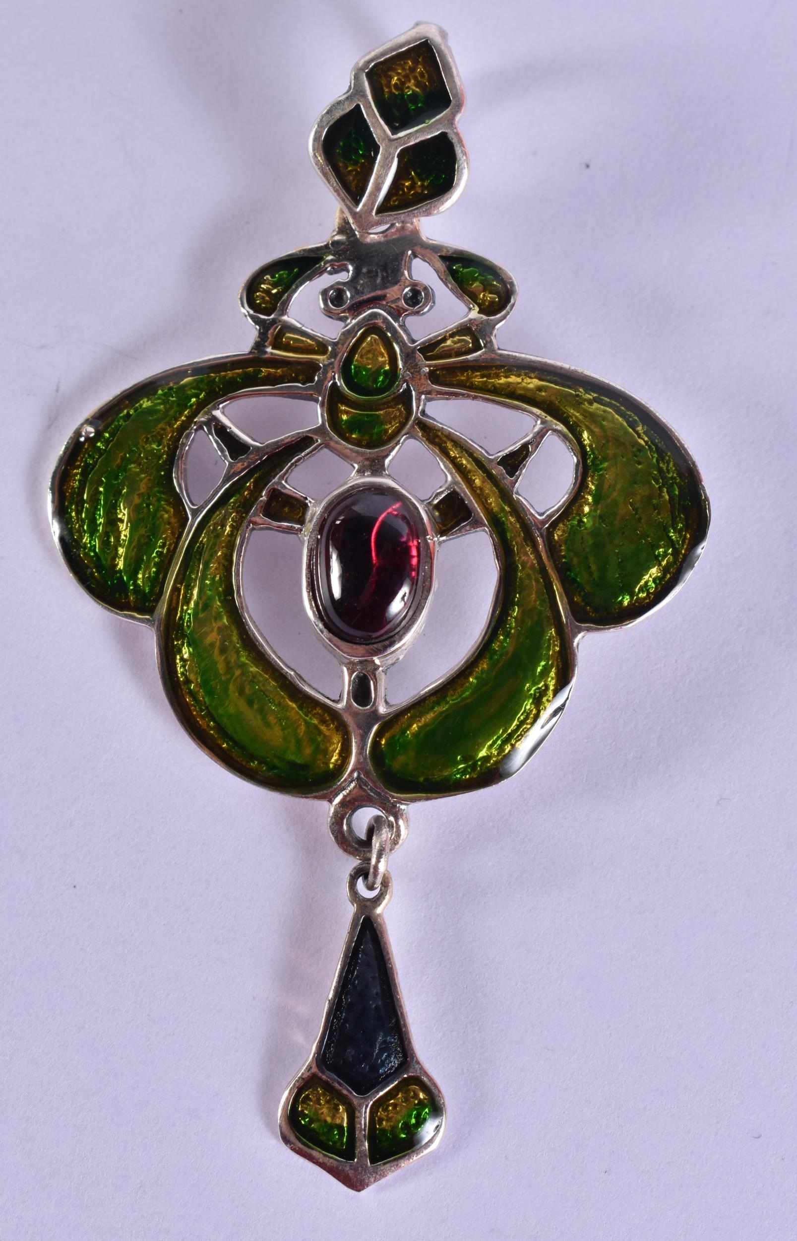 A Silver and Enamel Art Nouveau Style Pendant. Stamped 925, 6.1cm x 3.4cm, weight 8.4g