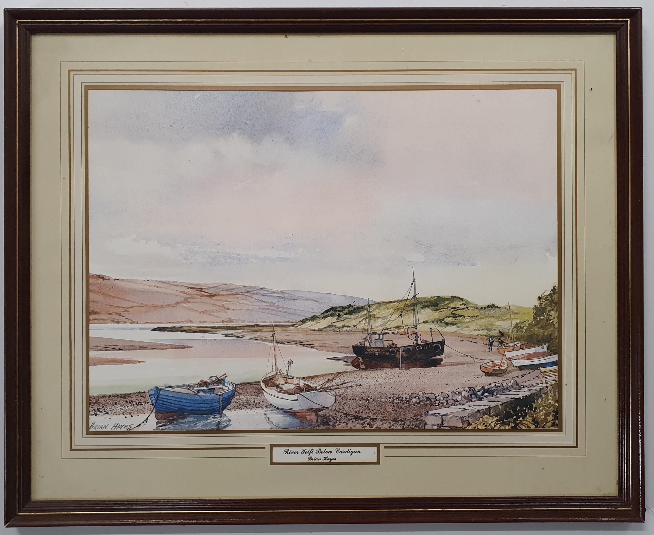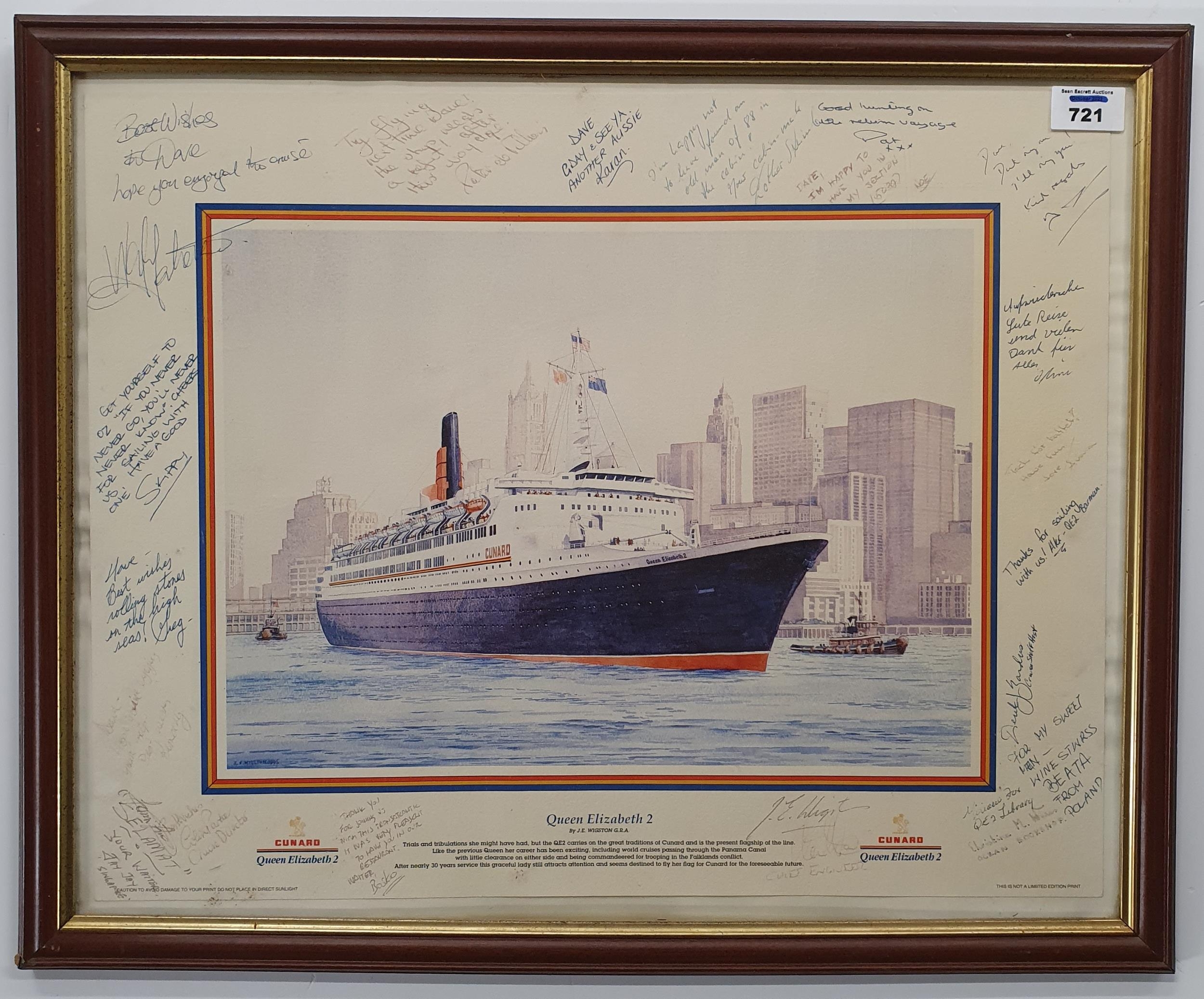 Two framed Prints , Cunard Queen Elizabeth two and River Feifi below cardigan by Brian Hayes .