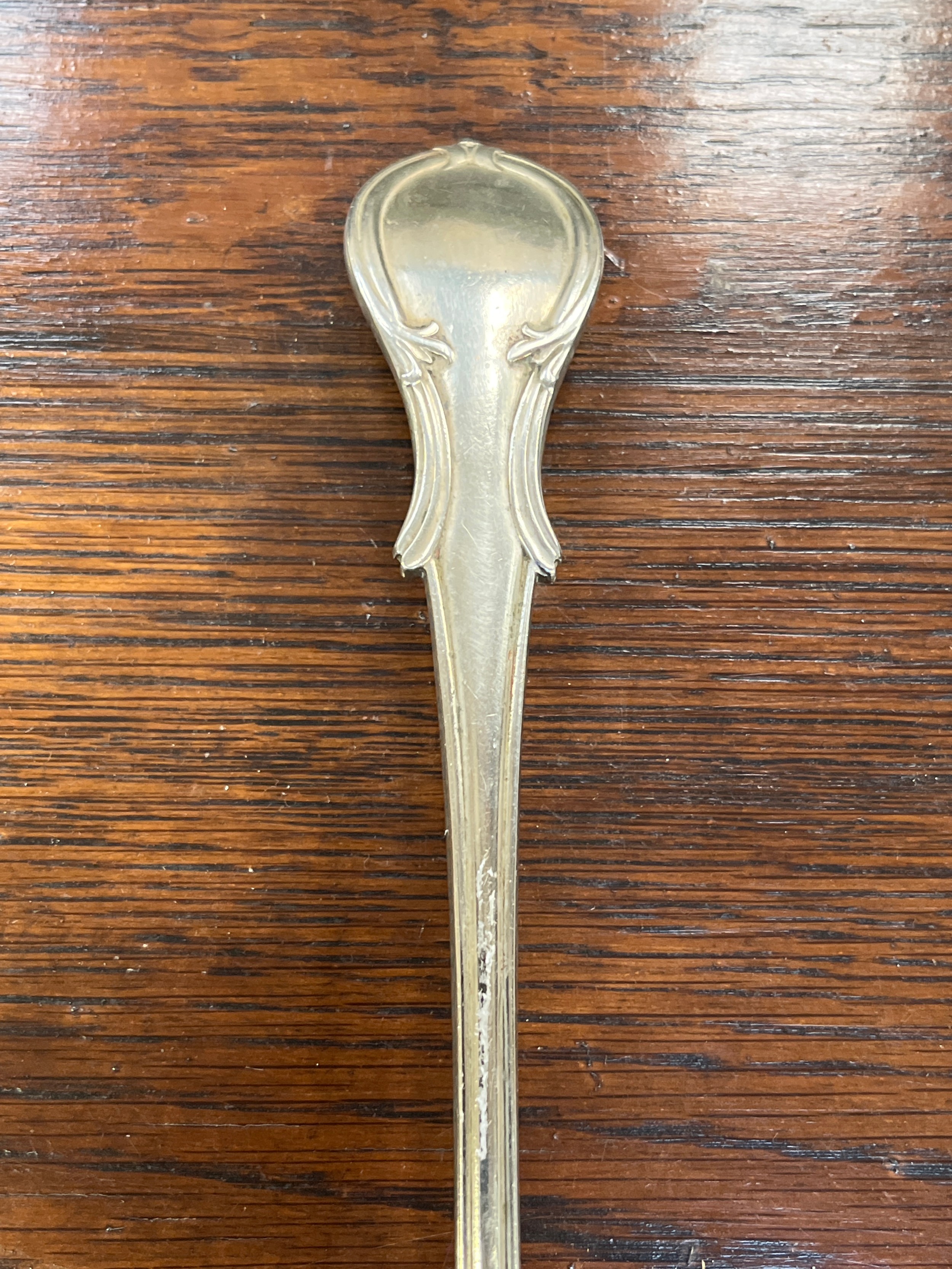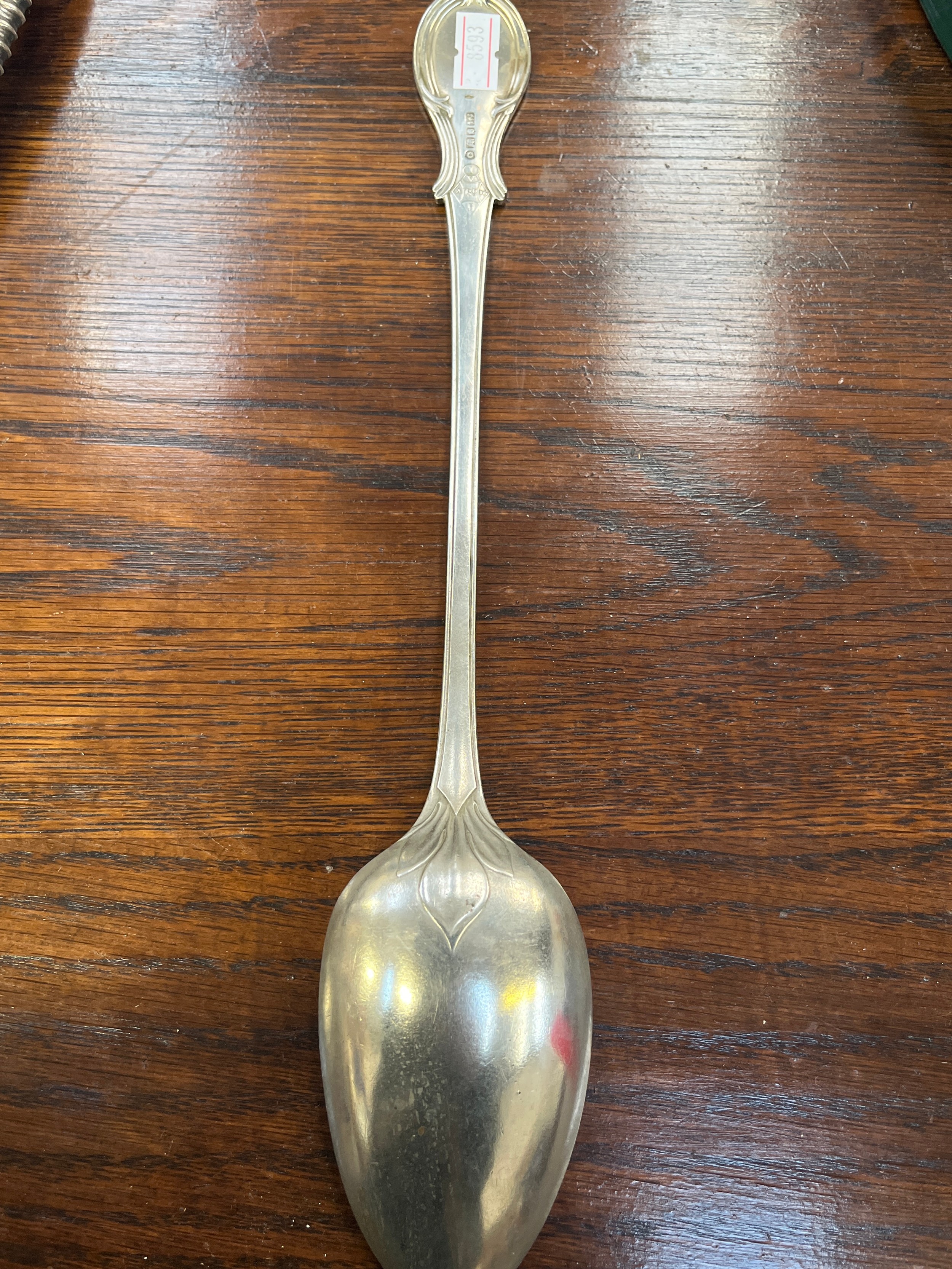 A large Victorian silver plated basting spoon by Johnathan Mappin (Pre Mappin Webb). Kite registration mark on the back of the stem dates to 16th December 1850. Approx 33cm long.