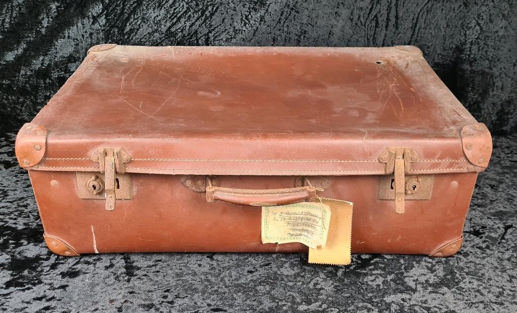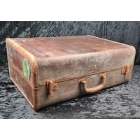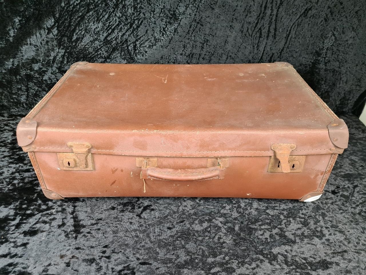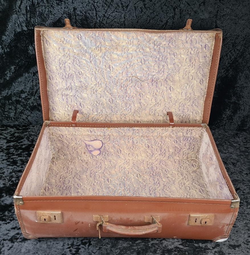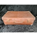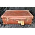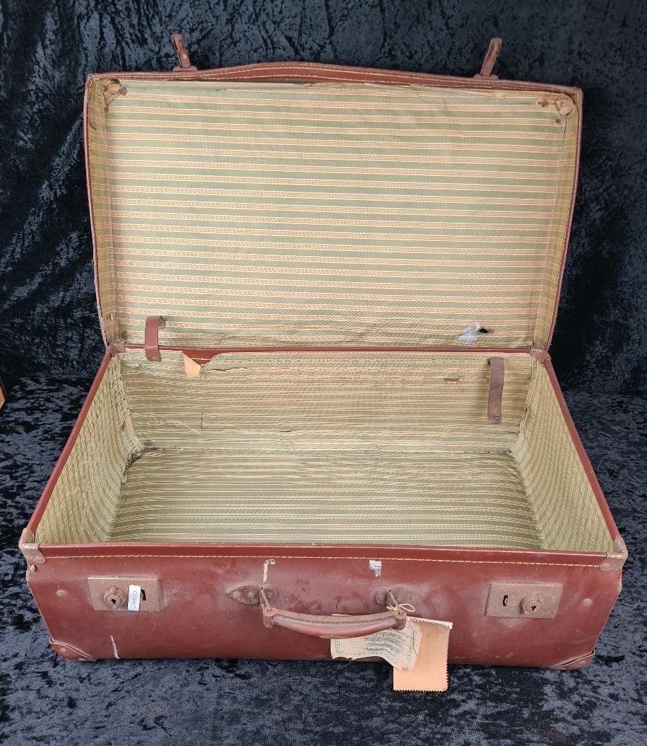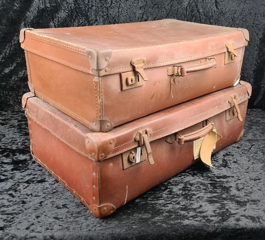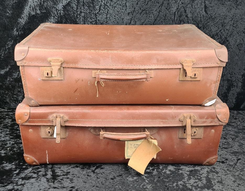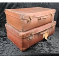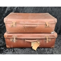 Good pair of vintage brown leather suitcases, both handles intact. Largest approx W65 x D39cm.