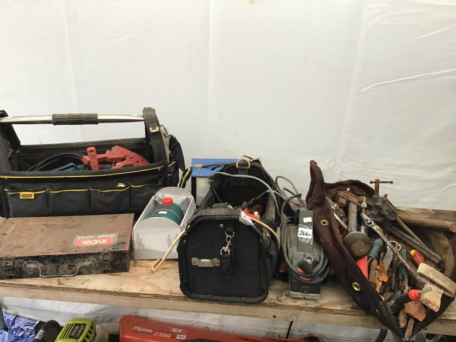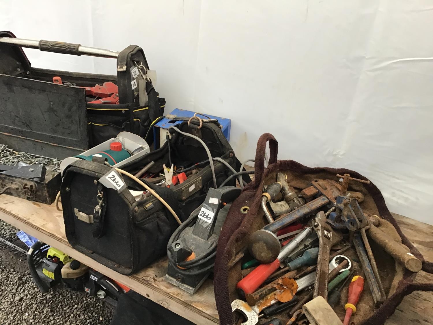 QTY OF ASSORTED TOOLS INC BATTERY CHARGER SANDER ETC
