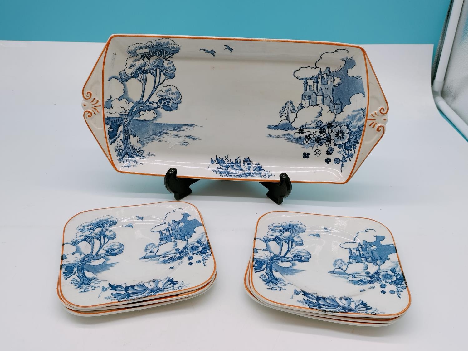 H M & Sons 'Fairieland' Sandwich Set comprising Tray (32cm x 15cm) and 6 Small Plates.