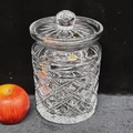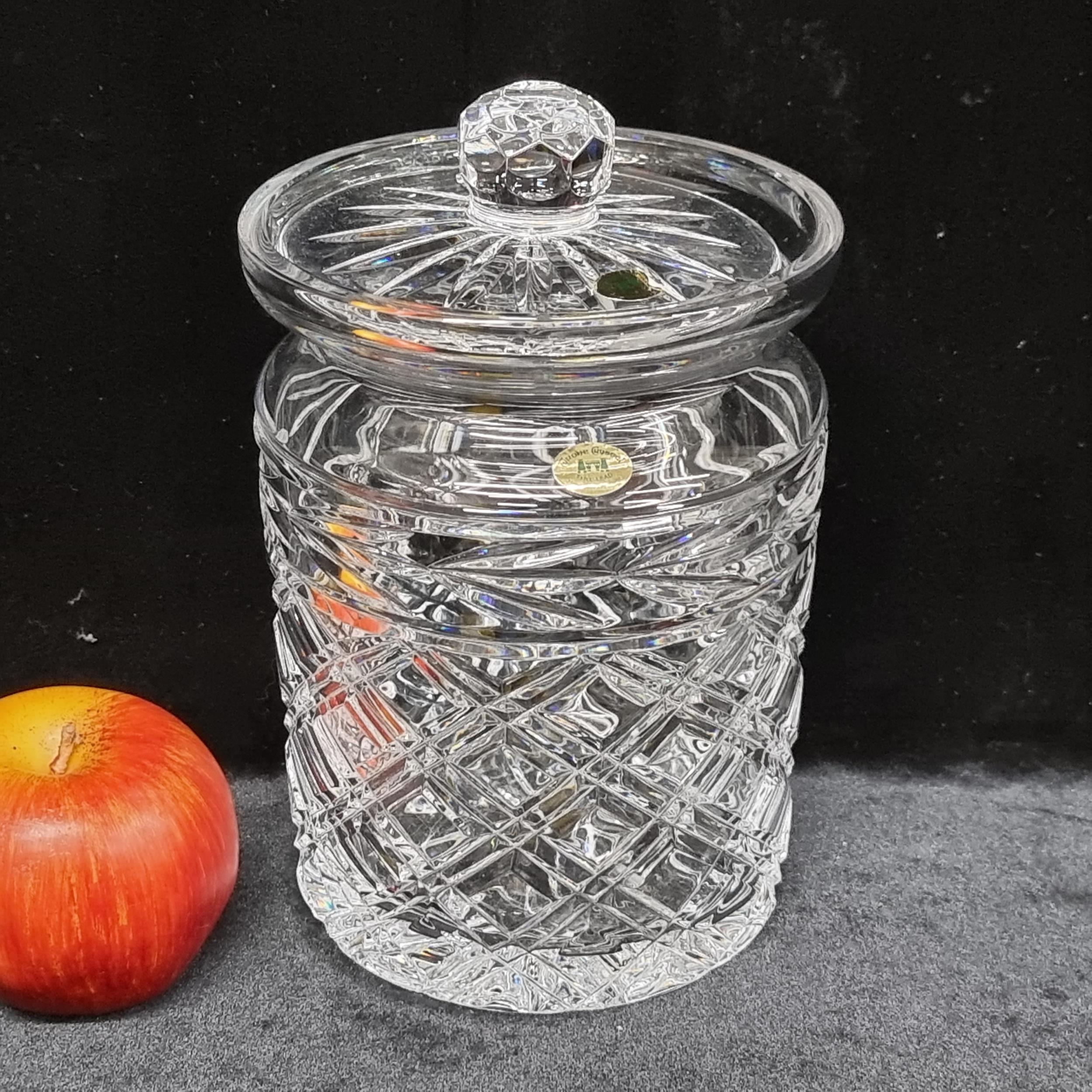 A vintage large Tyrone Crystal oversized storage jar with fitted lid. Featuring a cut-diamond pattern, the jar is in excellent condition and in original presentation box. Made in Ireland.