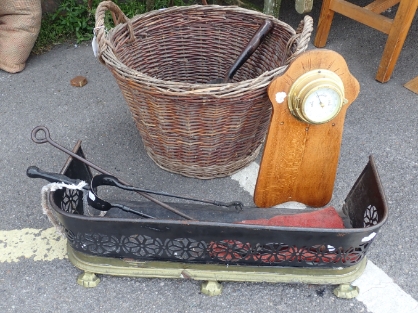 A LOG BASKET, SMALL REGENCY FENDER and other items