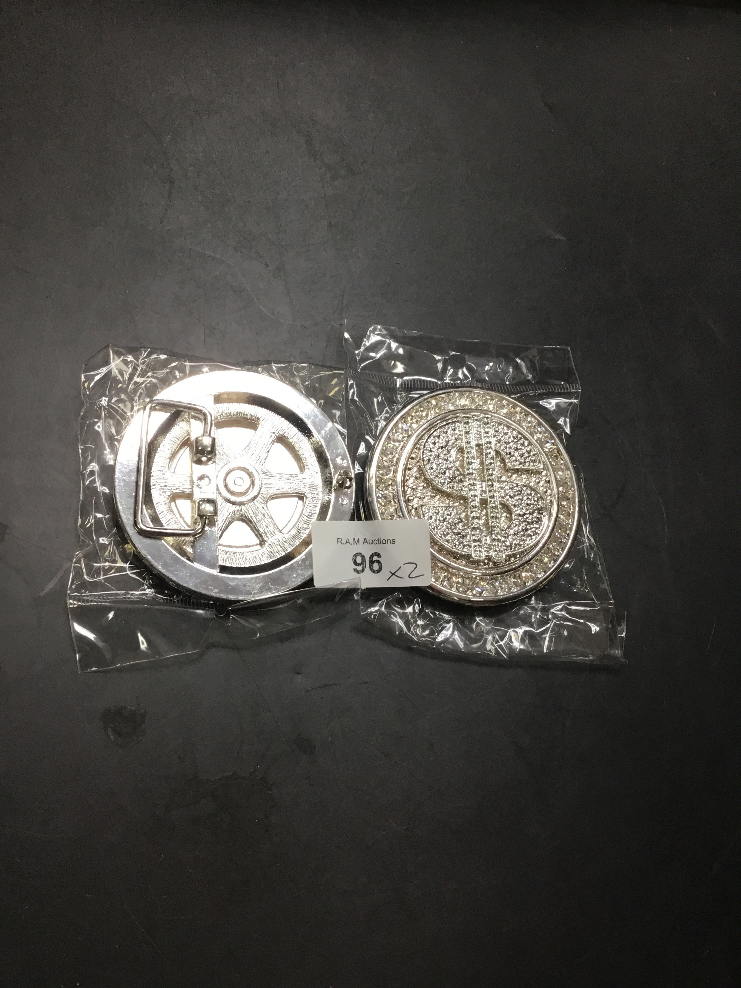 Bling Silver Dollar Sign Revolving Belt Buckles x2