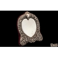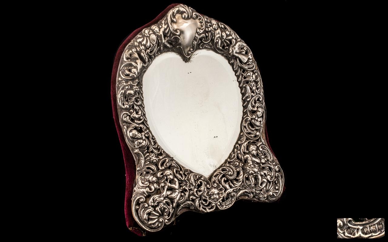 Large Victorian Silver Bedroom Mirror, dated London 1901, Maker W.C. Decorated with cherubs, David fighting dragon, vacant cartouche, extremely well detailed. Red velvet back, needs a pin bottom right. 28 cm in height.