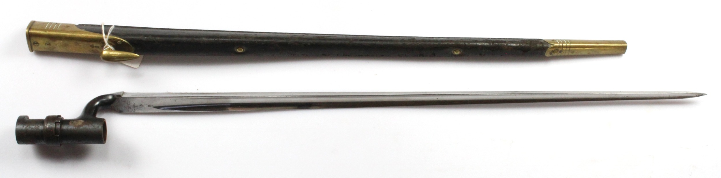 Bayonet 1876 pattern socket bayonet for the Martini Henry rifle in superb condition with much of its original bluing and a very clean blade.