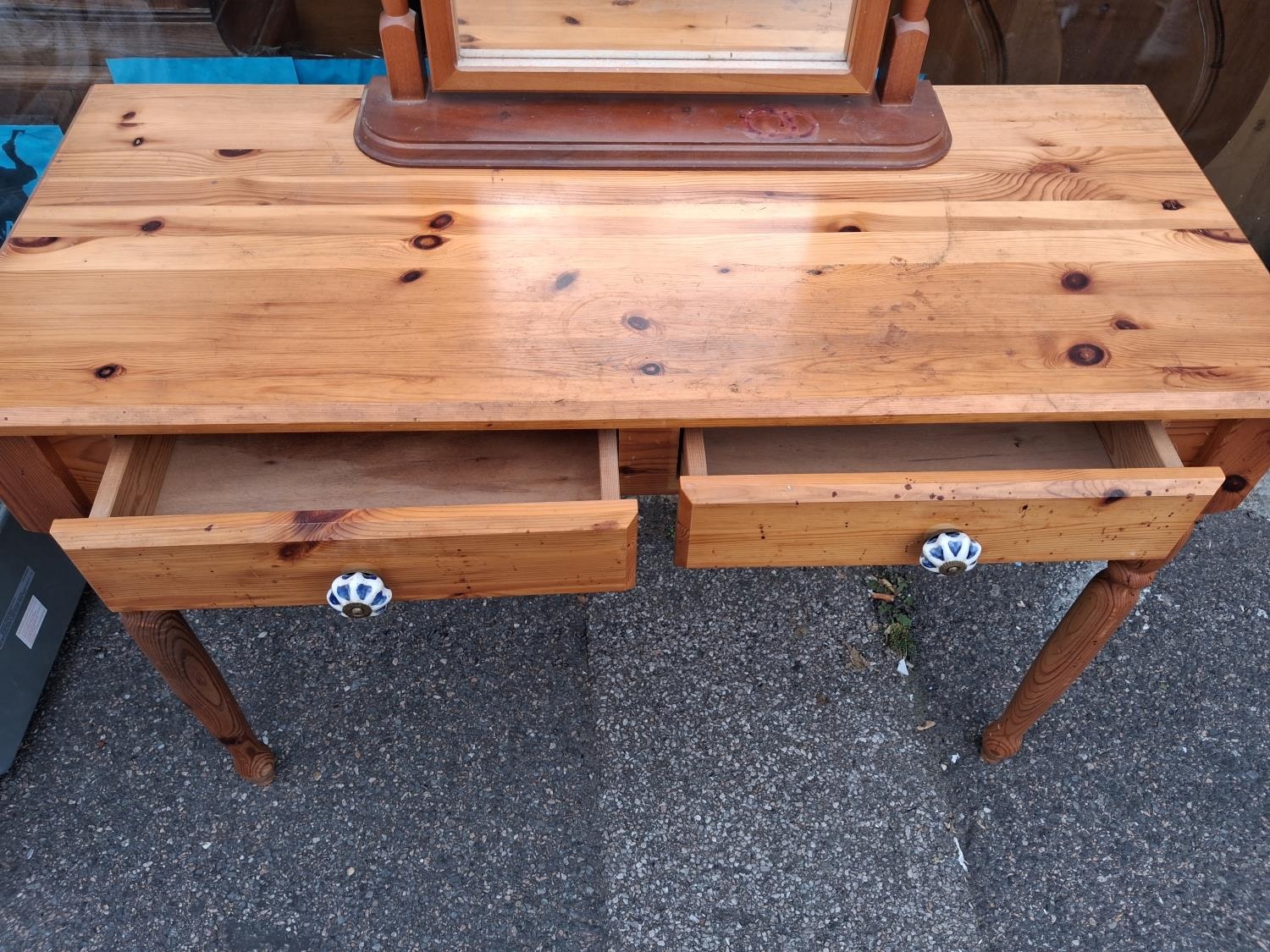 Pine Dressing Table/Hall Table With China Handles And A Dressing Table Mirror