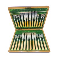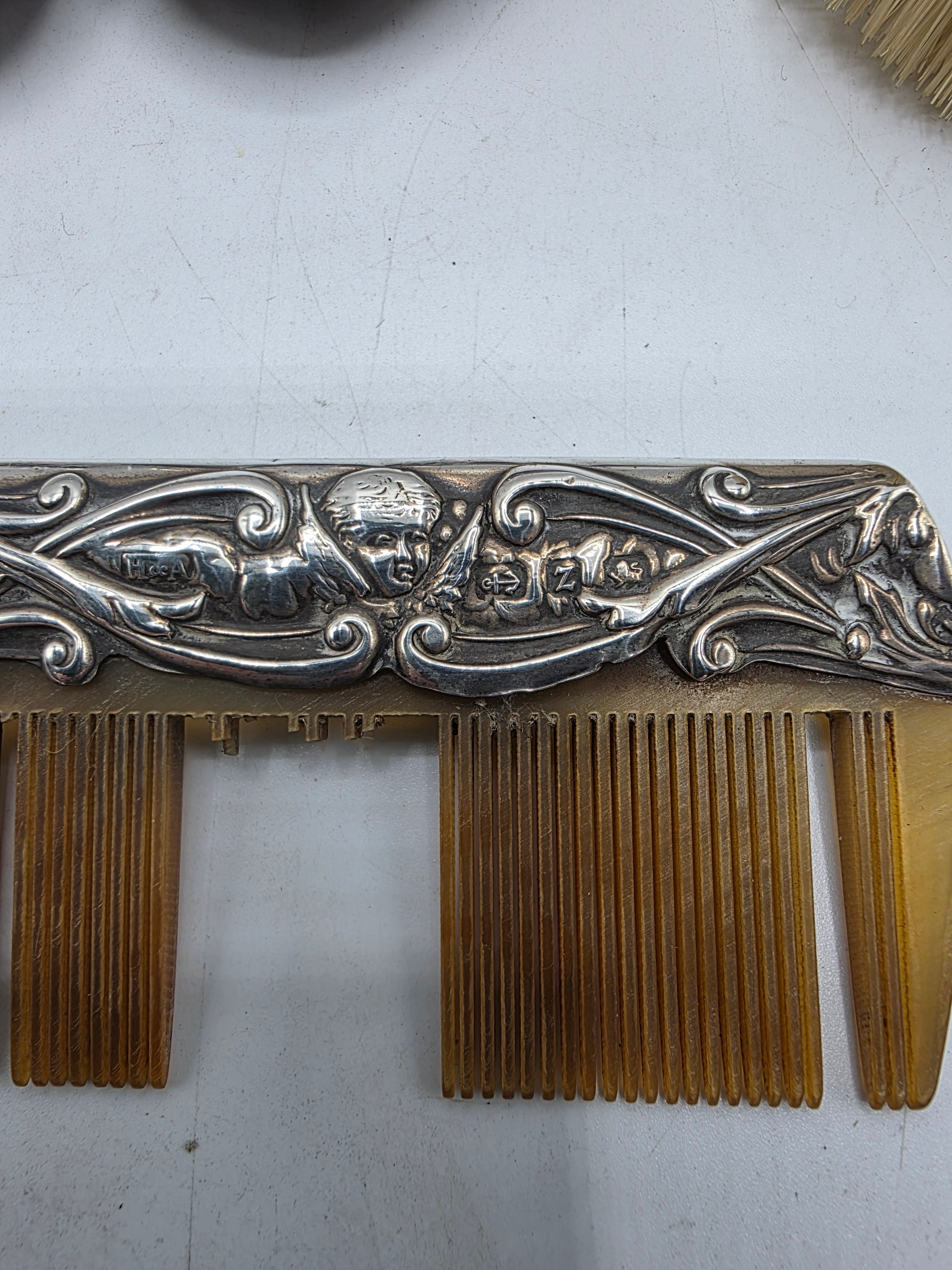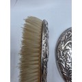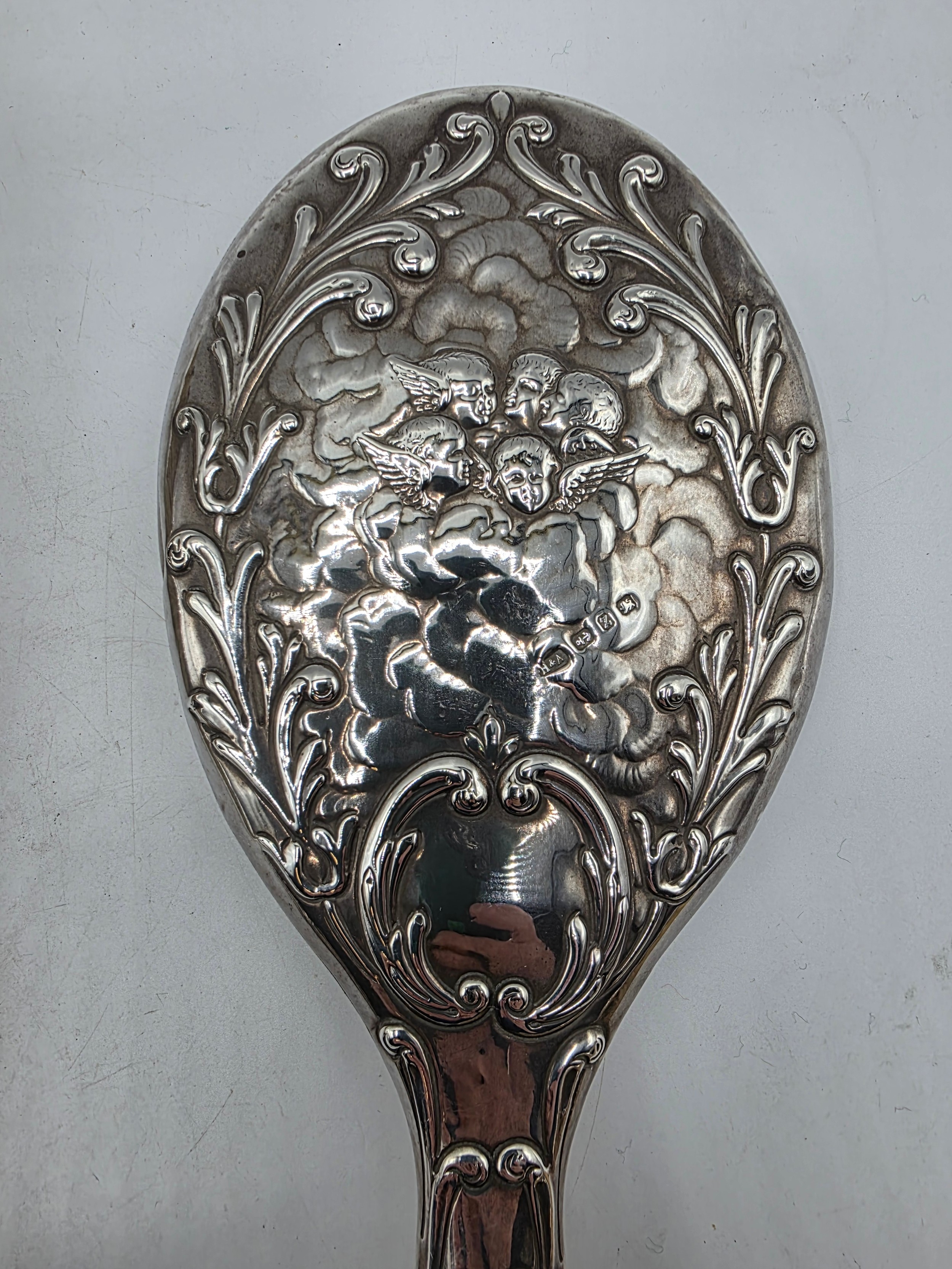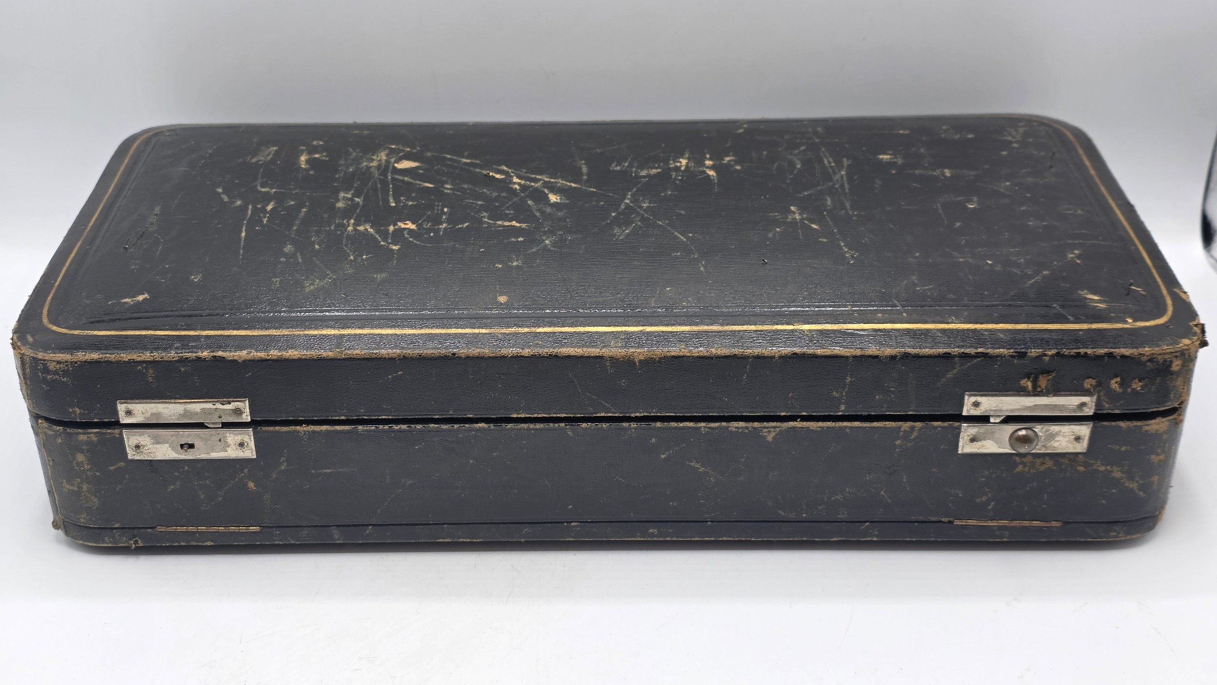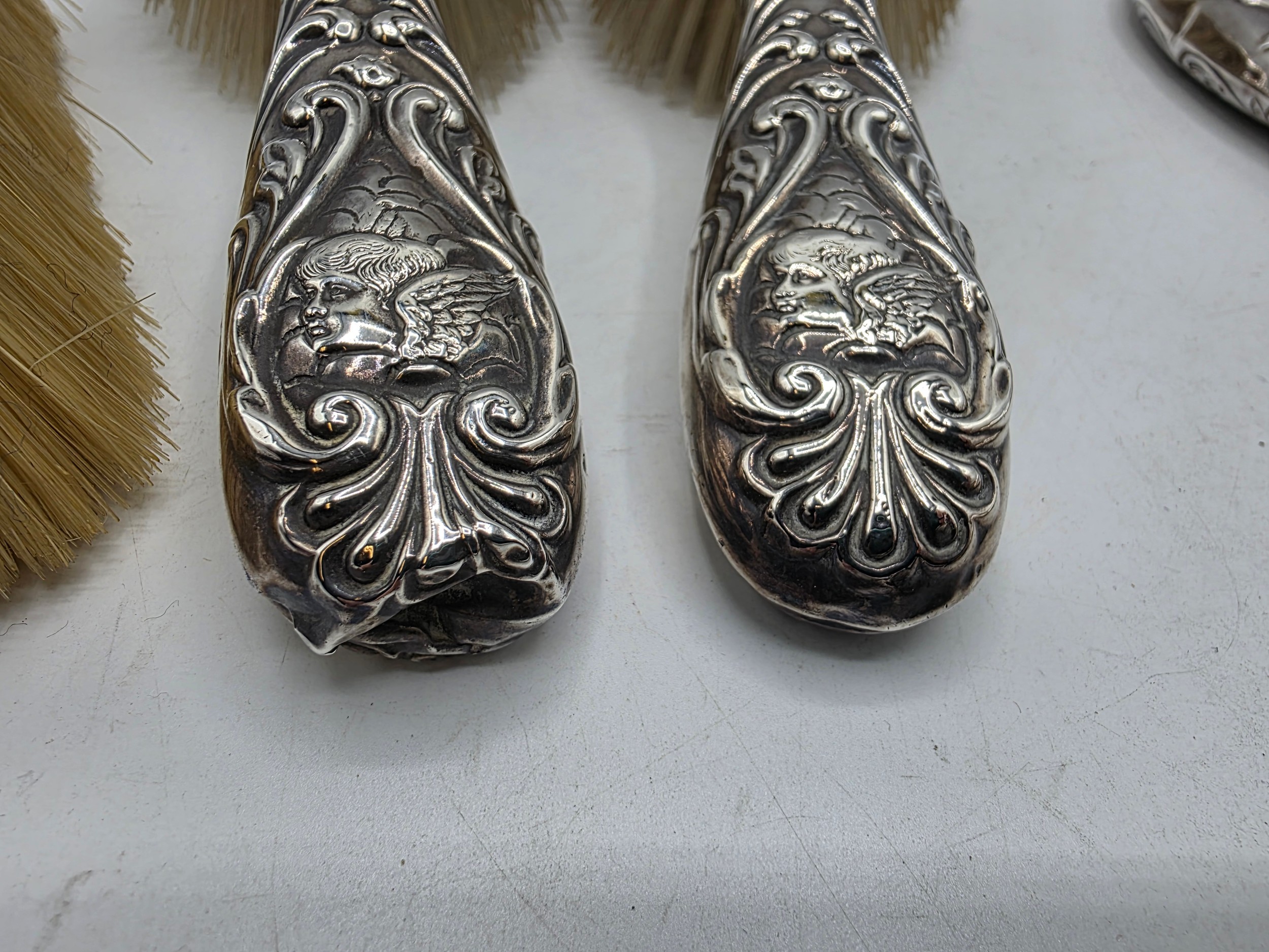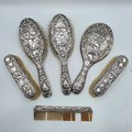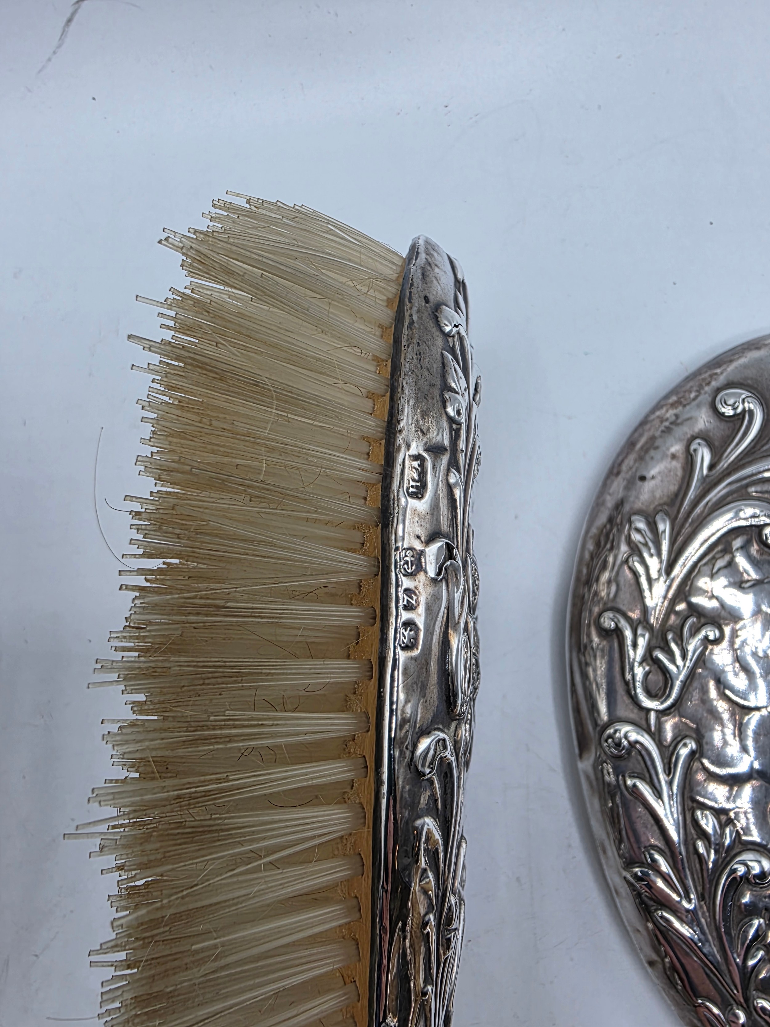 A sterling silver mounted travel dressing table set in blue velvet lined leather covered box, by Horton and Allday, Birmingham, 1899.