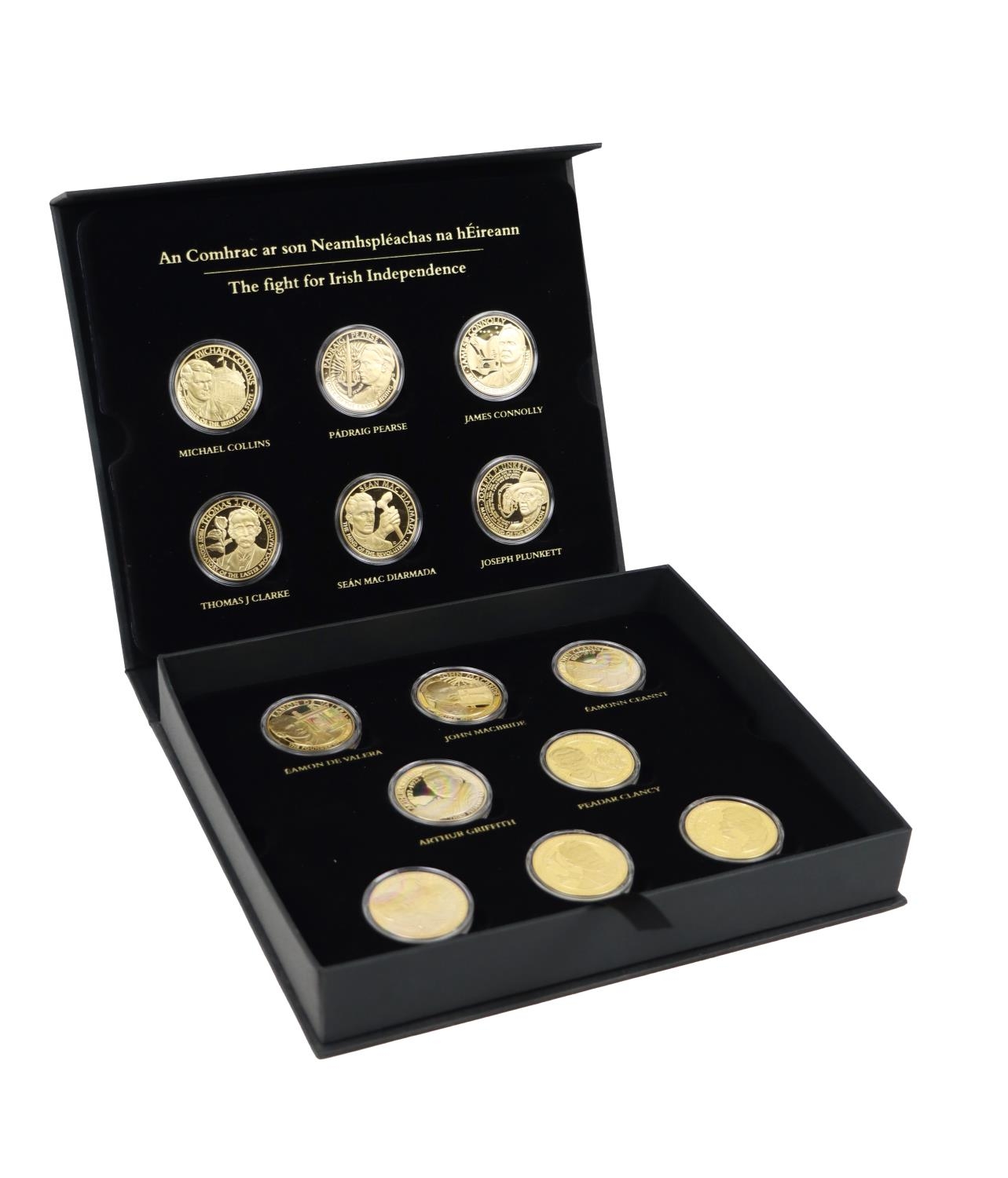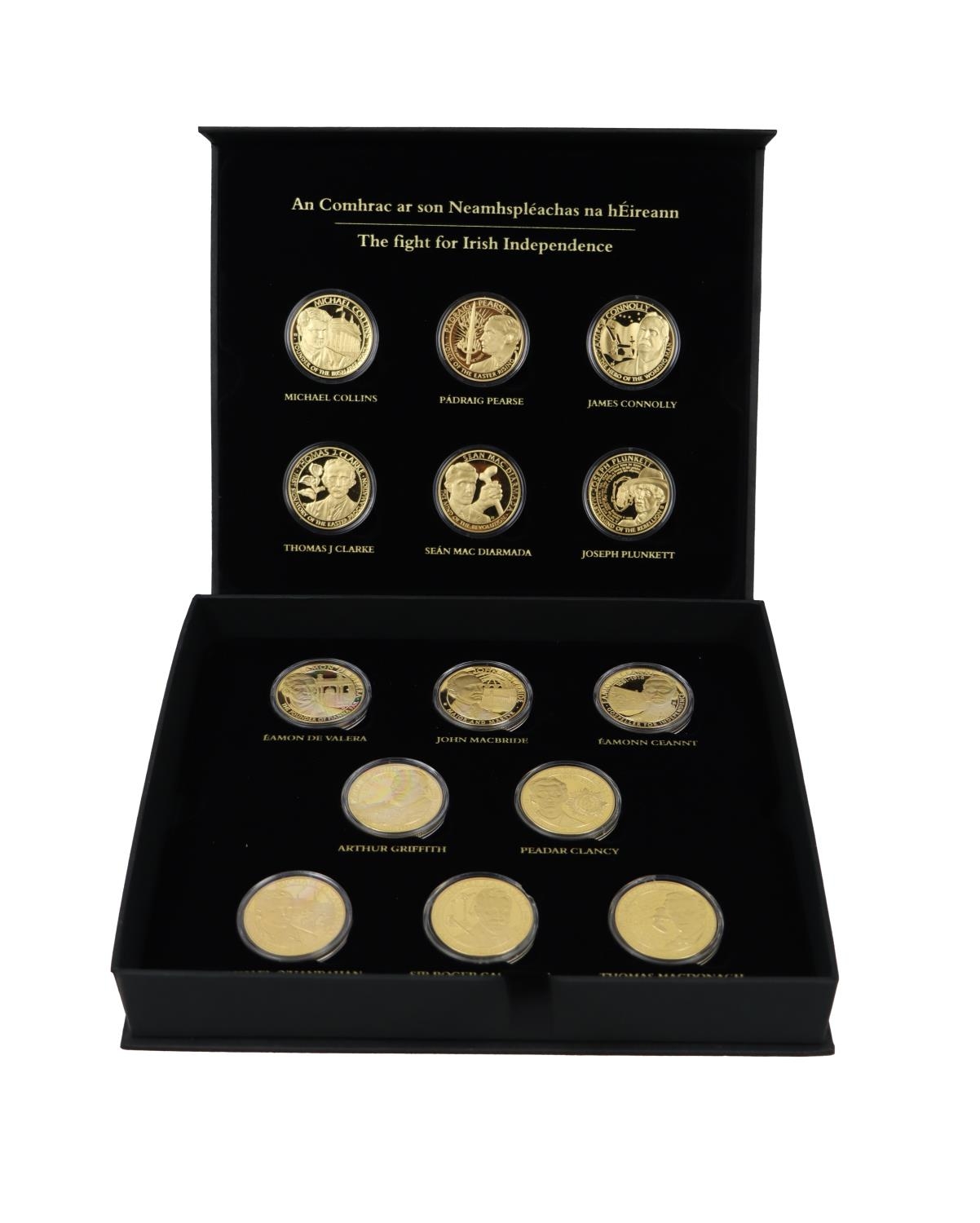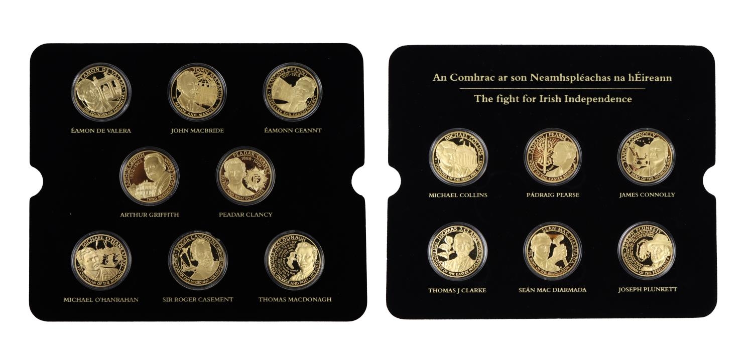 Coins: Dublin Mint Office - The Fight for Irish Independence, a cased presentation set comprising 14 Proof Coins (cased) covered in pure 24 carat gold, with certificates. (1)