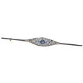 Sapphire and diamond bar brooch, marked '15CT', length 70mm, gross weight 4.55 grams