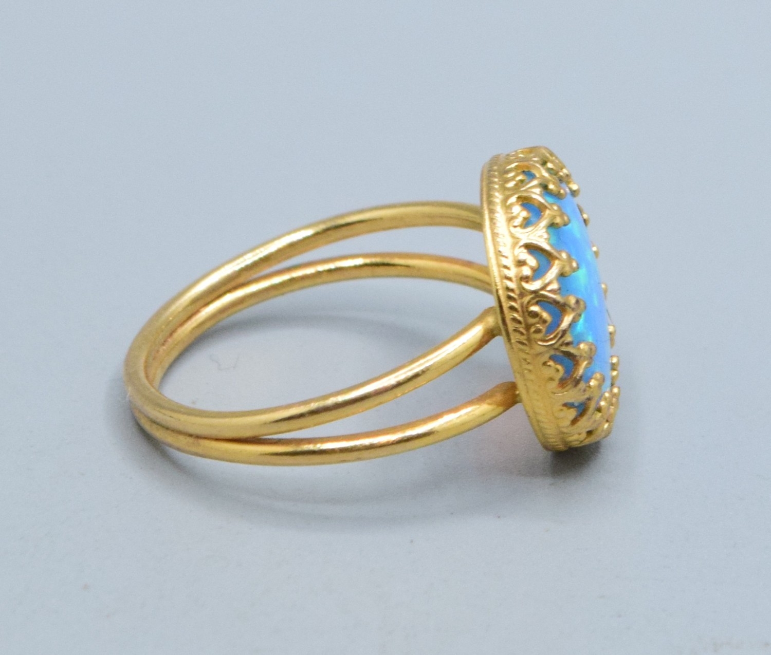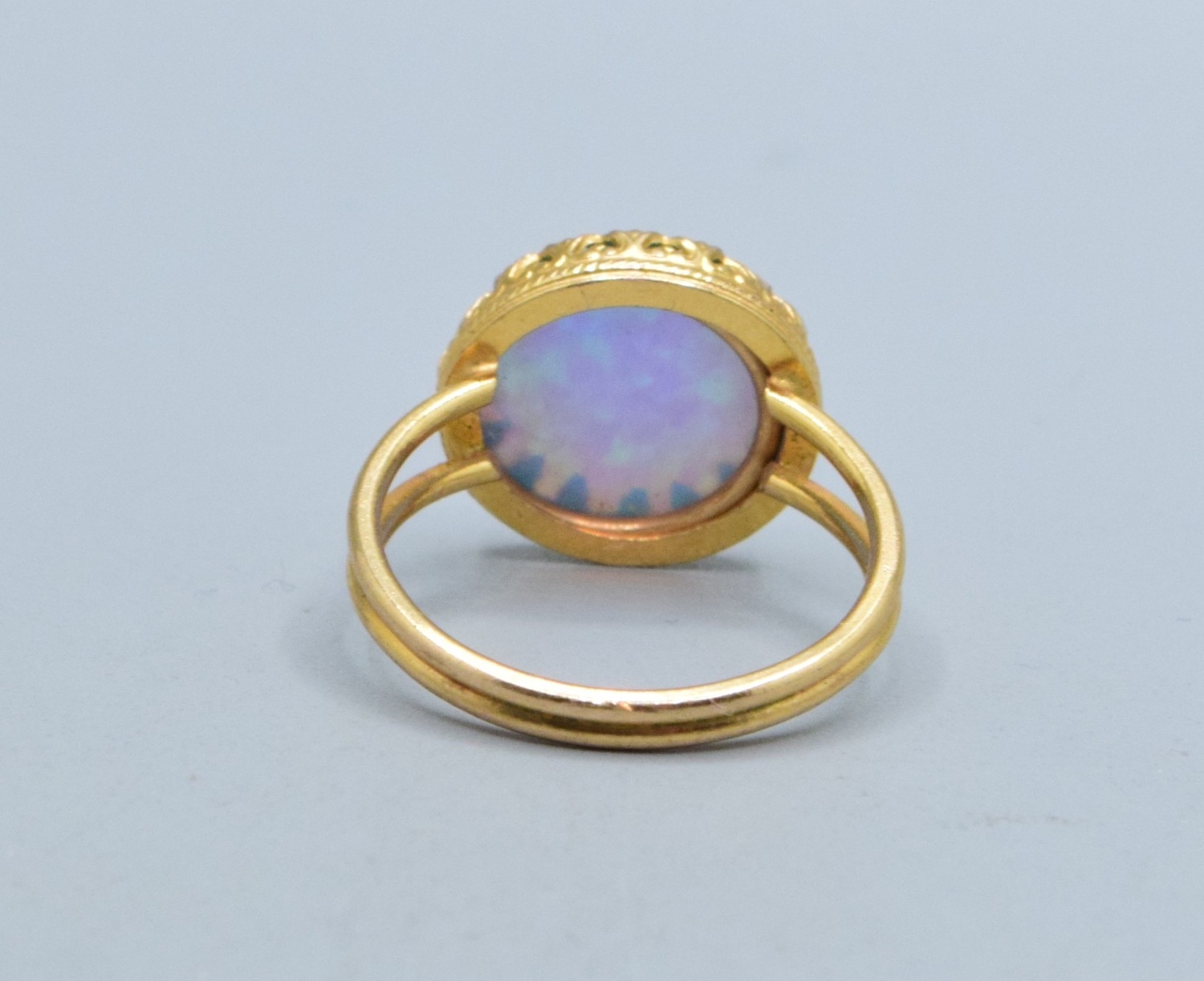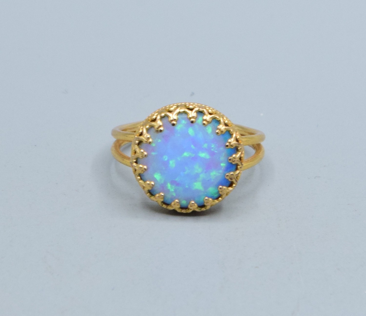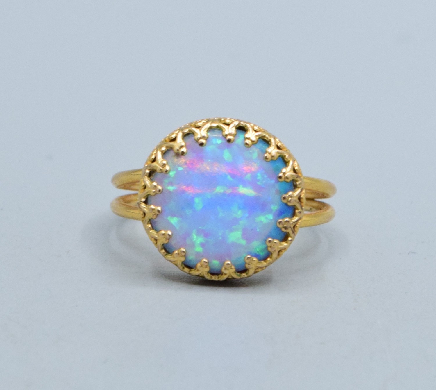 Round Opal ladies vintage dress ring set in 9ct gold (tested) claw mount the head measures 13mm diameter size L