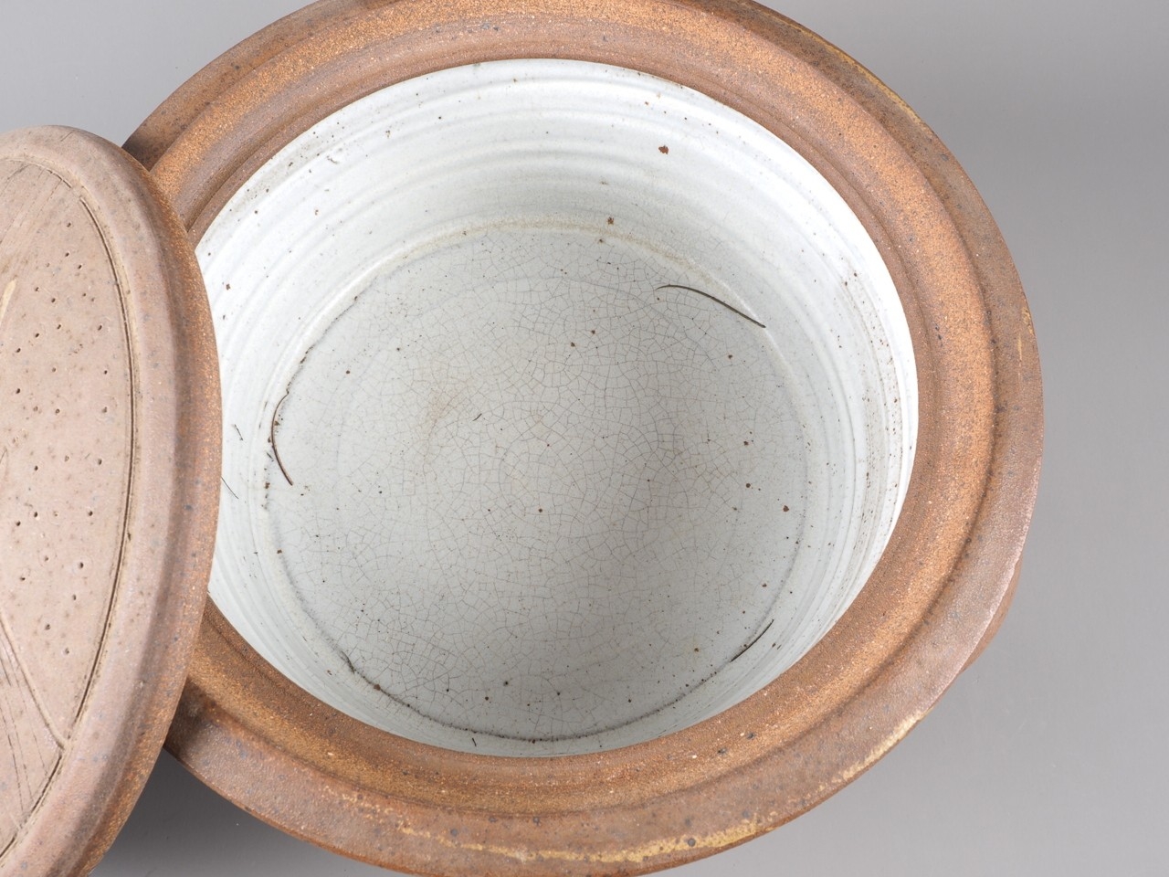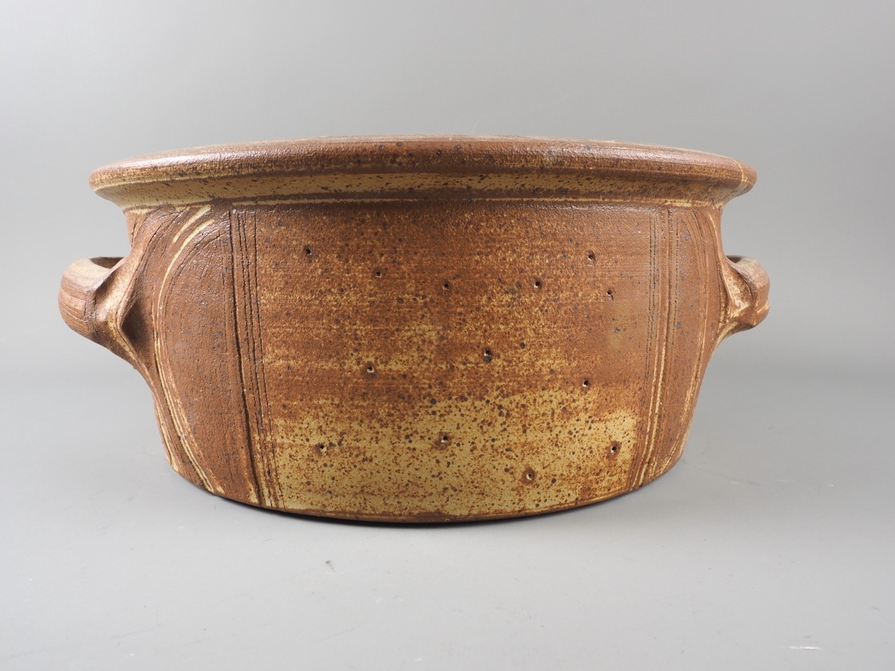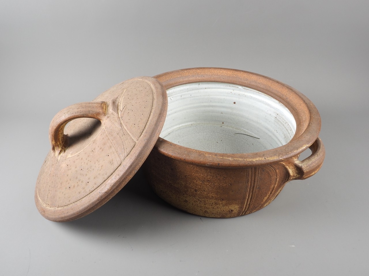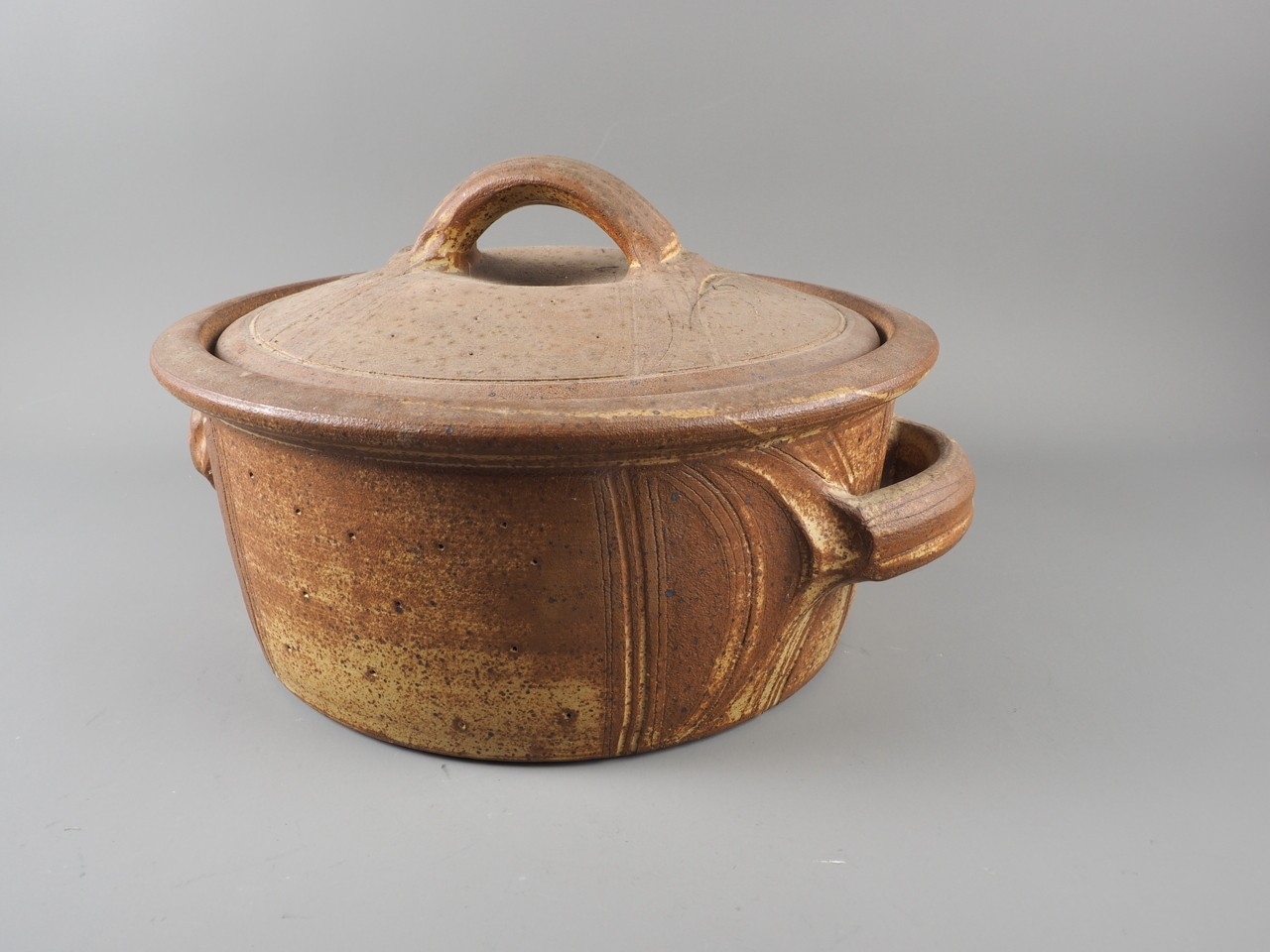 A mid 20th century Studio Pottery two-handled casserole dish and cover, 16" wide overall
