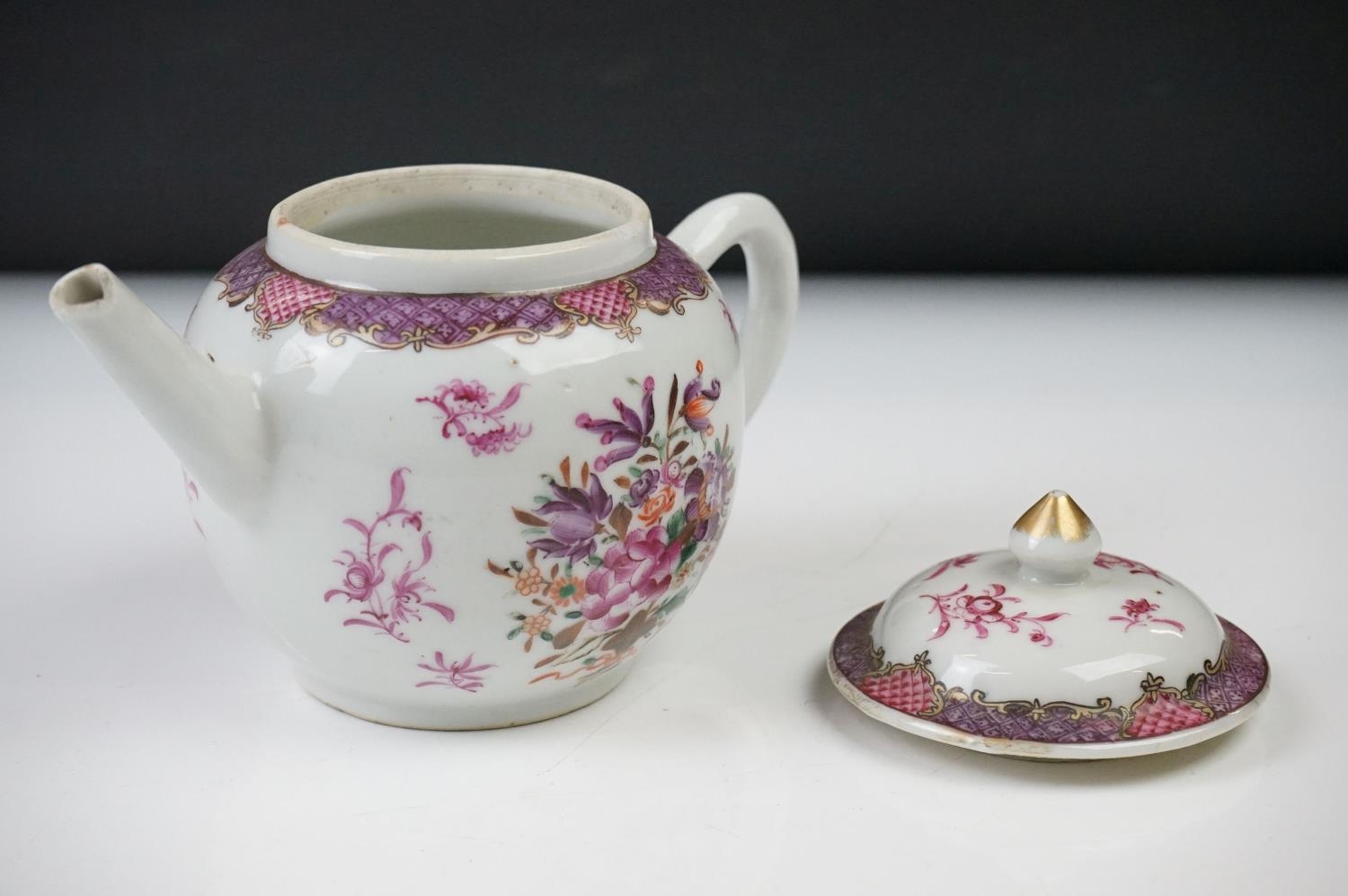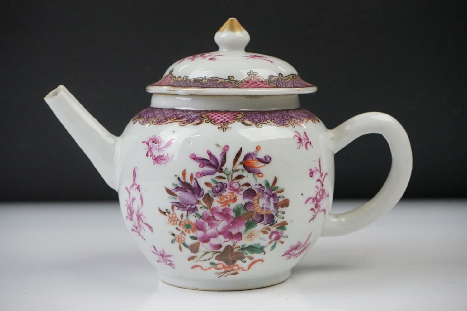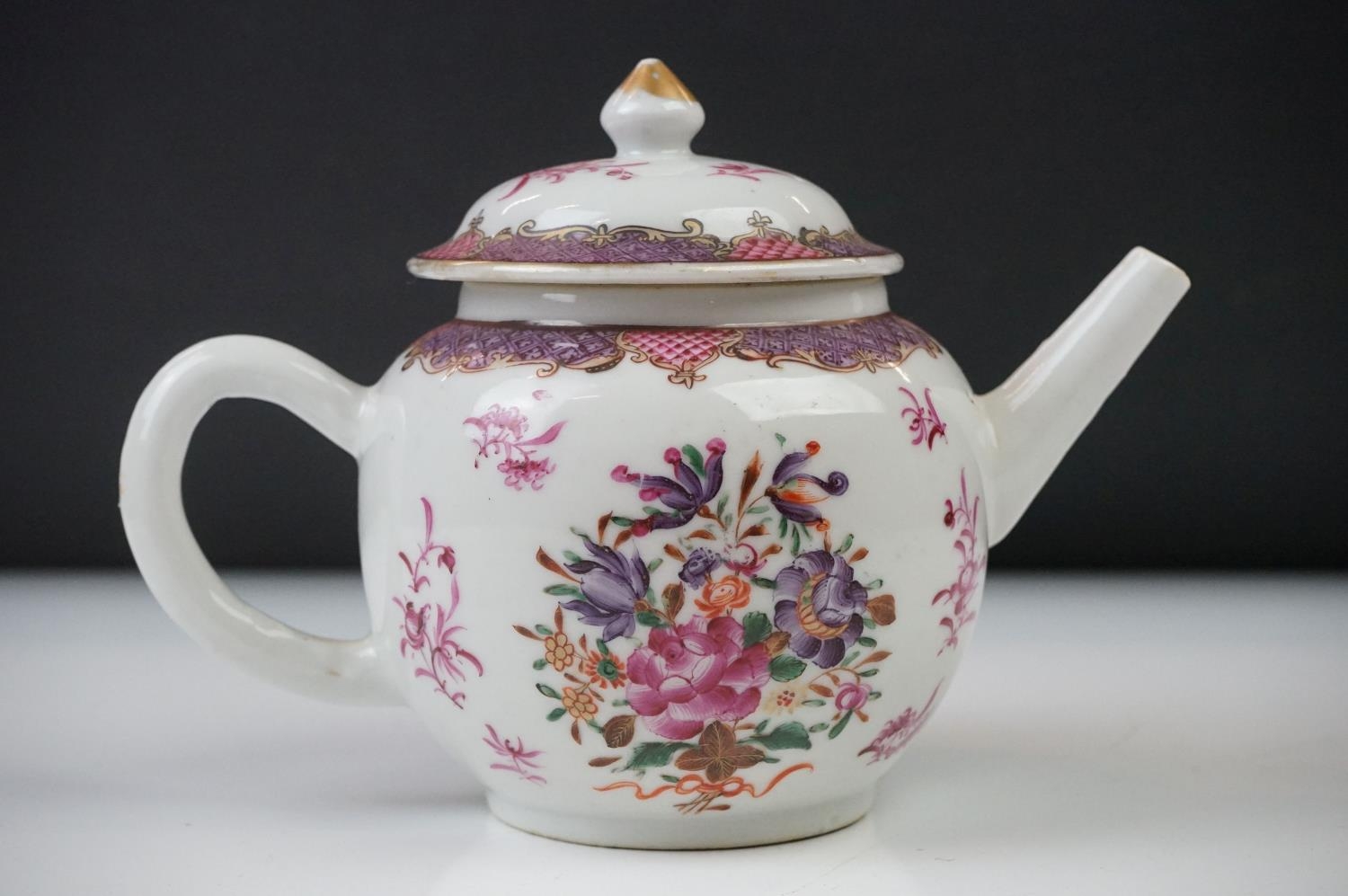 18th century Chinese Porcelain Famille Rose Teapot decorated with floral sprays, 14cm high