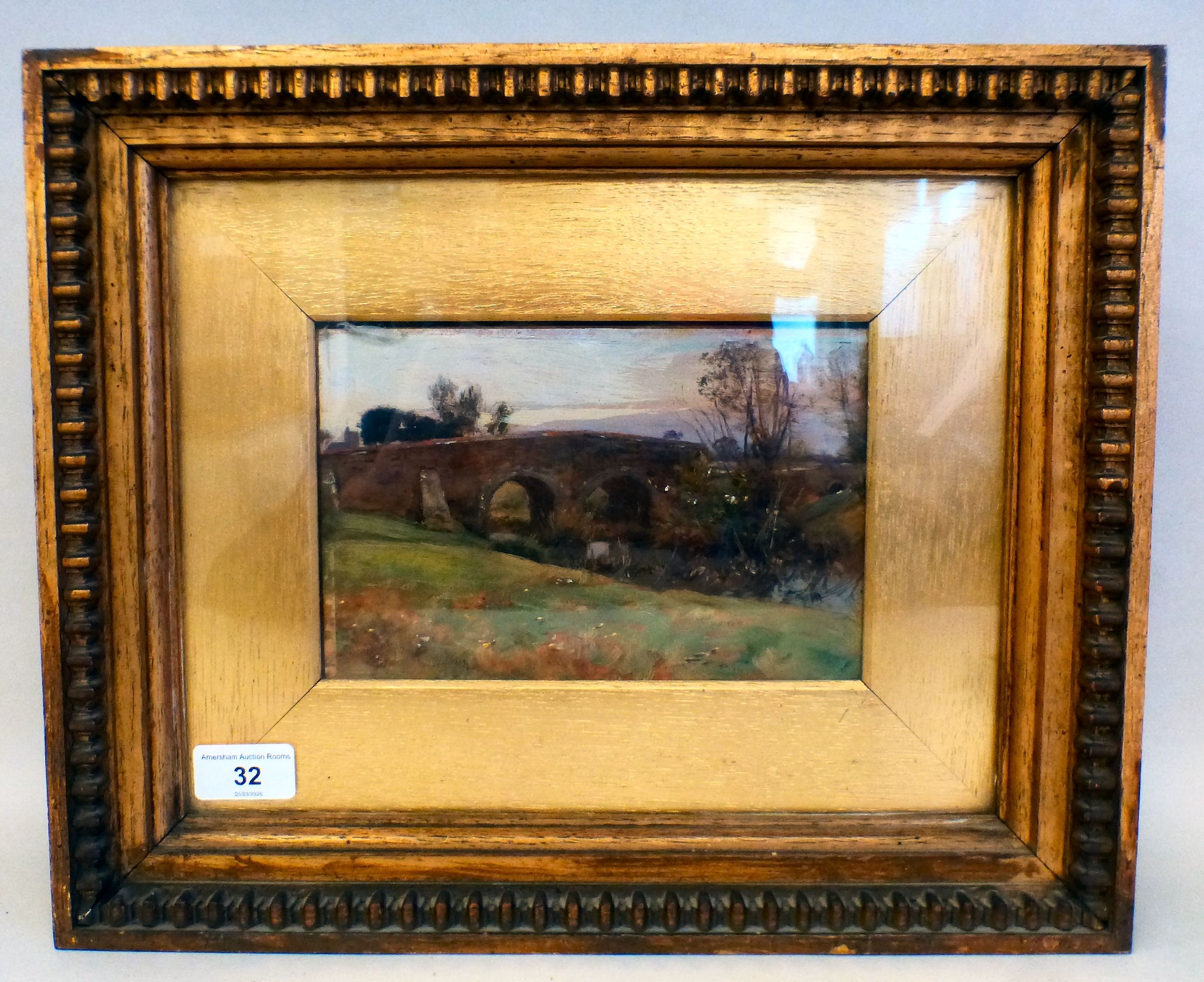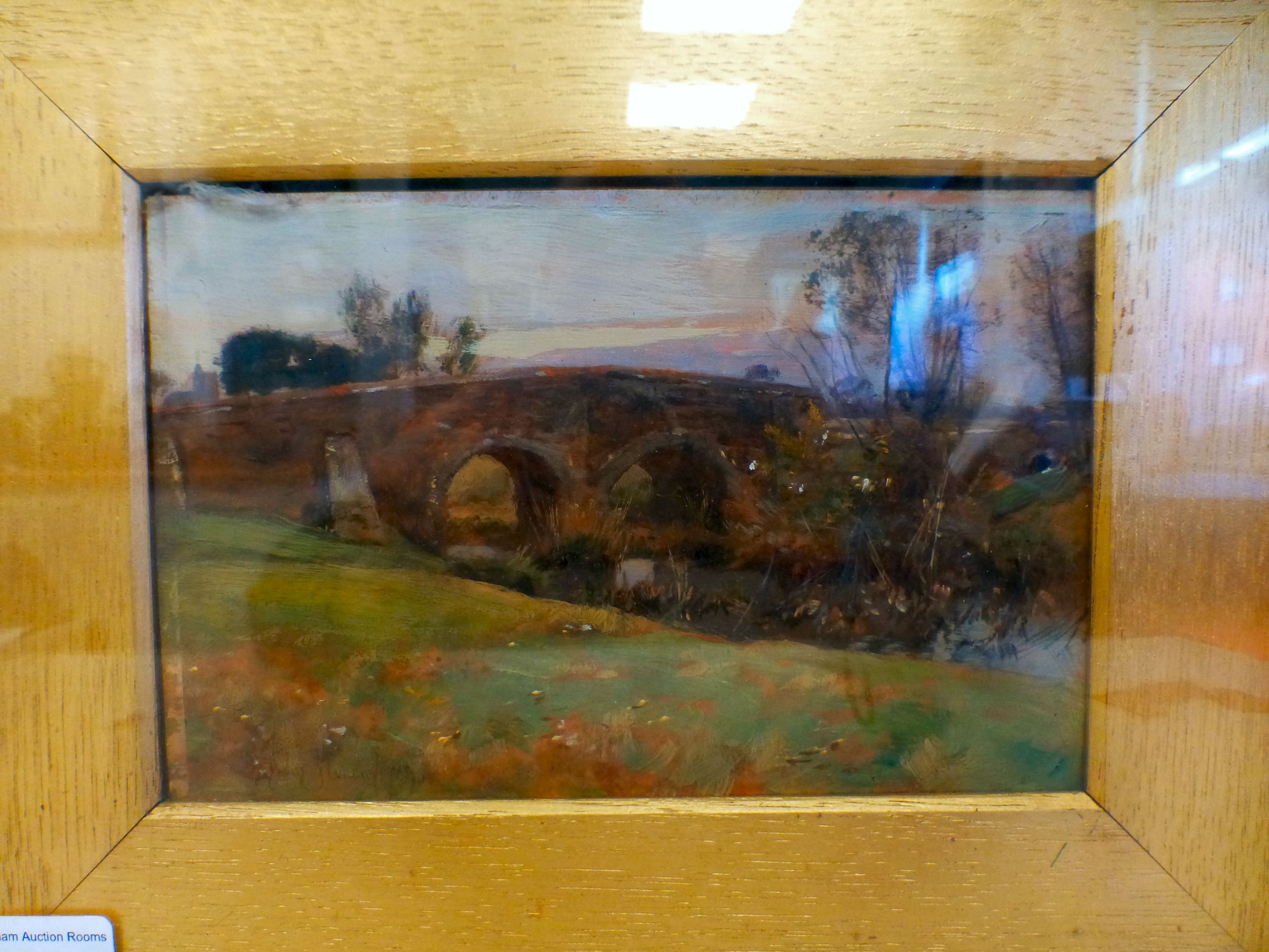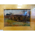David Murray - a bridge over a river oil on board bears a signature (bottom left) and text verso 6" x 8" framed