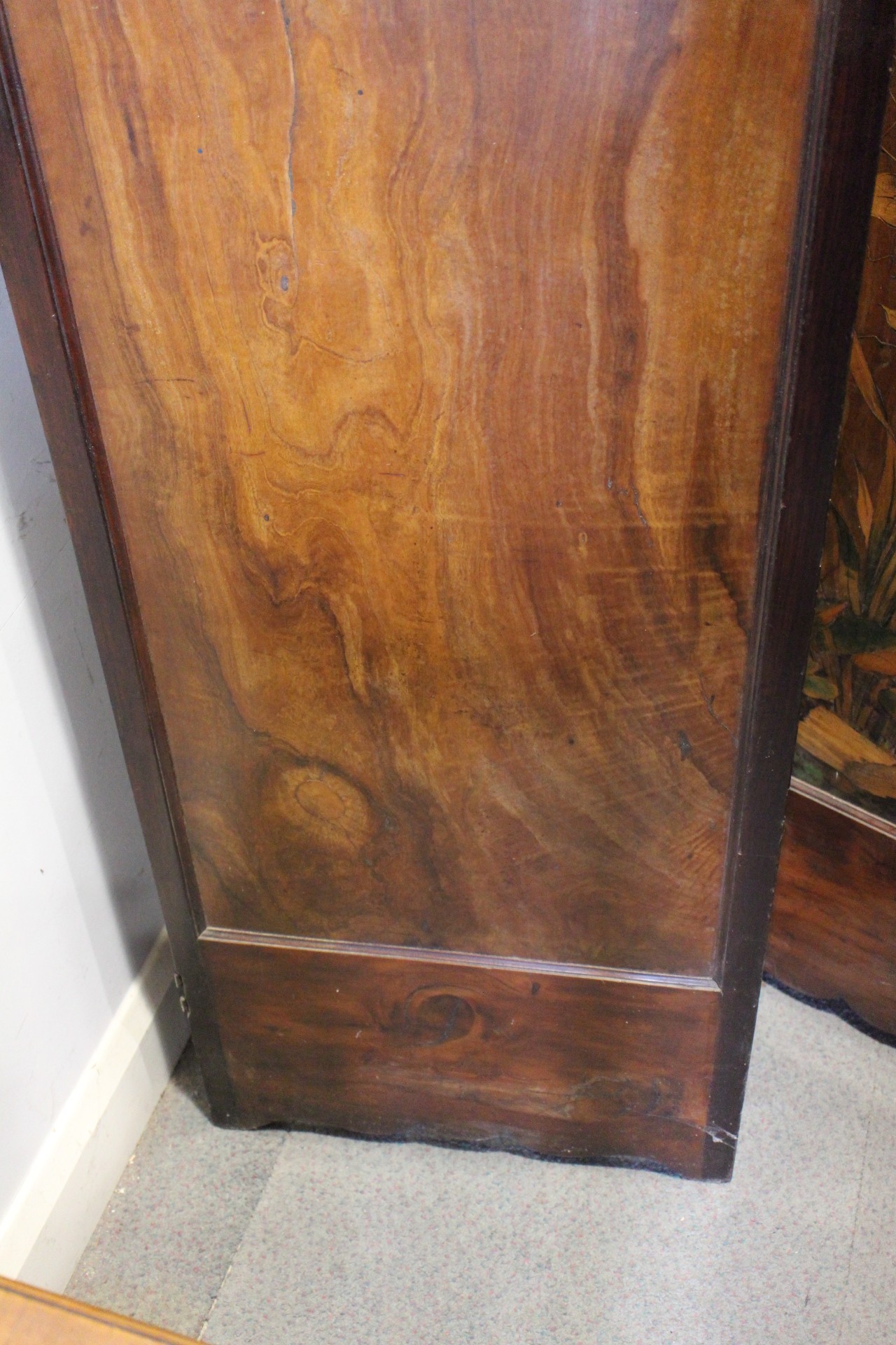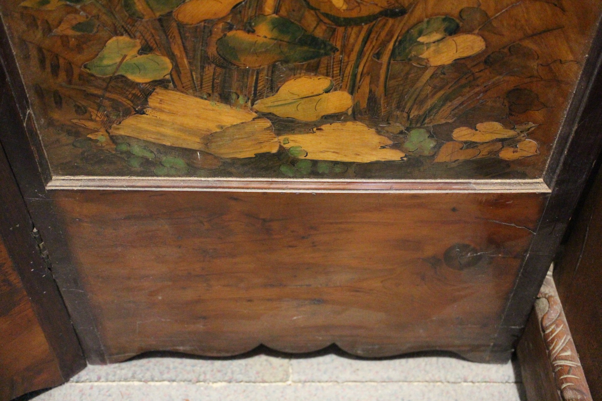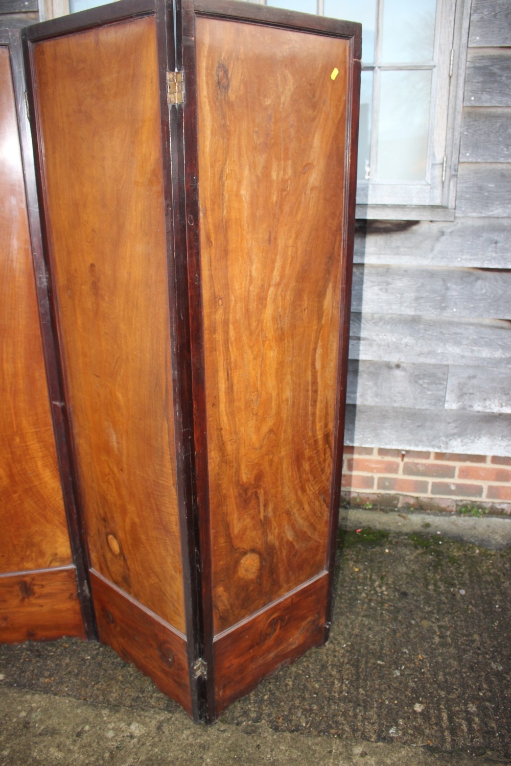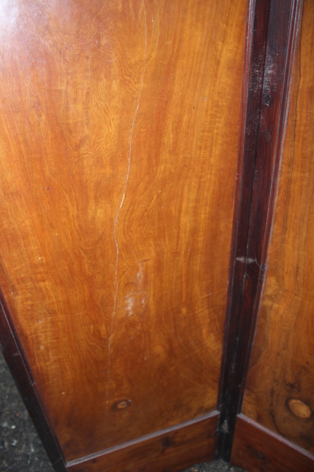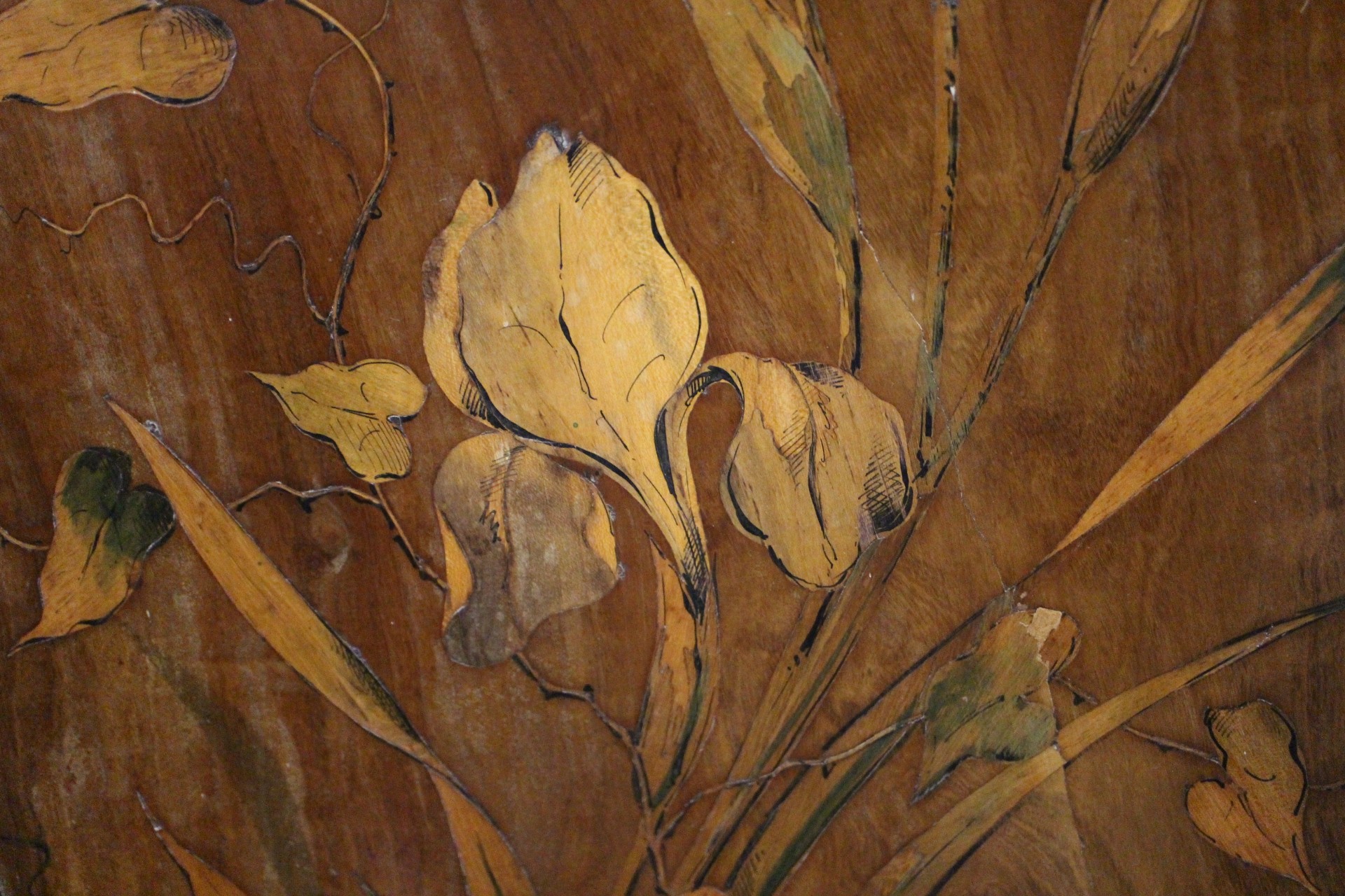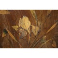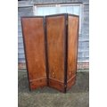 An Art Nouveau marquetry three-fold screen/room divider, decorated flora and insects, 54" wide overall x 65" high