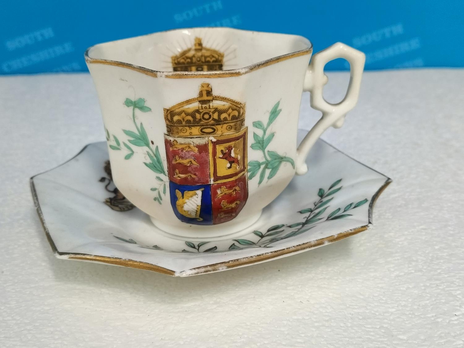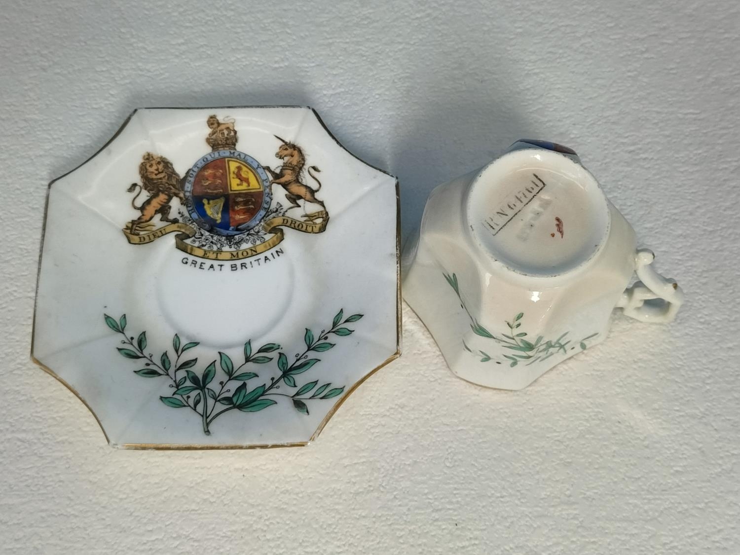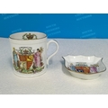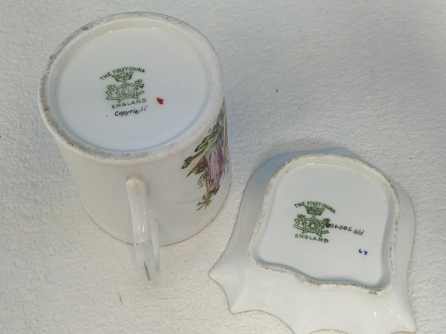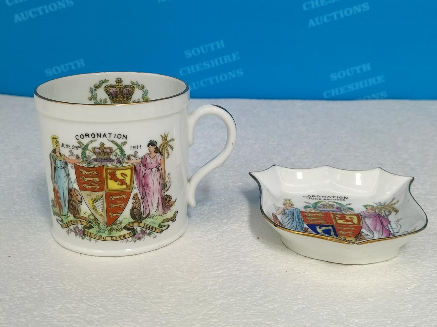 Collection of Wileman & Co Foley China Commemorative Ware to include The Death of Queen Victoria 1901 Cup and Saucer, Queen Anne Shaped Cup and Saucer for Queen Victoria's Golden Jubilee 1837-1887, Coronation of Edward V11 1902 Demitasse Trio, Coronation of George V 1911 Coffee Can and Coronation of Edward V11 1902 Pin Dish.