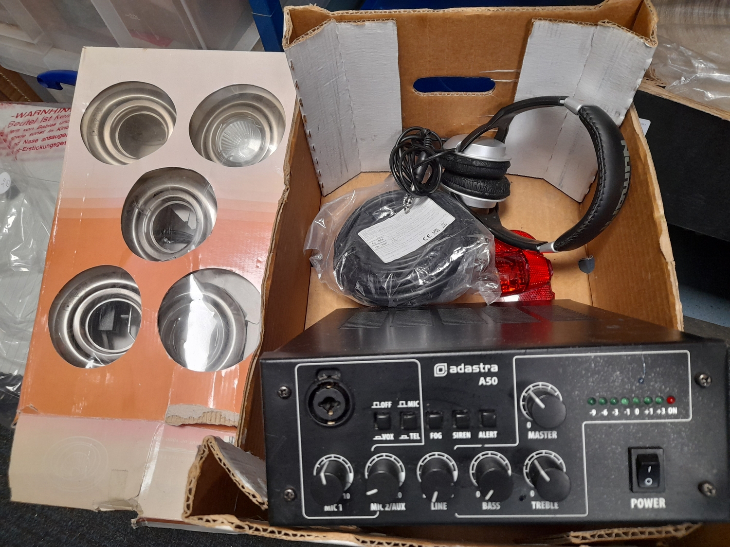 Box Of Electrical Items Including A Set Of Recess Lights In Box