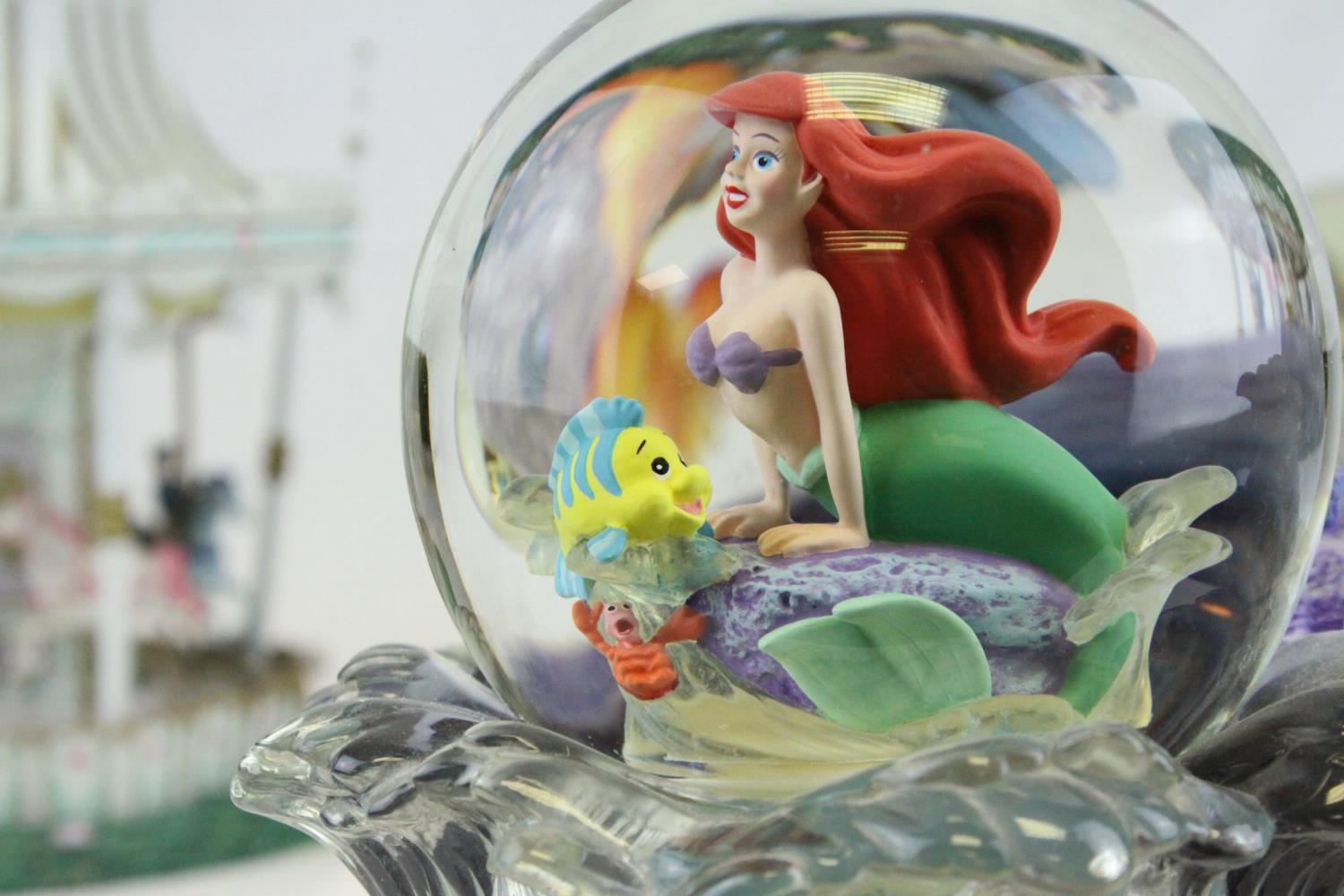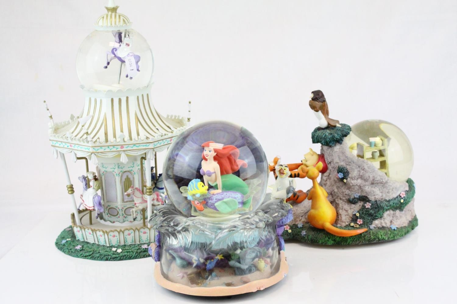 Three Walt Disney Themed Novelty Musical Snow Globes - Mary Poppins Merry Go Round, Winnie the Pooh and The Little Mermaid