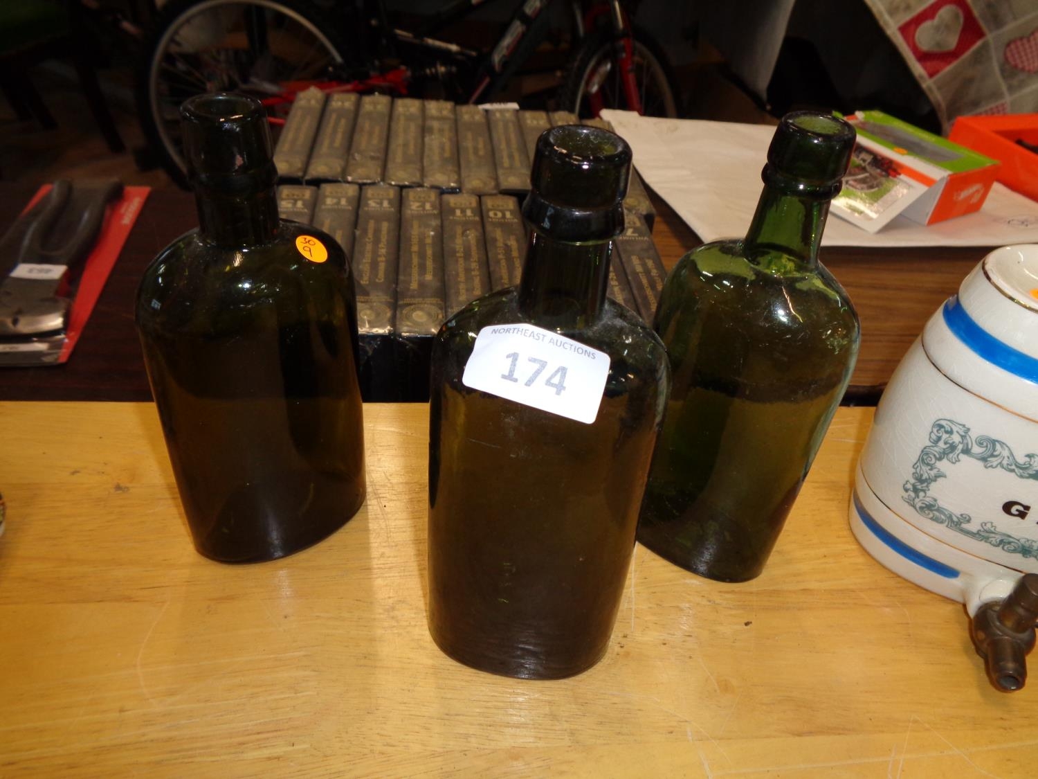 3 x 19th Century Whiskey Bottles in Green Glass