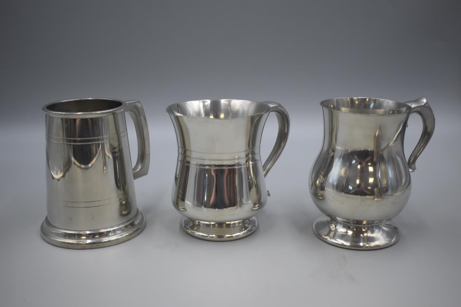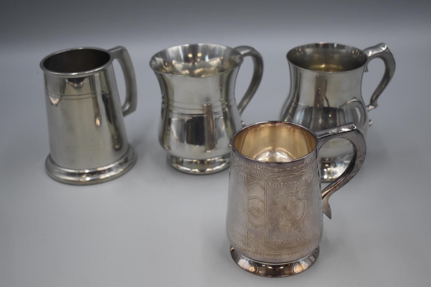 Three Pewter Tankards and One Silver Plate