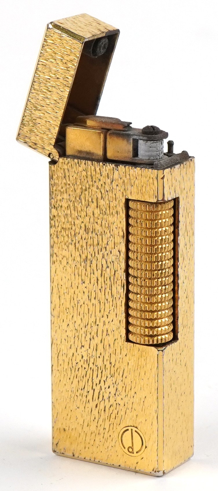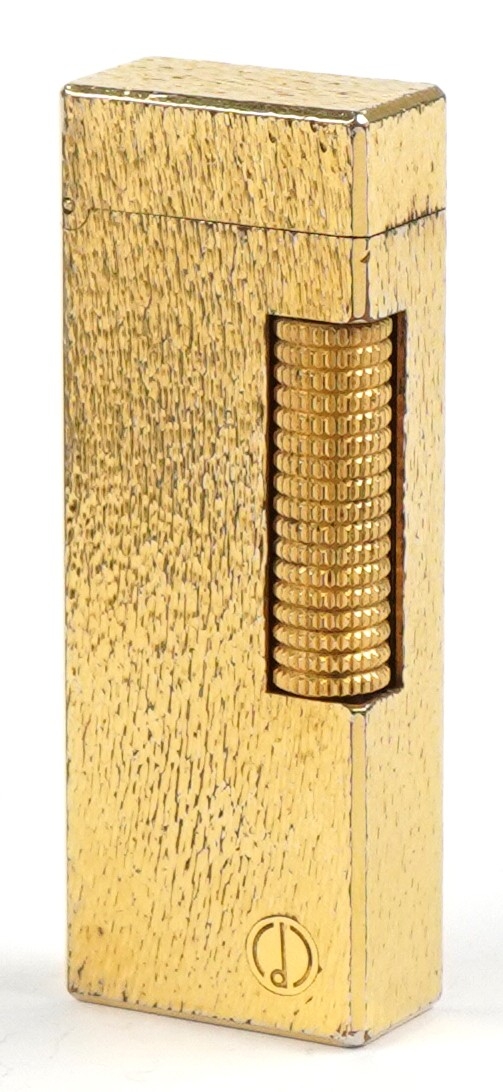 A Dunhill gold plated engine turned pocket lighter with guar...
