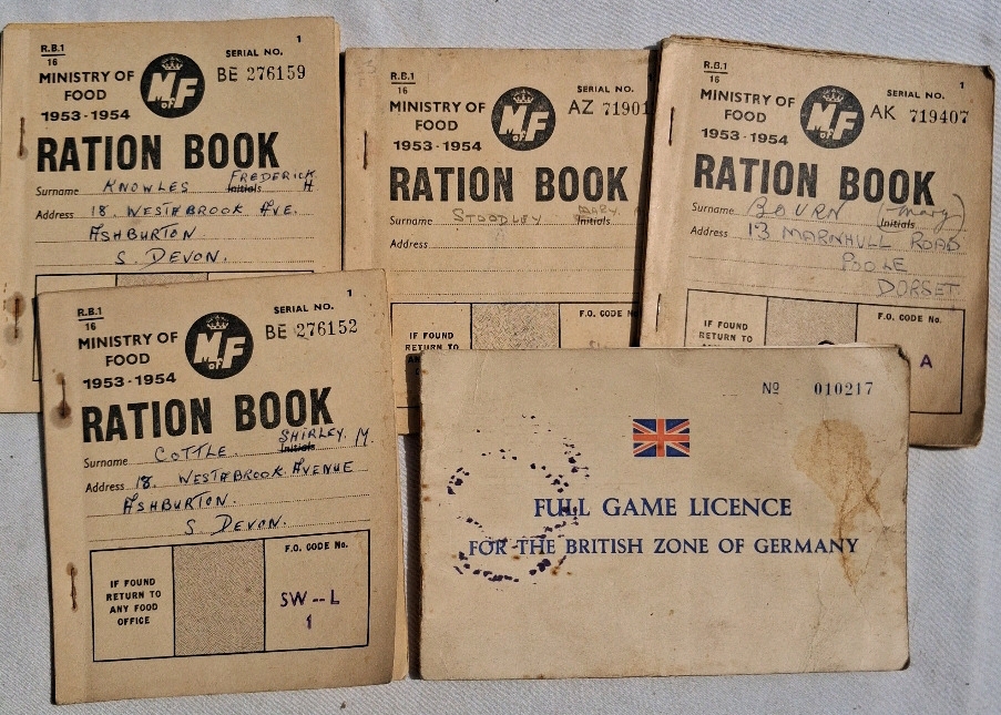 Ministry of food ration books and a BAOR occupation zone gun game licence