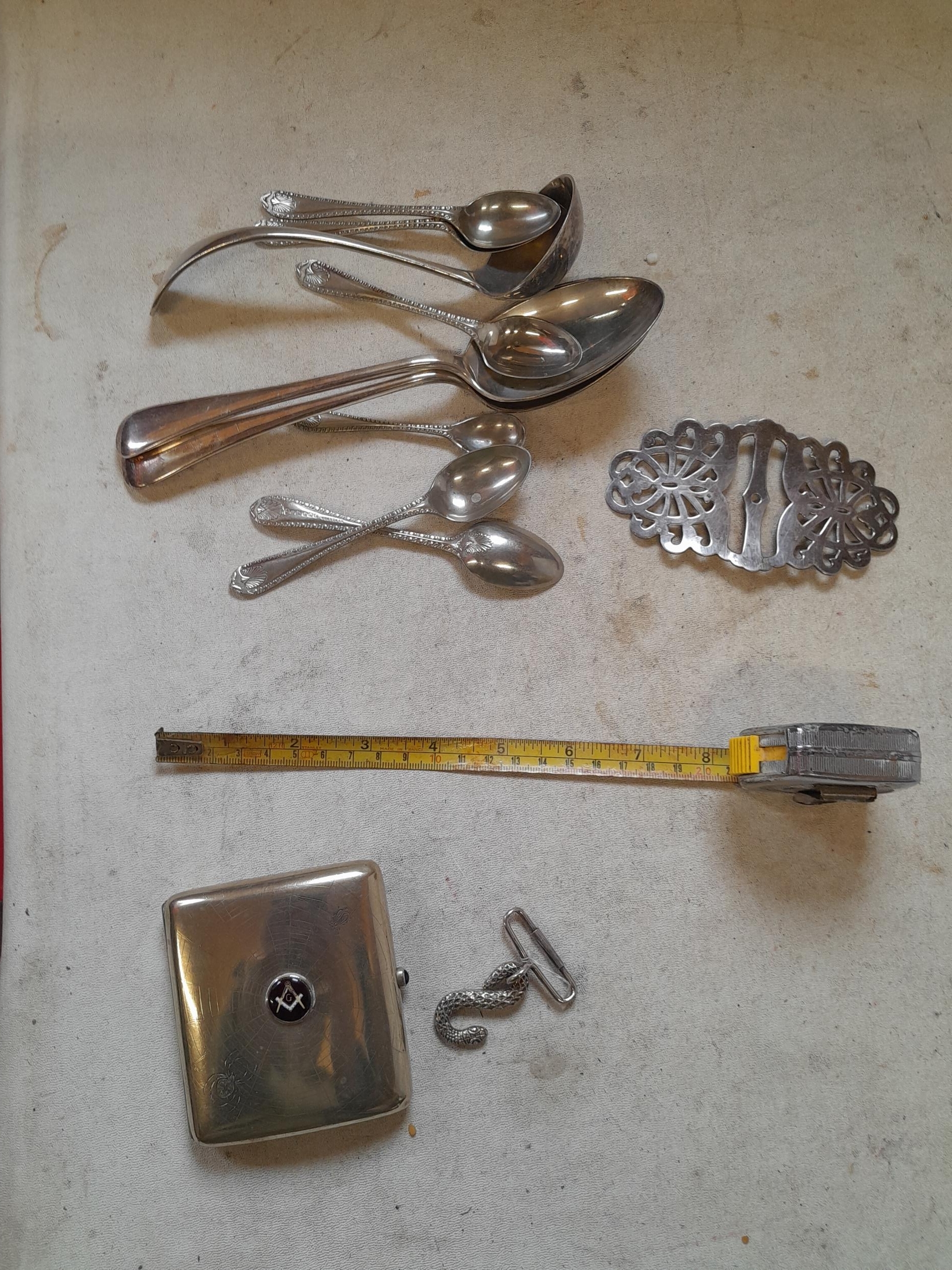 Silver plated Masonic cigarette case and other plated ware