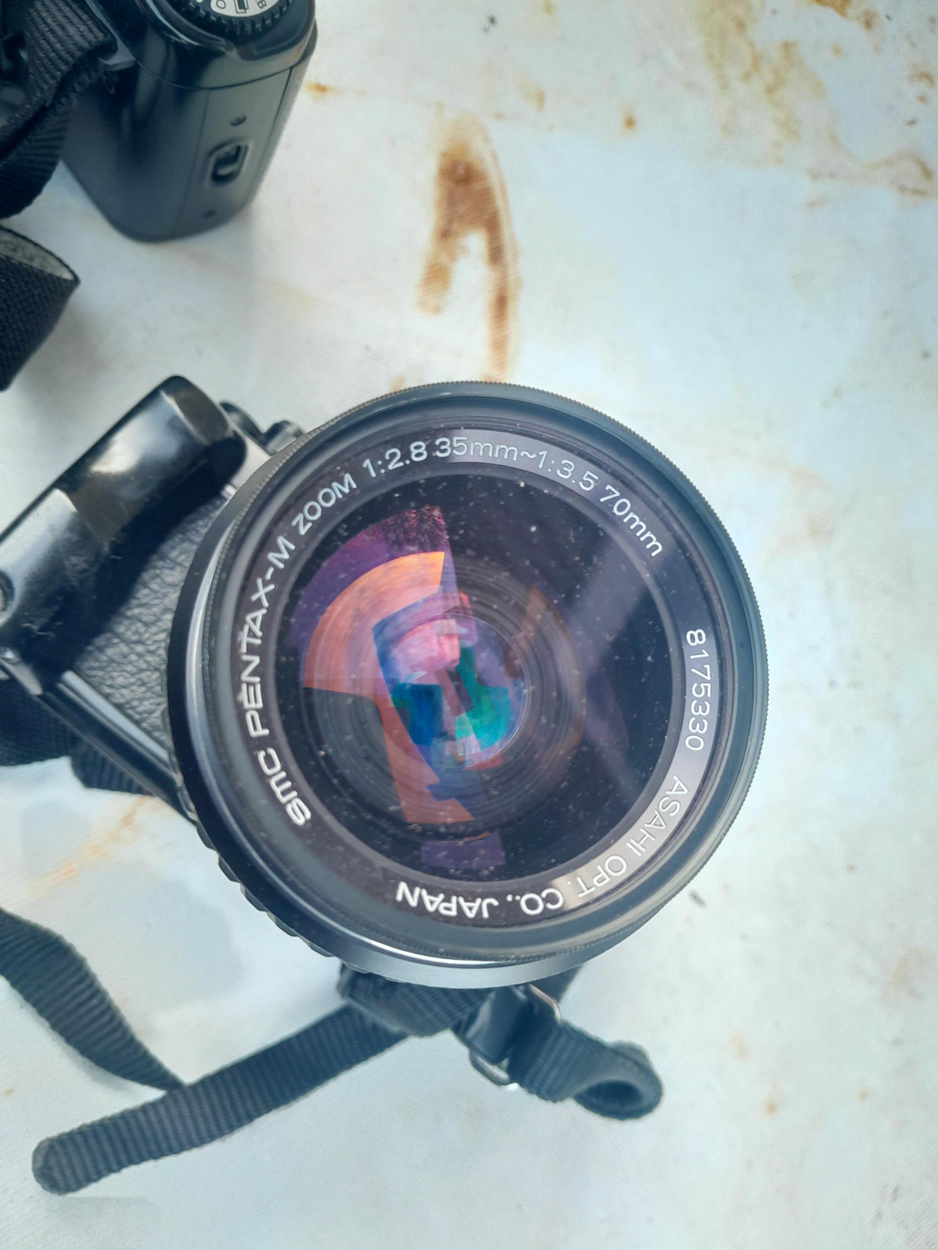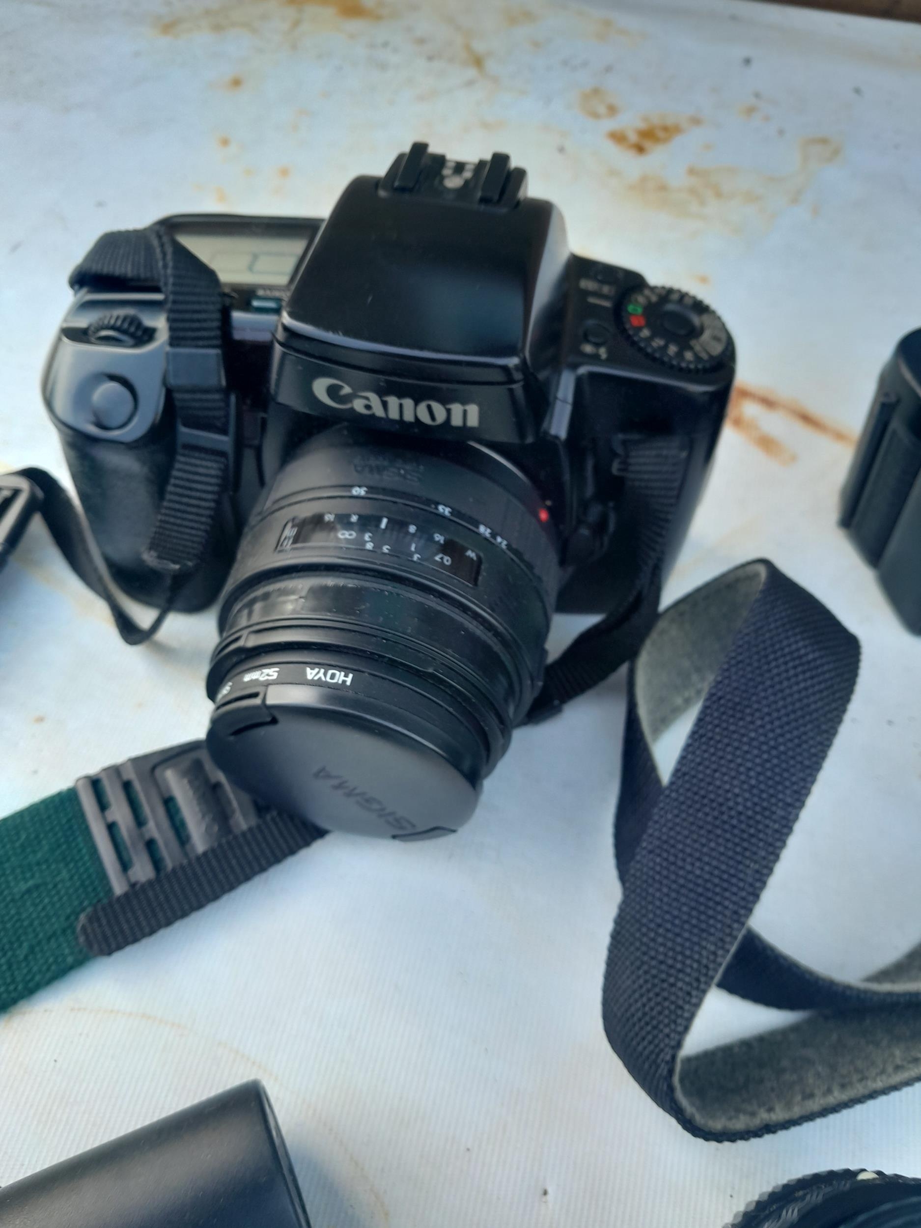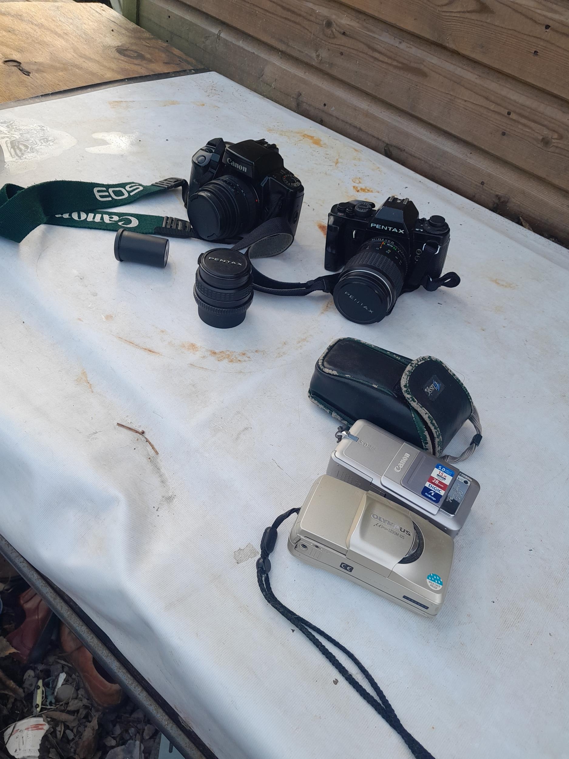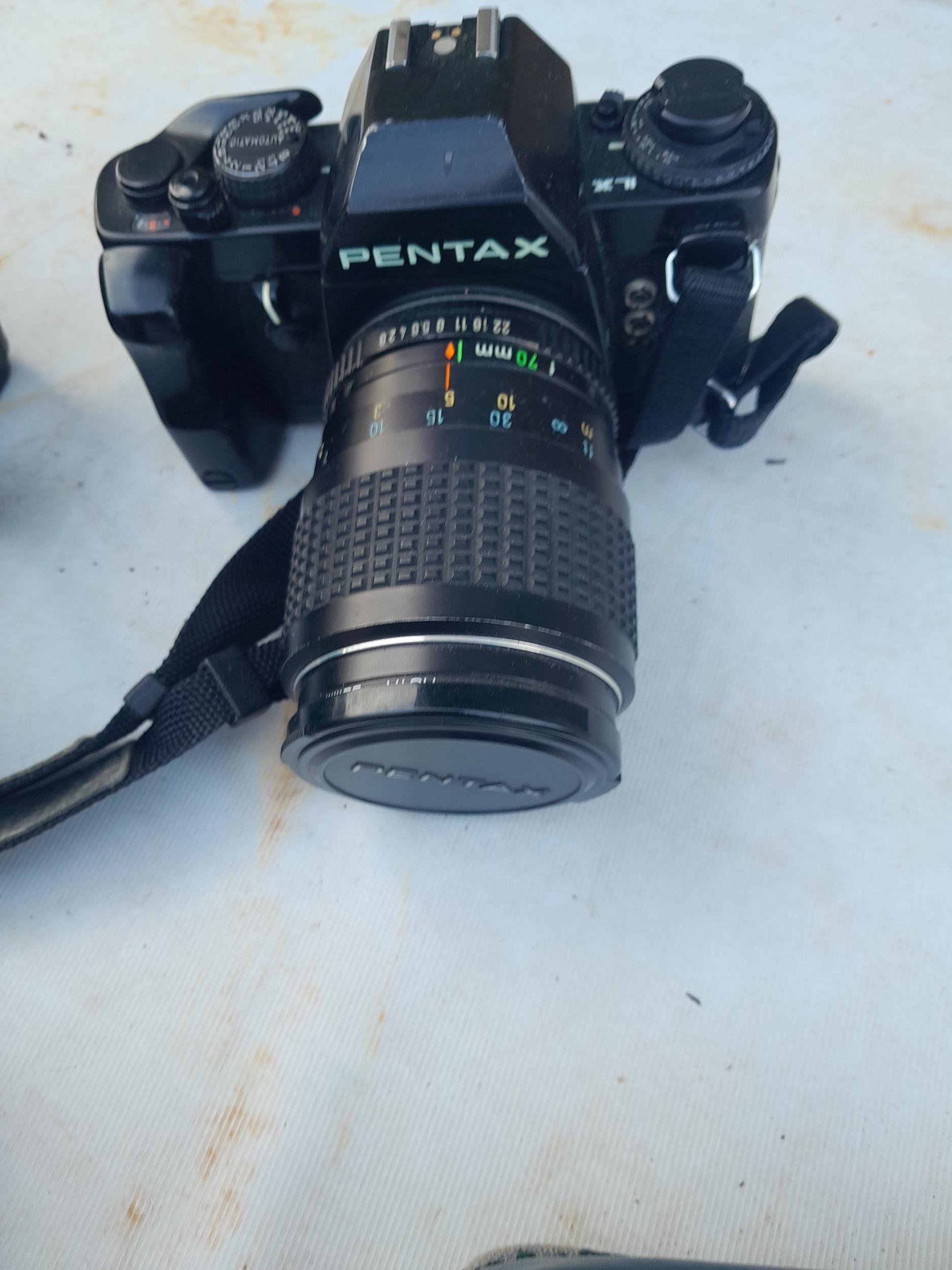 Canon with Sigma zoom lens and Pentax SLR cameras with padded case
