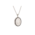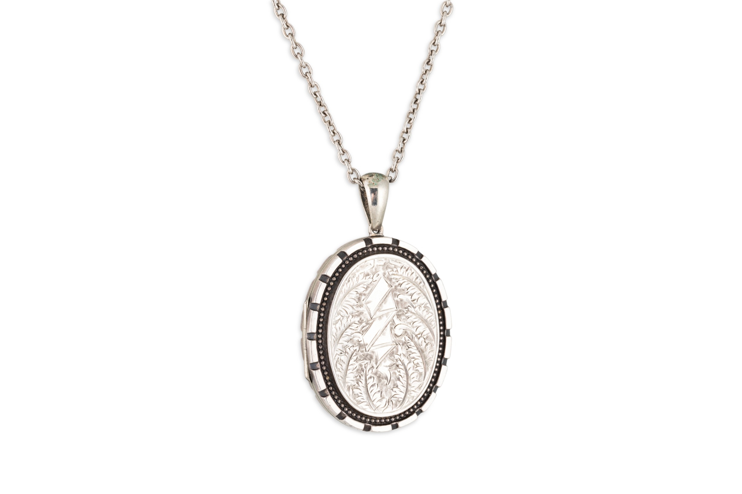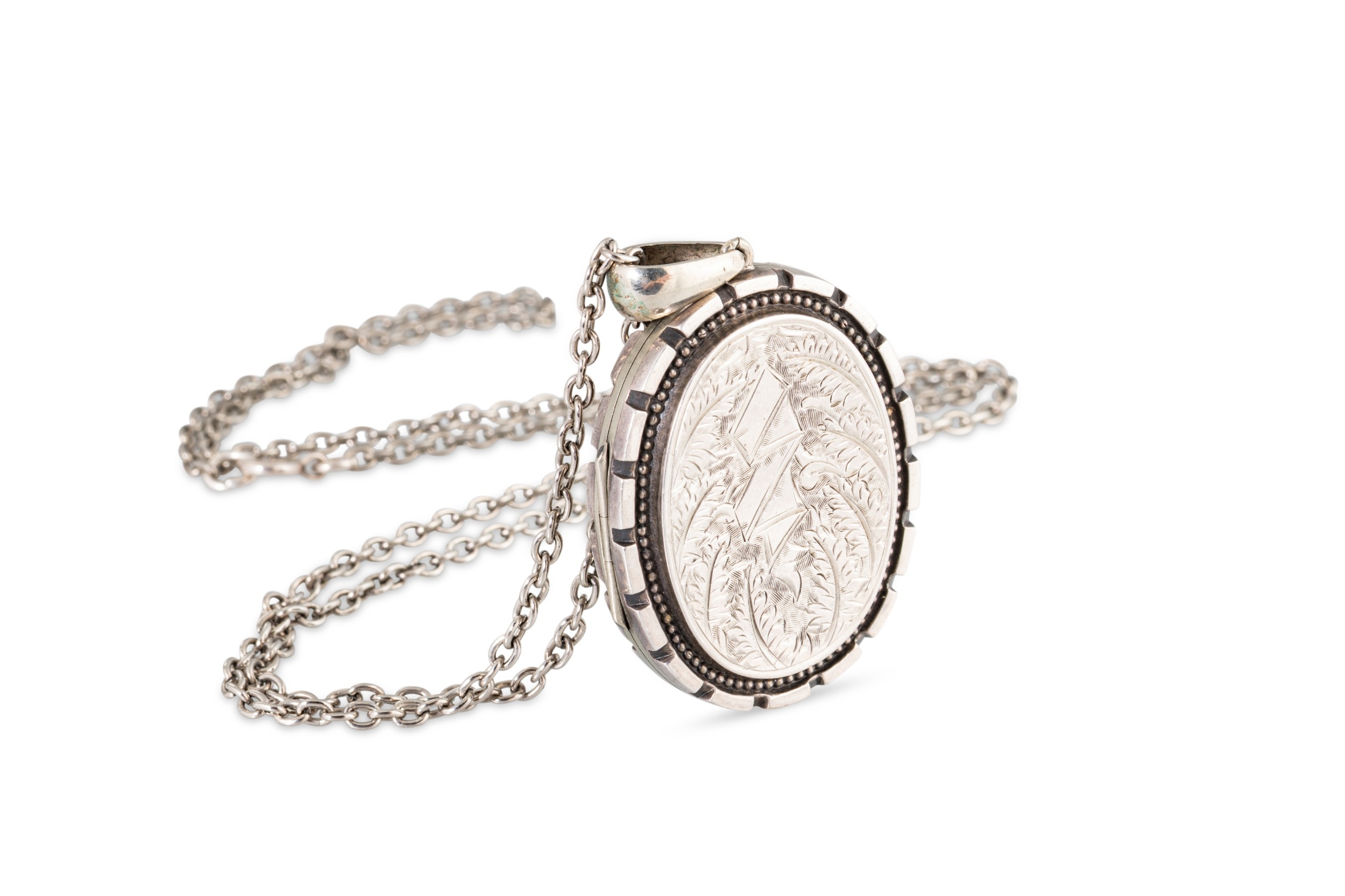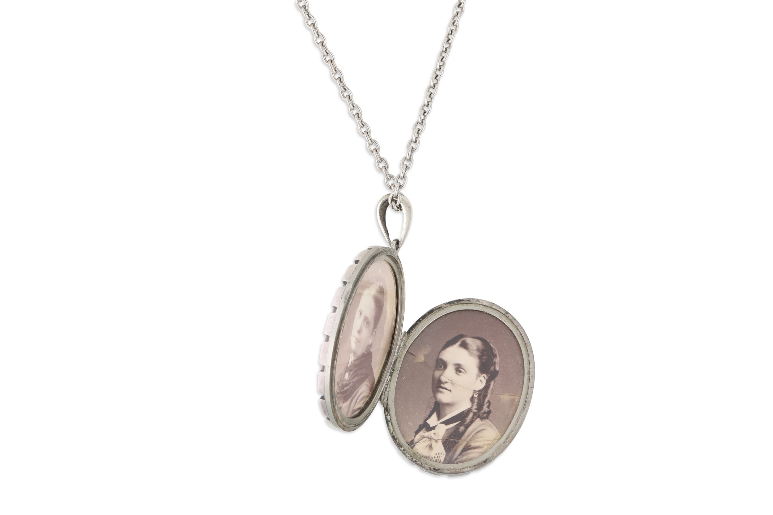 A VINTAGE SILVER/COMPOSITE LOCKET, to a white metal chain. The locket testing as 91% silver to a copper/nickel base layer