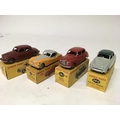 Dinky toys, #156 Rover 75 saloon, #157 Jaguar XK120 coupe, #161 Austin Somerset saloon and #24U Simca 9 Aronde, boxed