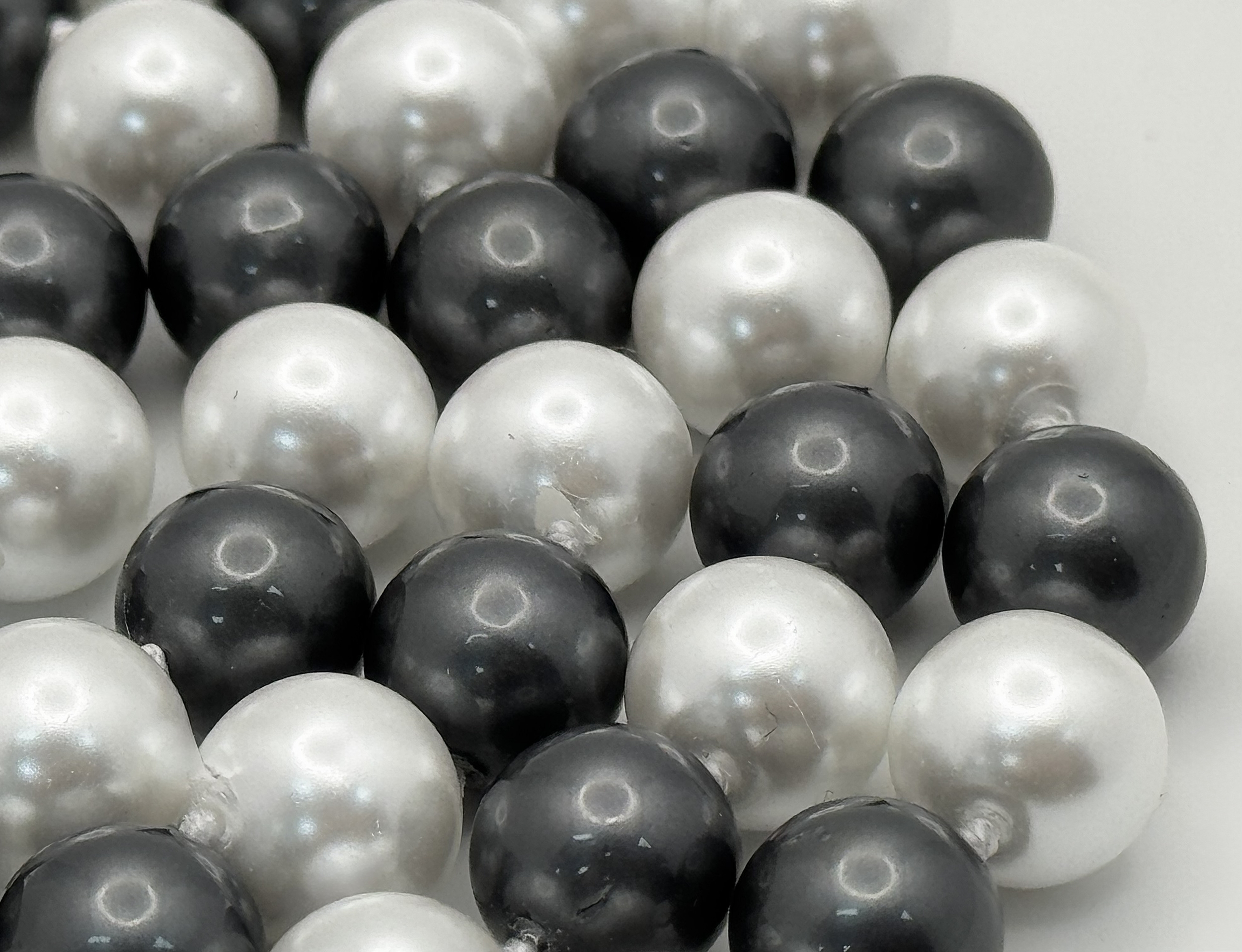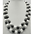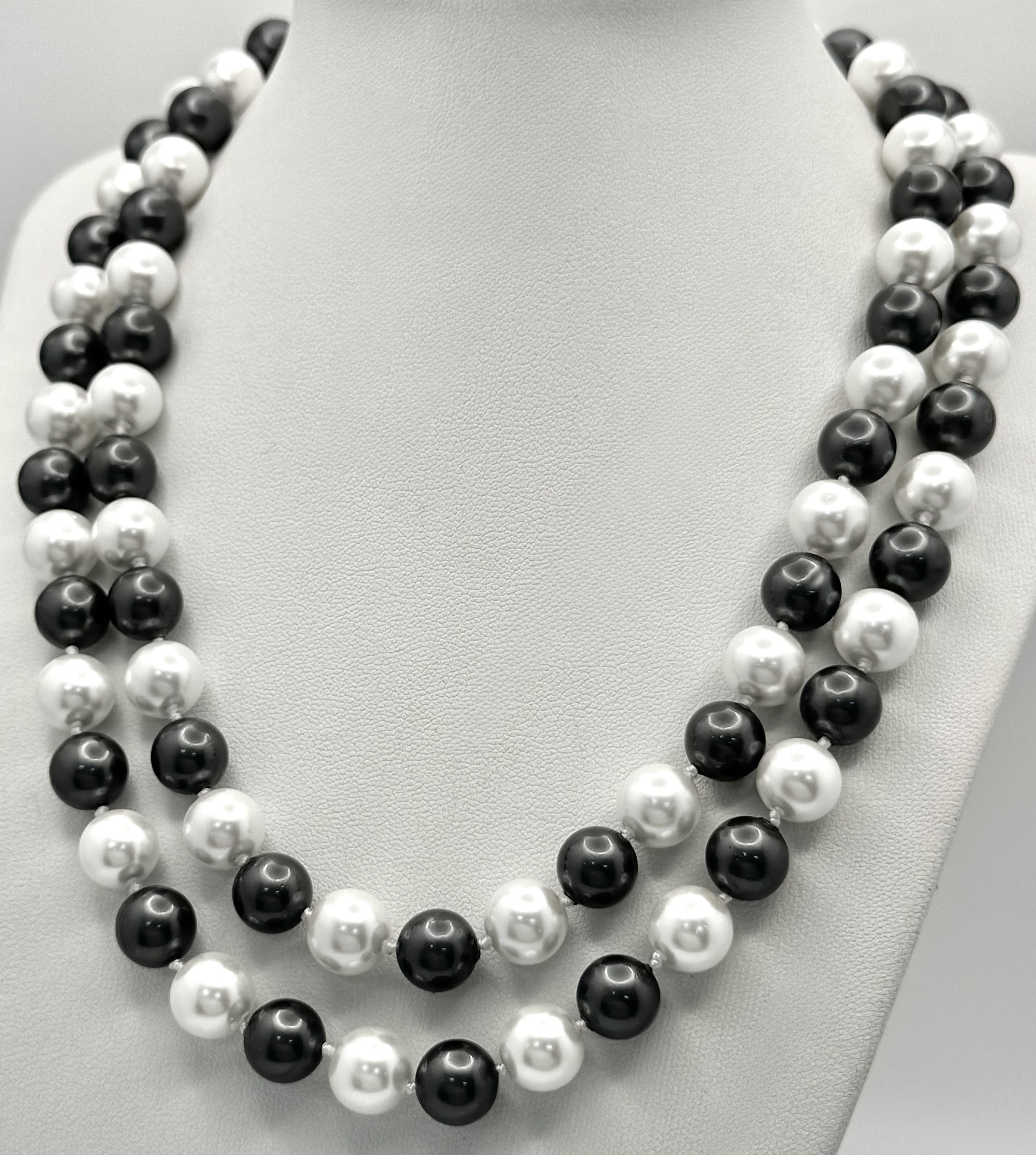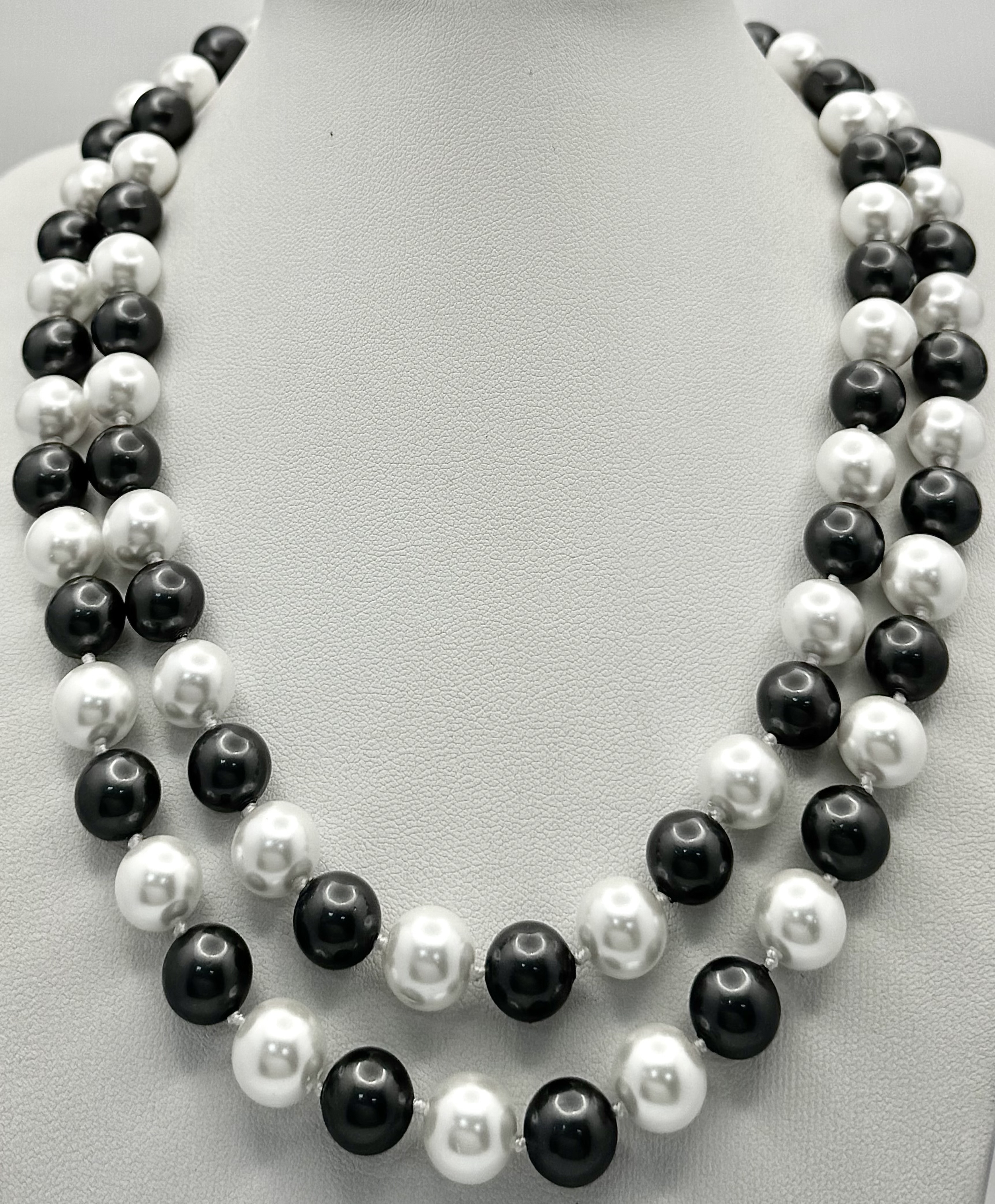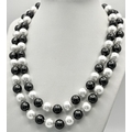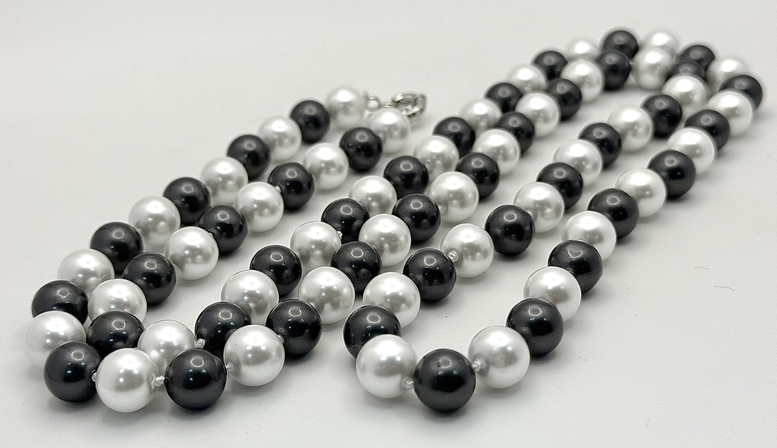 A Matinee Length Black and White South Sea Shell Pearl Necklace. 10mm beads. 90cm necklsce length.