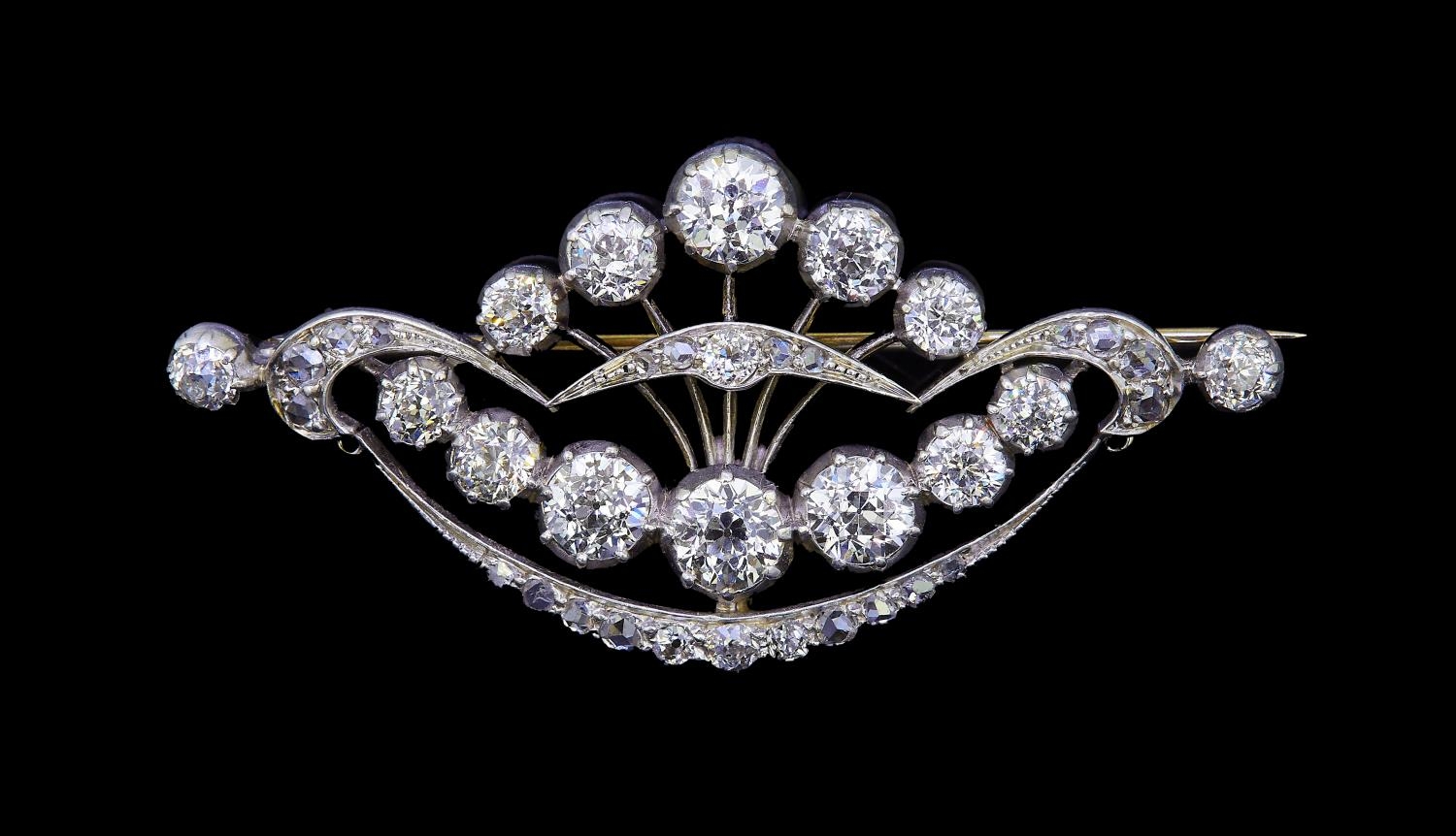DIAMOND OPENWORK BROOCH, the openwork brooch of part crescen...