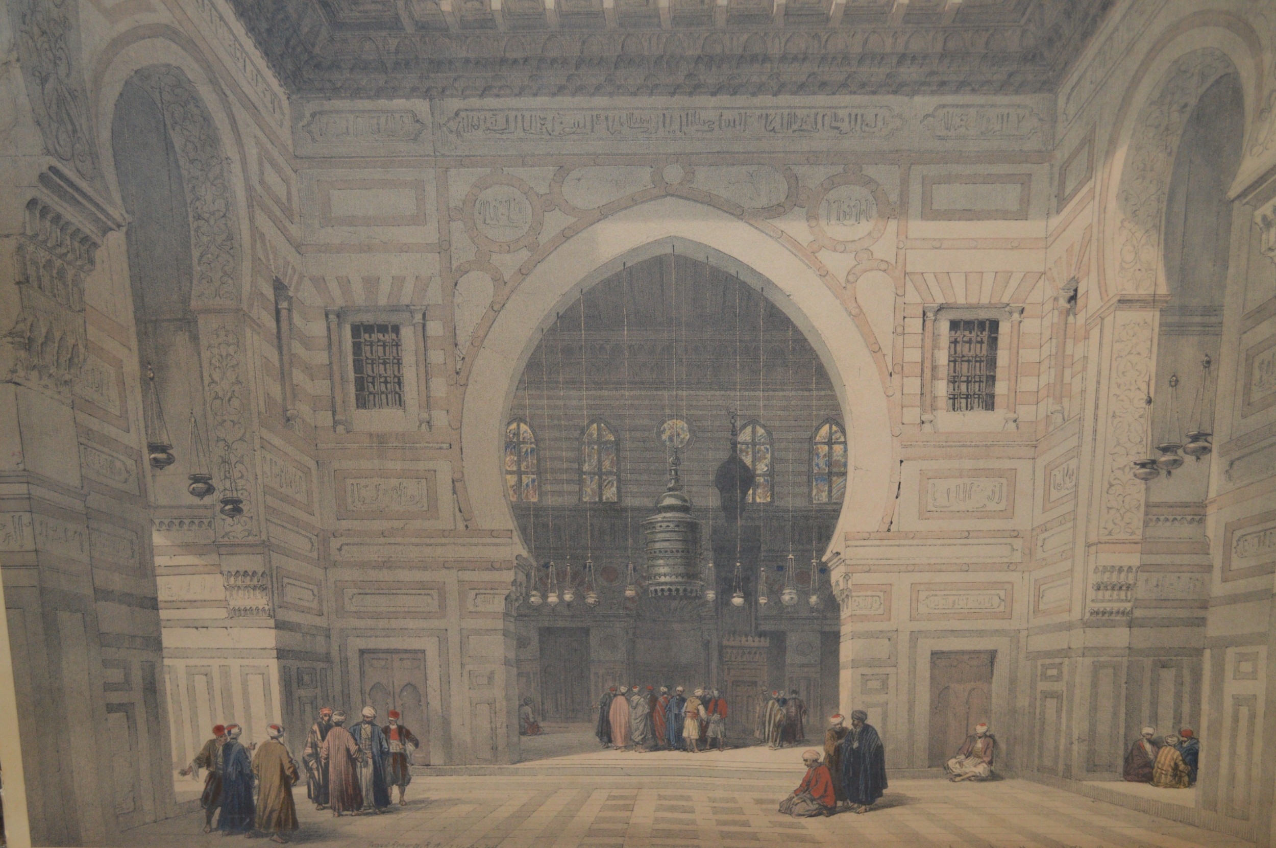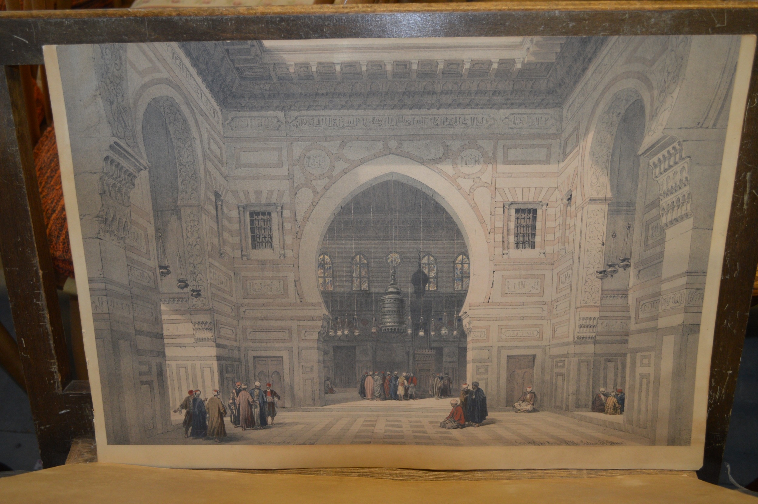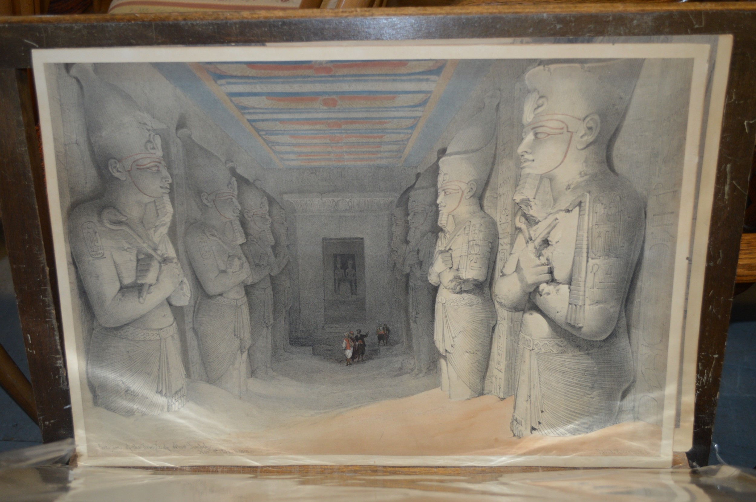 David Roberts, pair of coloured prints 'The Temple of Aboo Symbel' and 'Mosque of the Sultan'. 33cm x 49cm, unframed