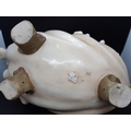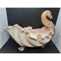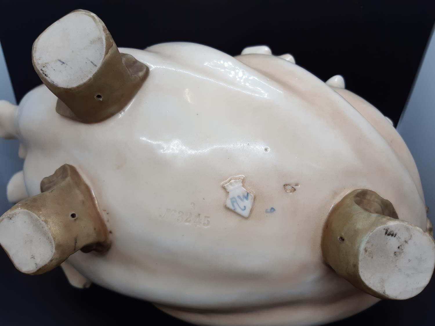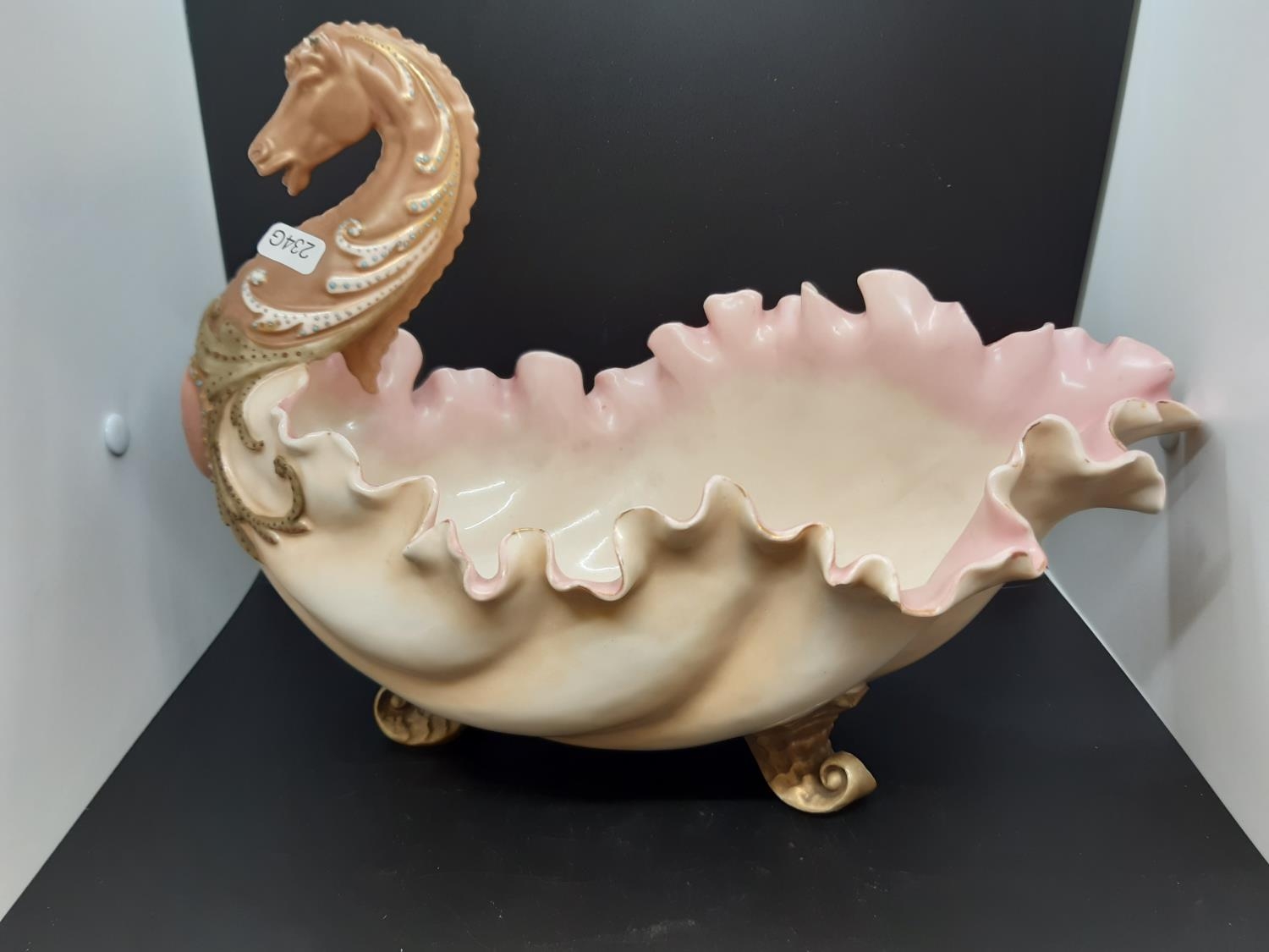 An impressive 19th century porcelain centre bowl with scalloped edge, horse head front, tri-footed base and with diamond shaped R.W. back stamp