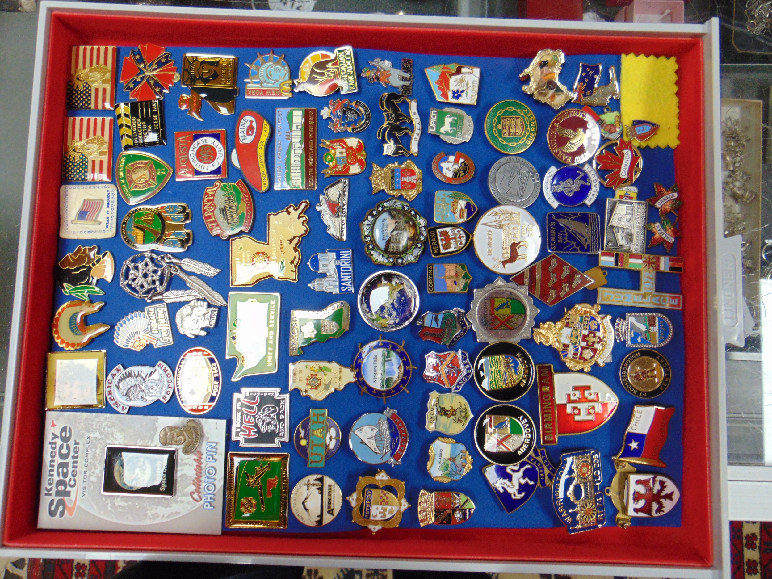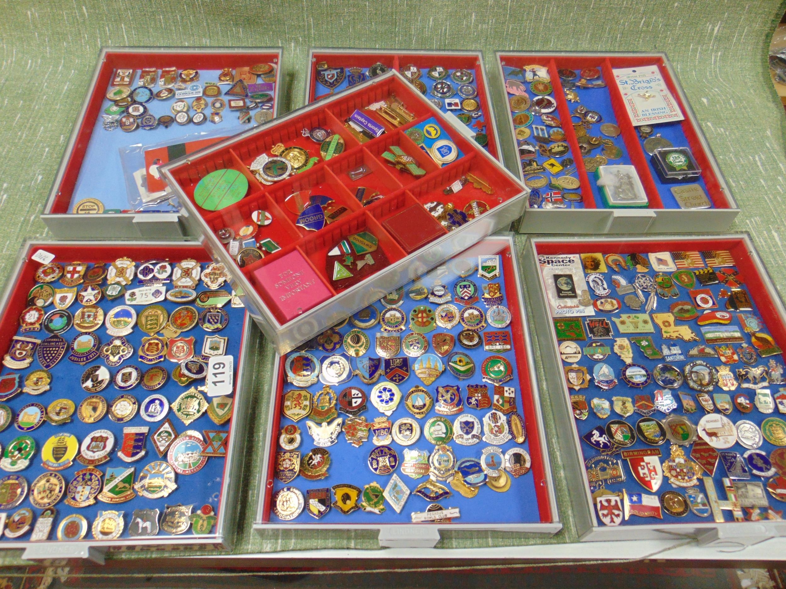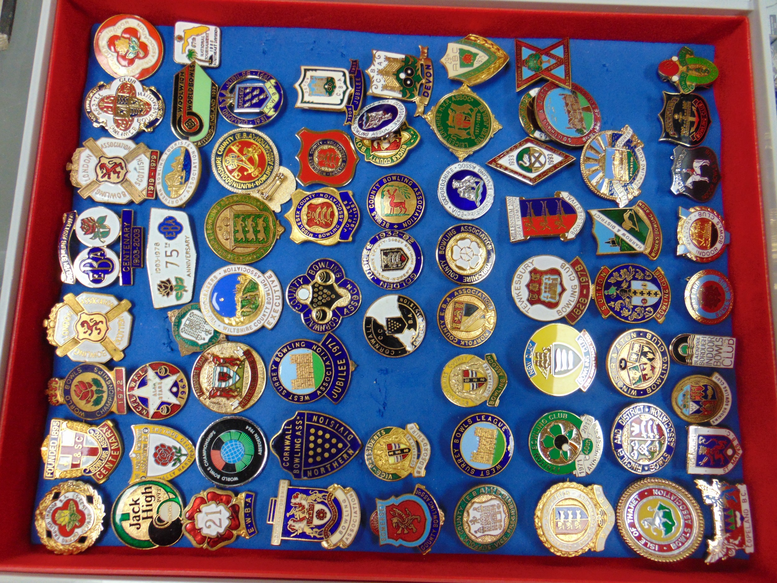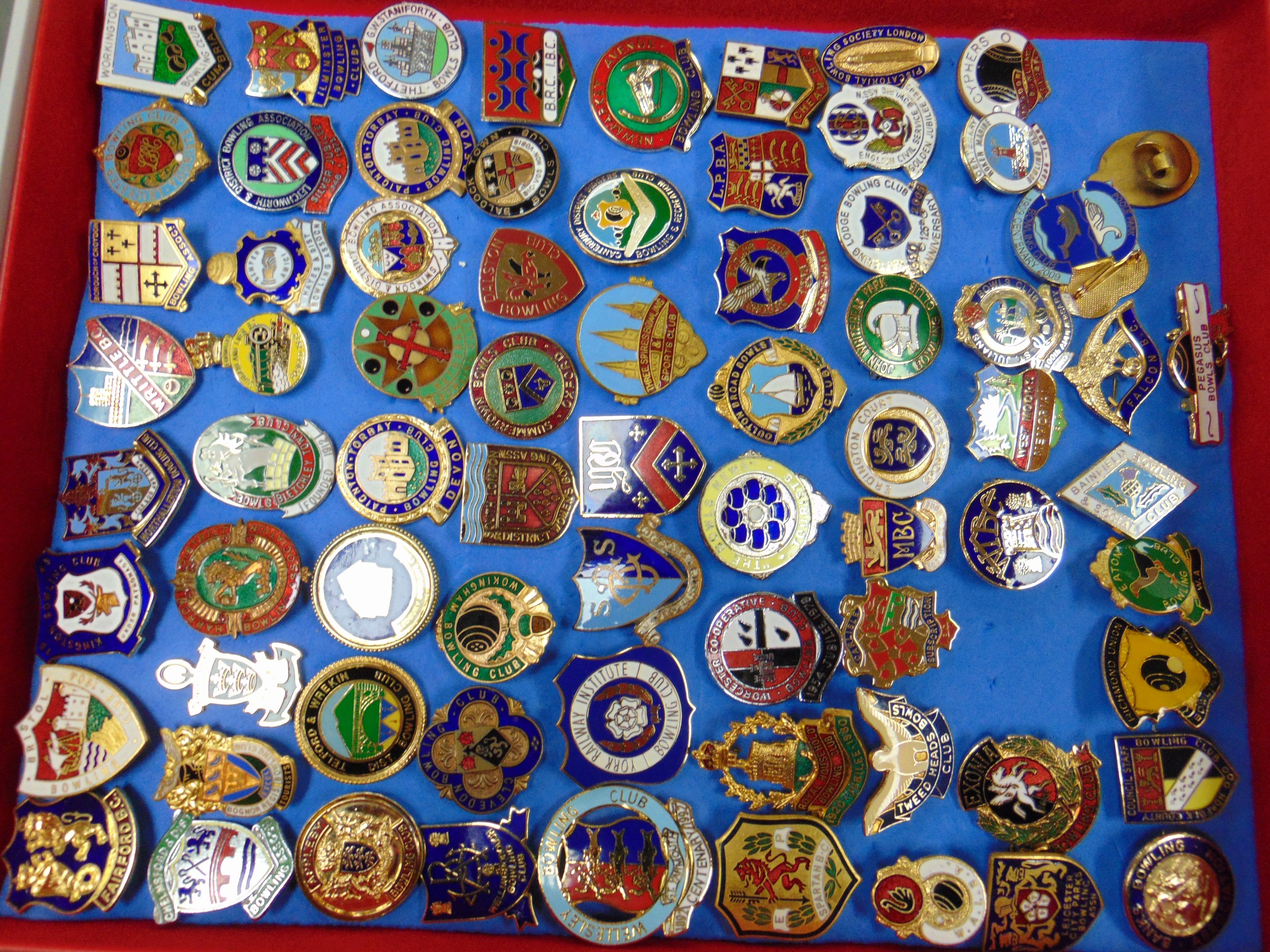Large collection of enamel badges.
