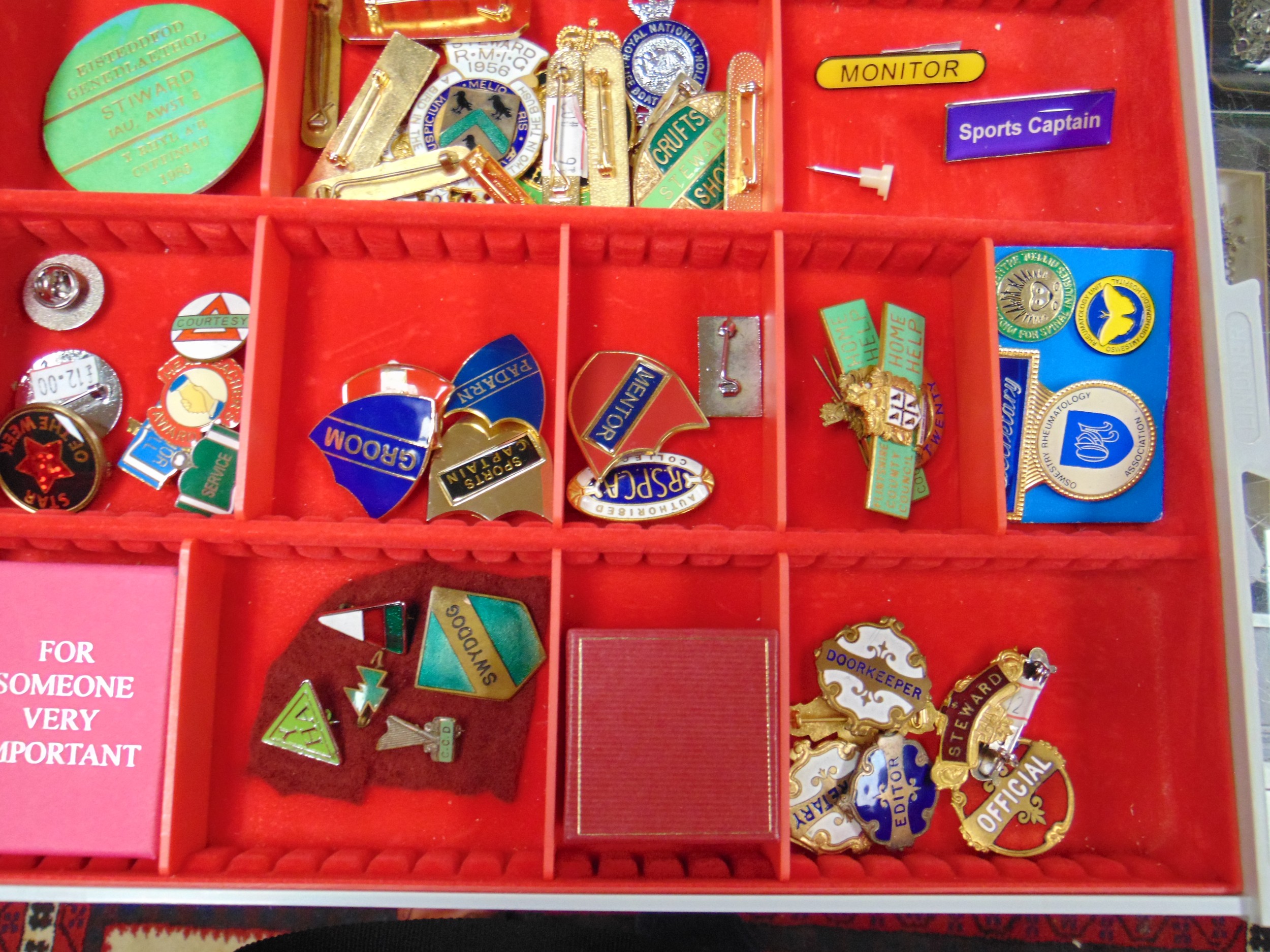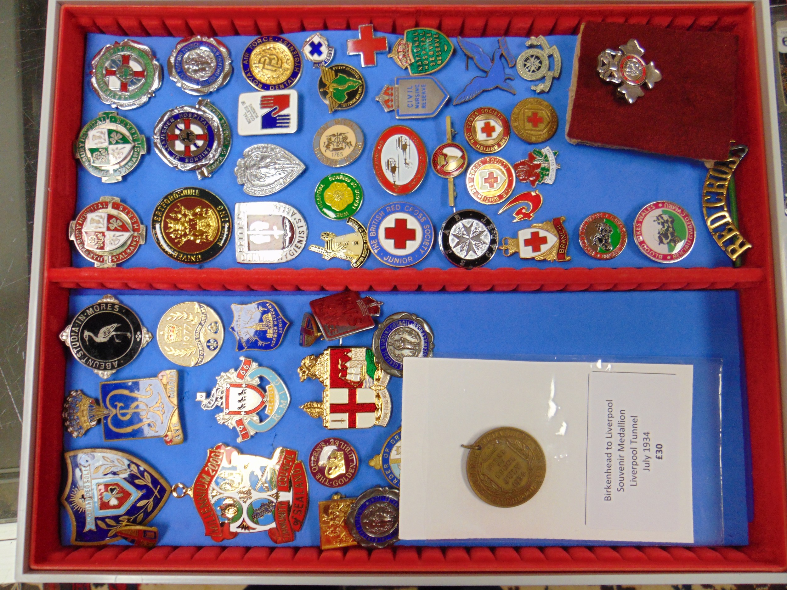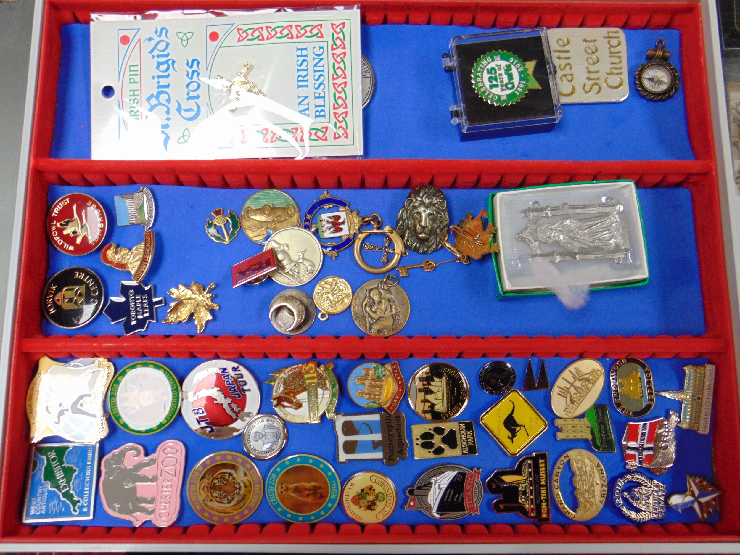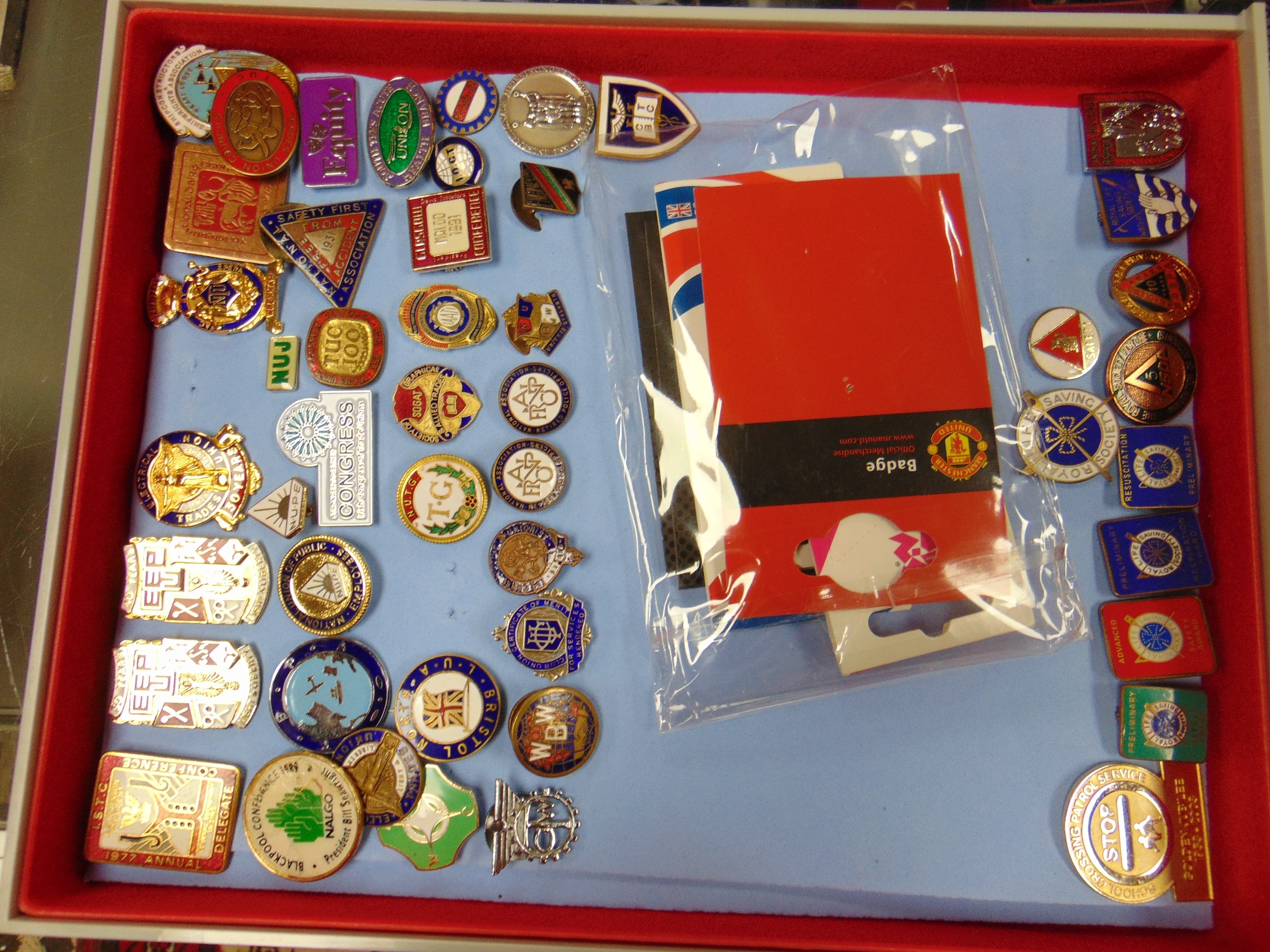 Large collection of enamel badges.