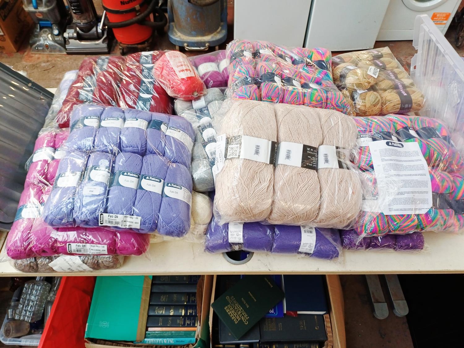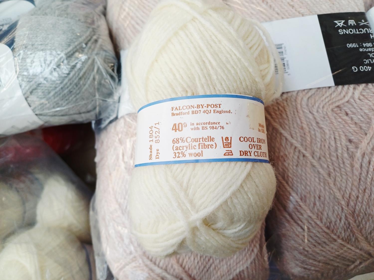 A large collection of knitting yarn to include Patons 100% acrylic, Falcon 32% wool, Sirdale Montana 30% wool etc.