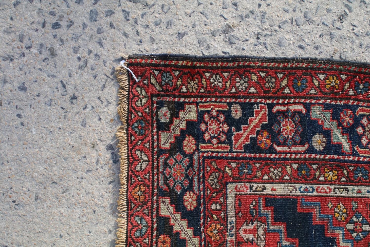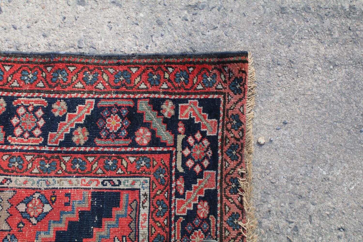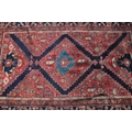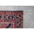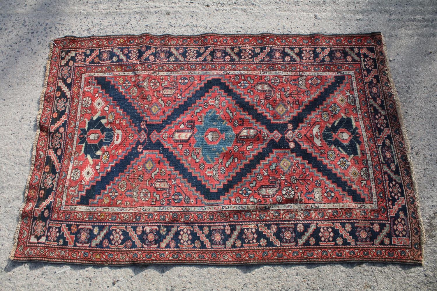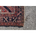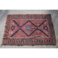 Middle Eastern red ground rug, with central medallion and two half medallions, 197cm x 132cm
