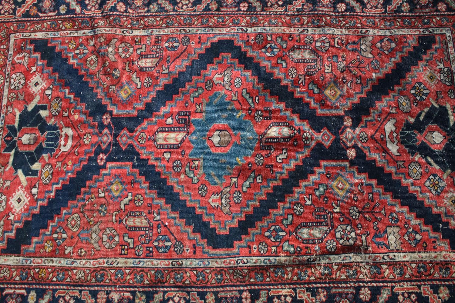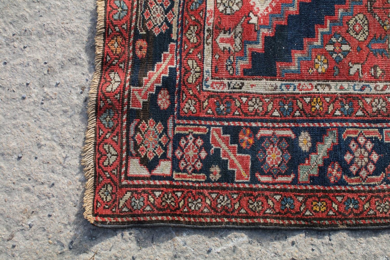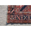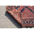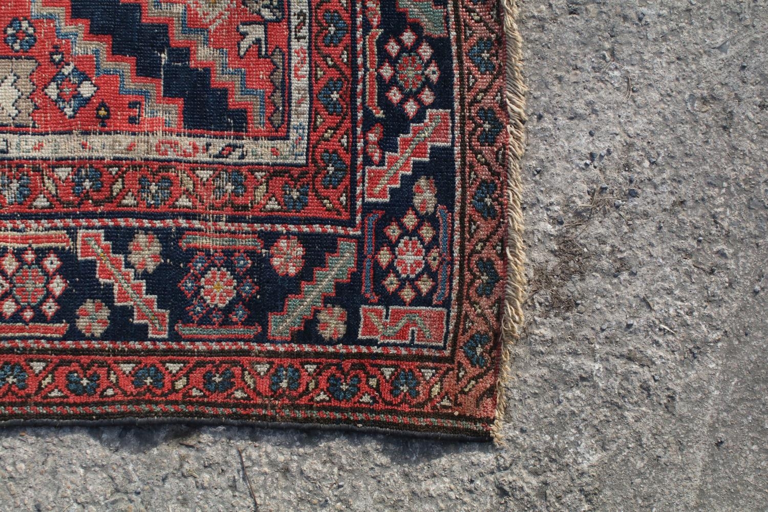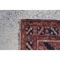 Middle Eastern red ground rug, with central medallion and two half medallions, 197cm x 132cm