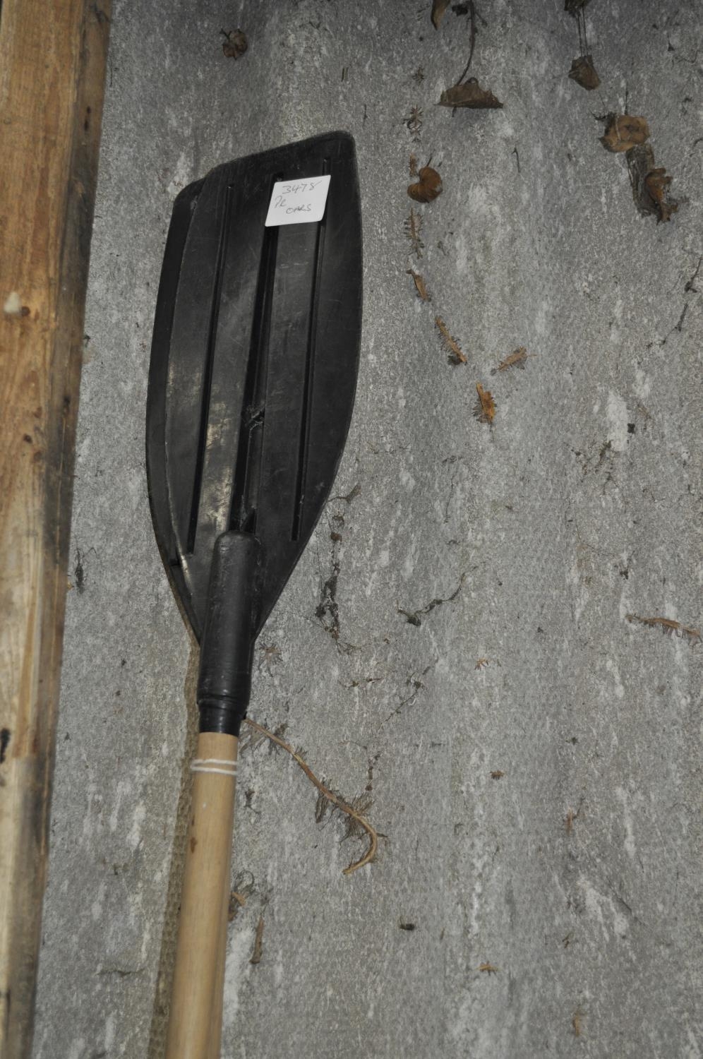 PAIR OF WOODEN AND PLASTIC PADDLES