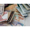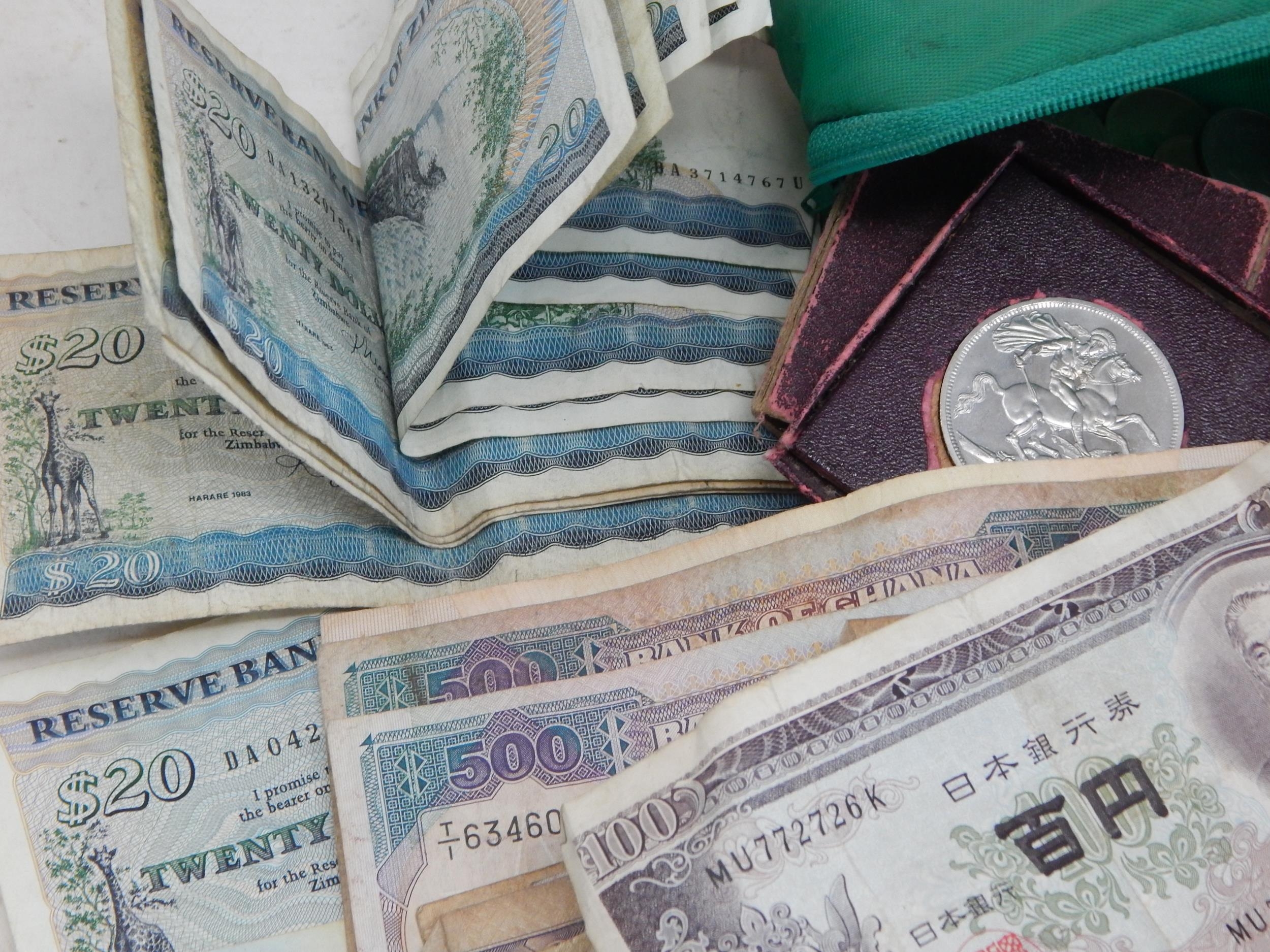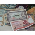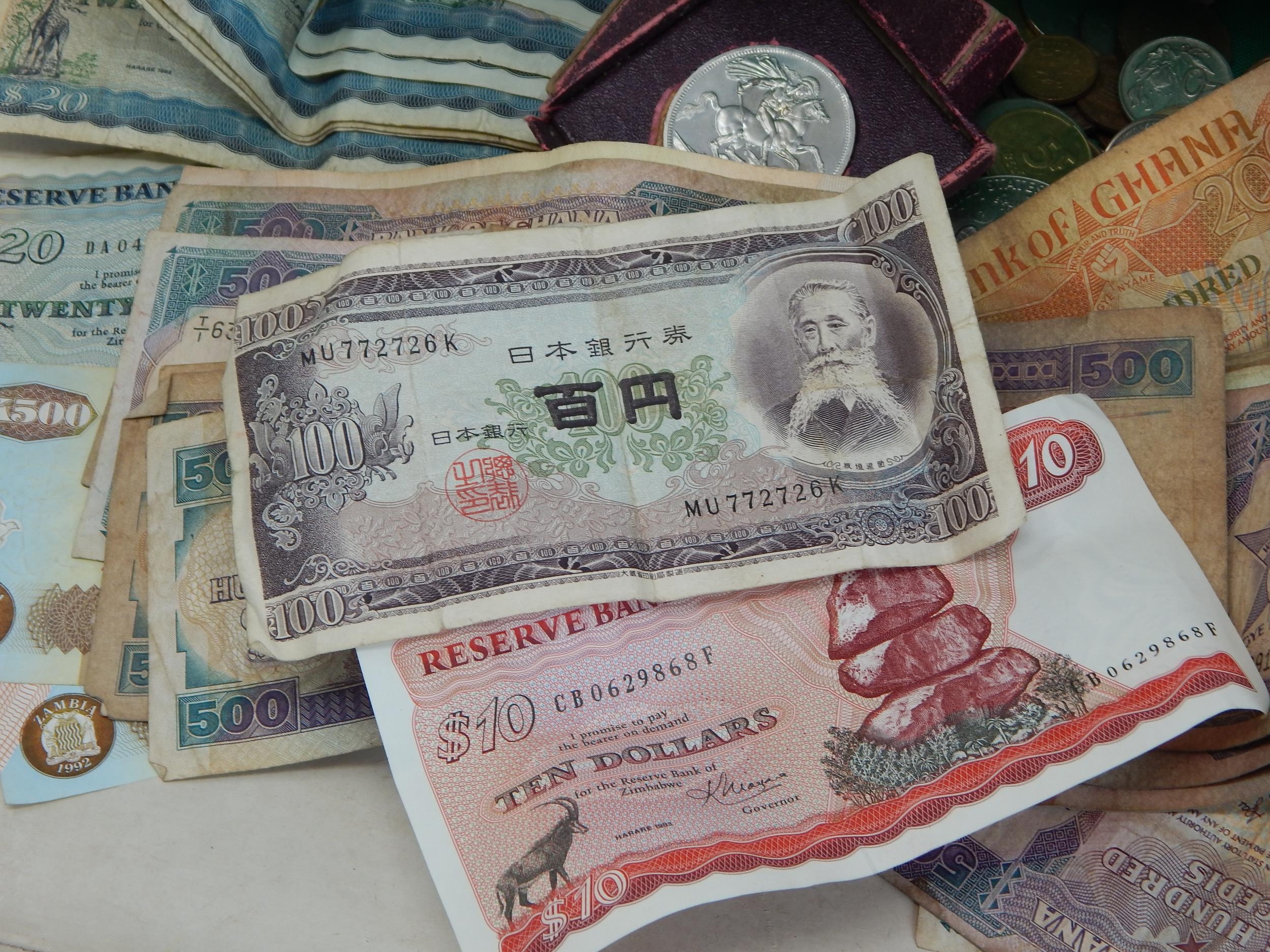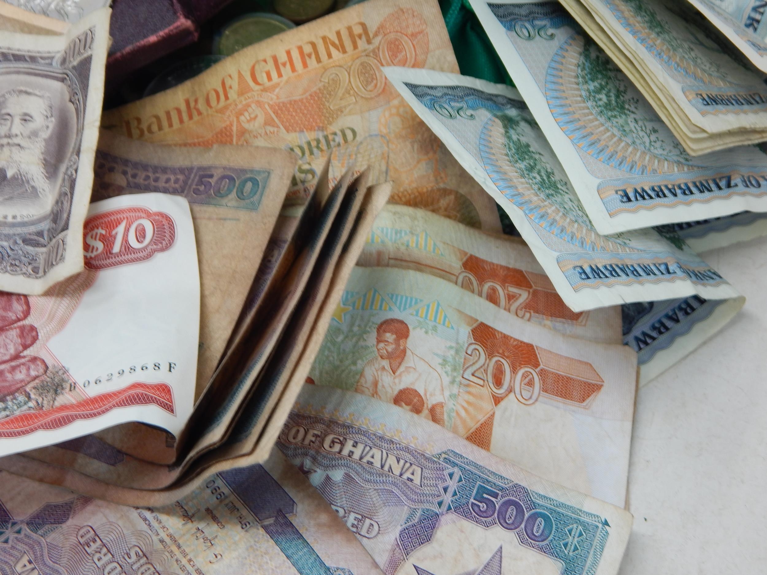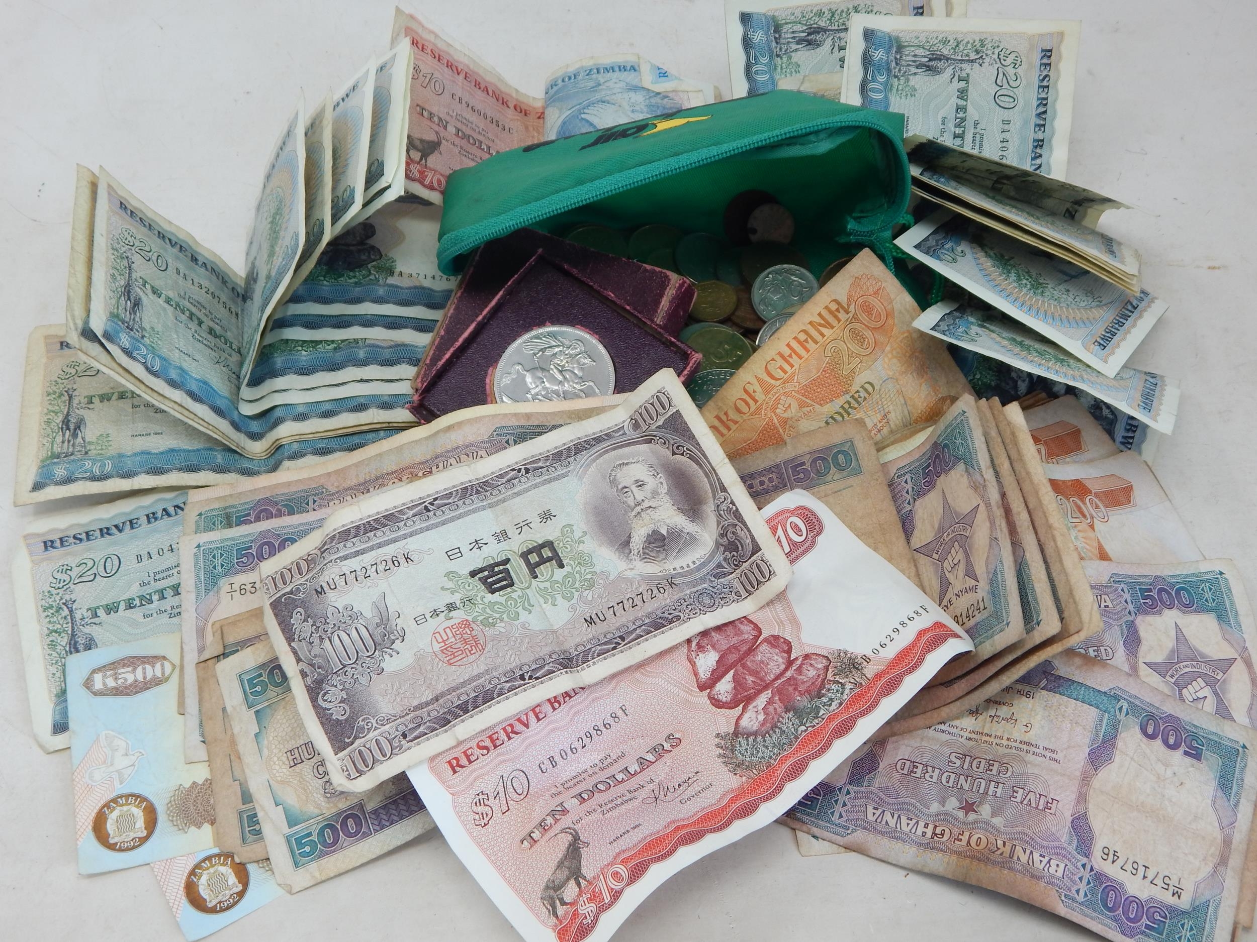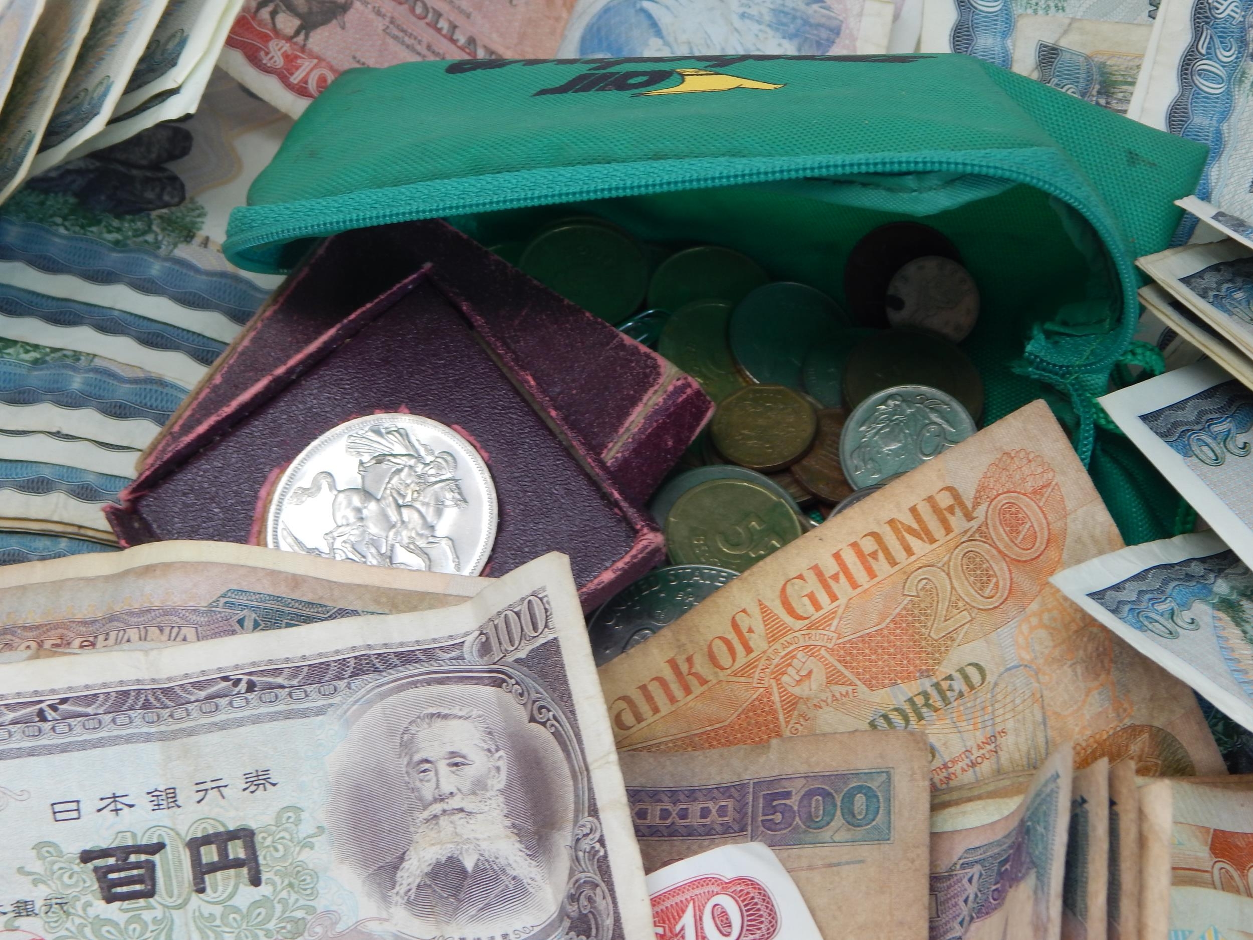 A Quantity of World Banknotes & Coins contained in a bag.