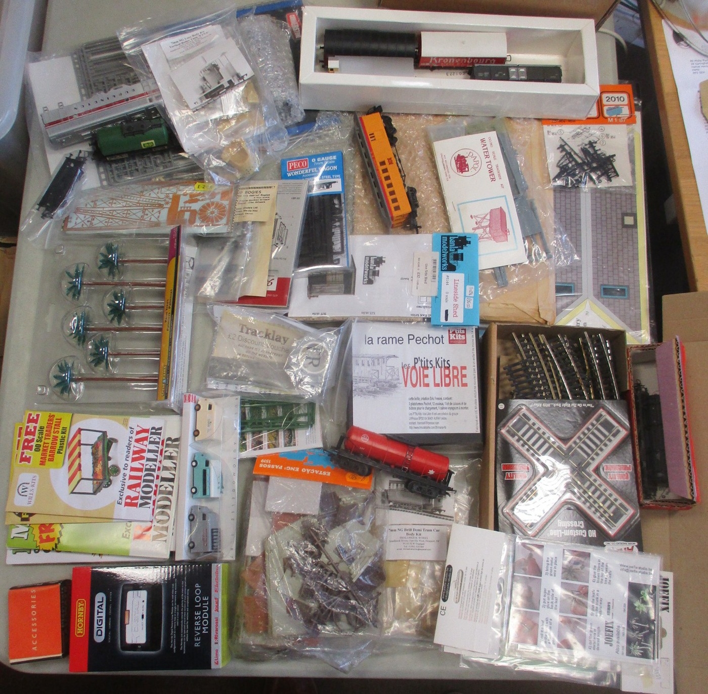Accumulation of OO gauge accessories, kits, scenery, etc, generally very good to near mint in very good to excellent boxes/bags, includes Airfix, Kitmaster, Langley Miniature Models, MKD, Piko, Pola, etc. Qty 45+ (3B)
